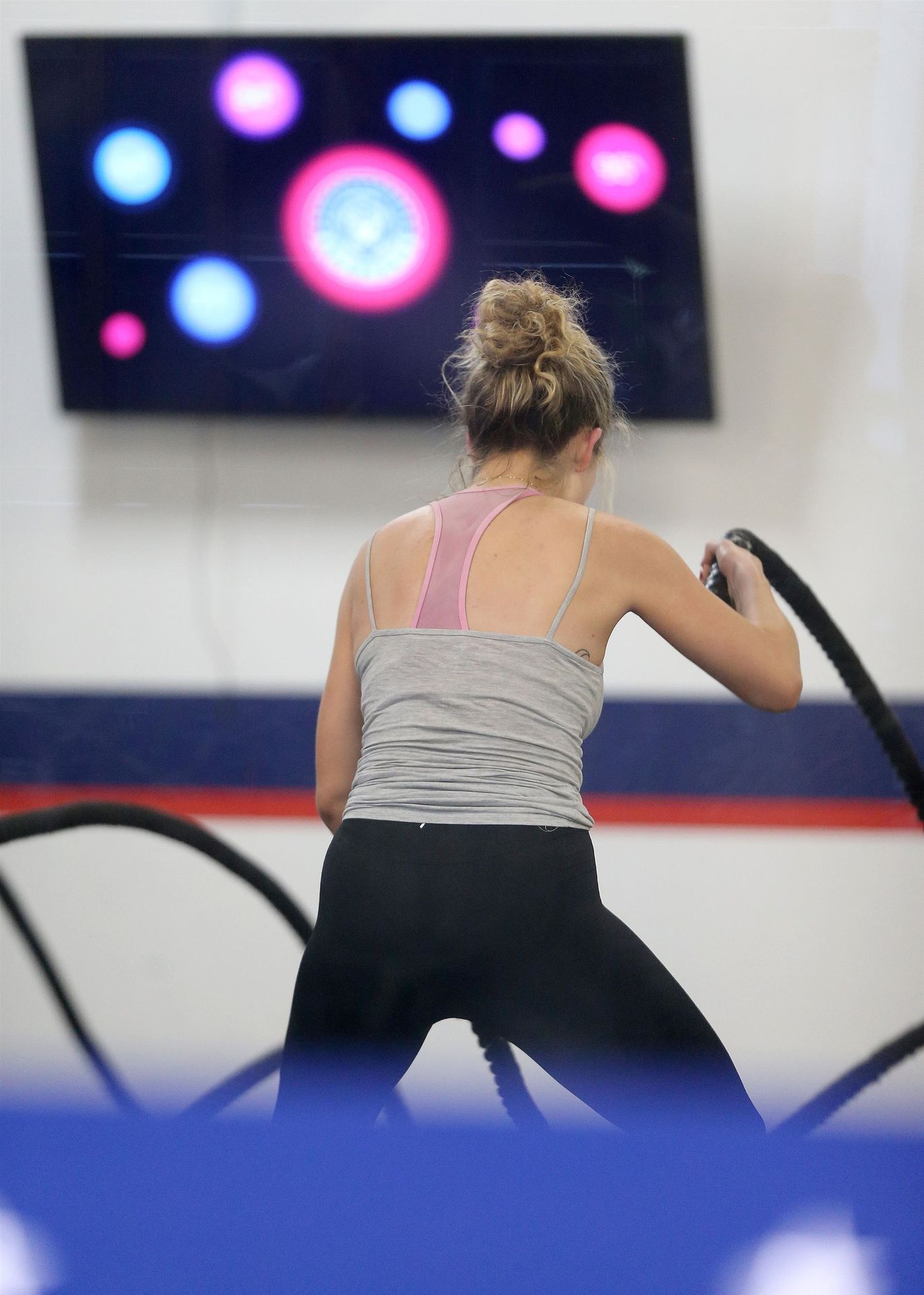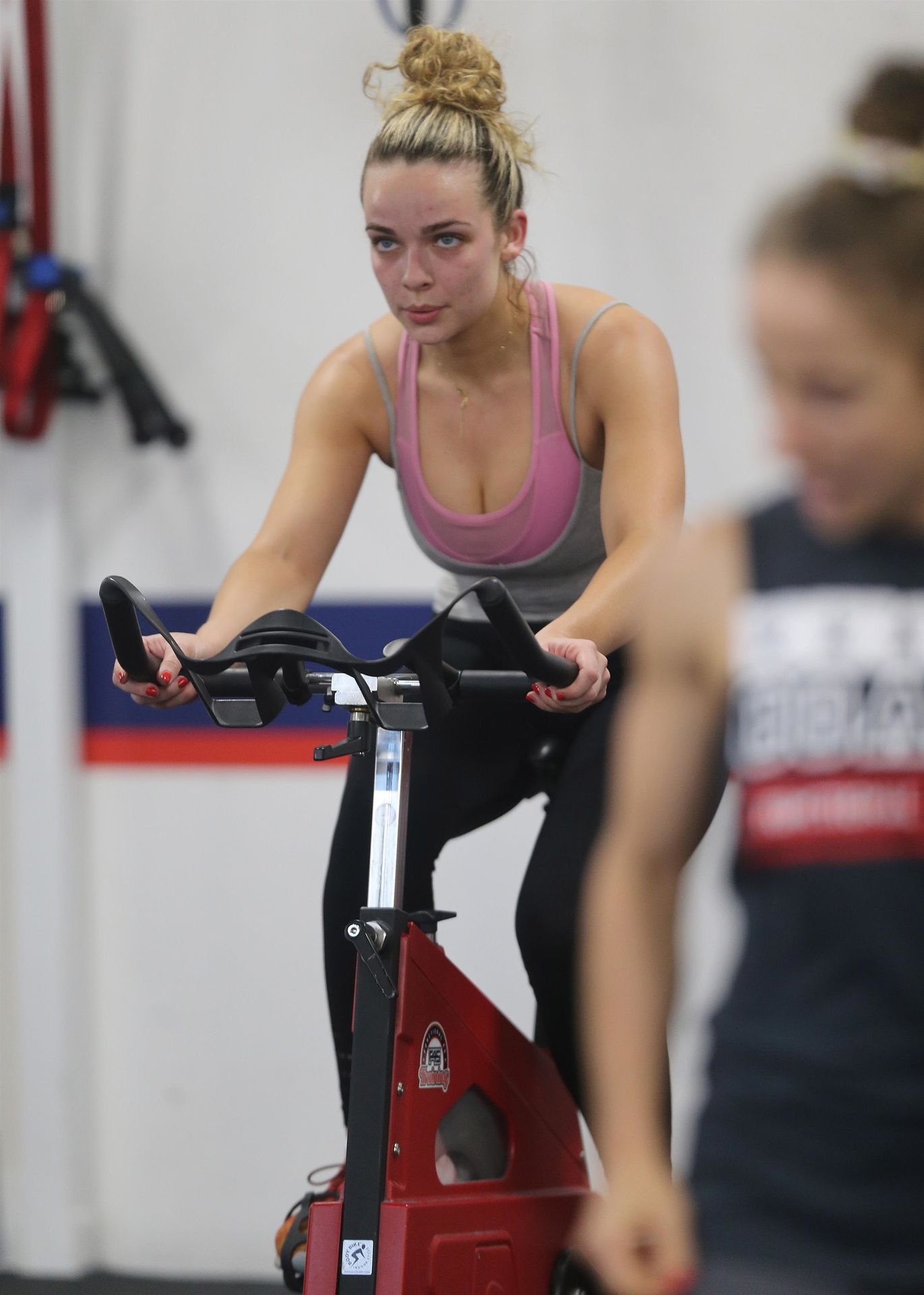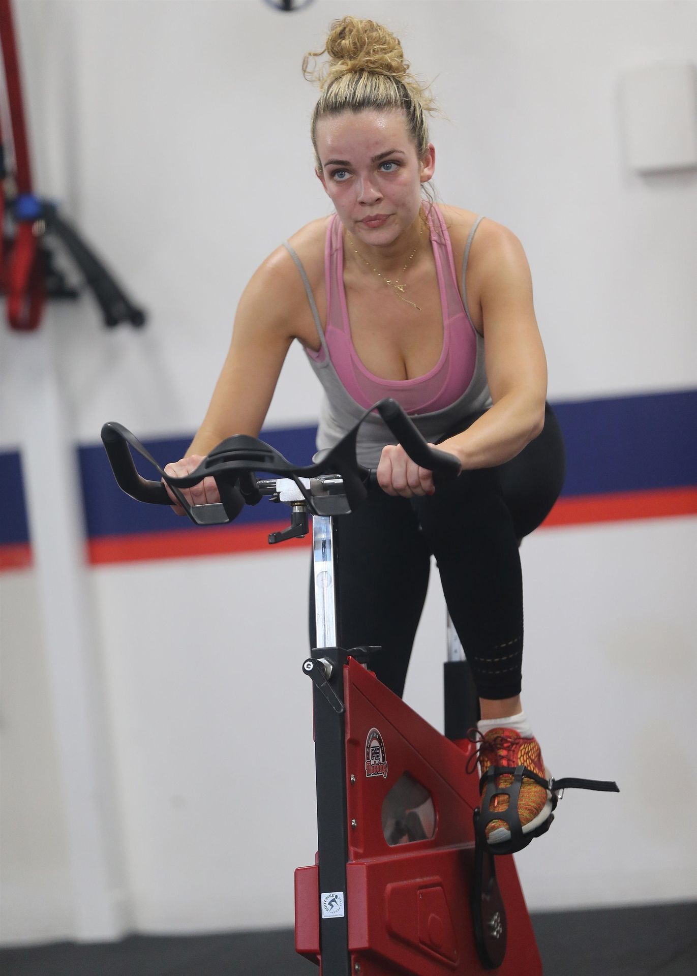 “The Bachelor” star Abbie Chatfield is getting her bikini body in shape for “Bachelor in Paradise” as she works out at a city gym in Brisbane, 10/08/2019.