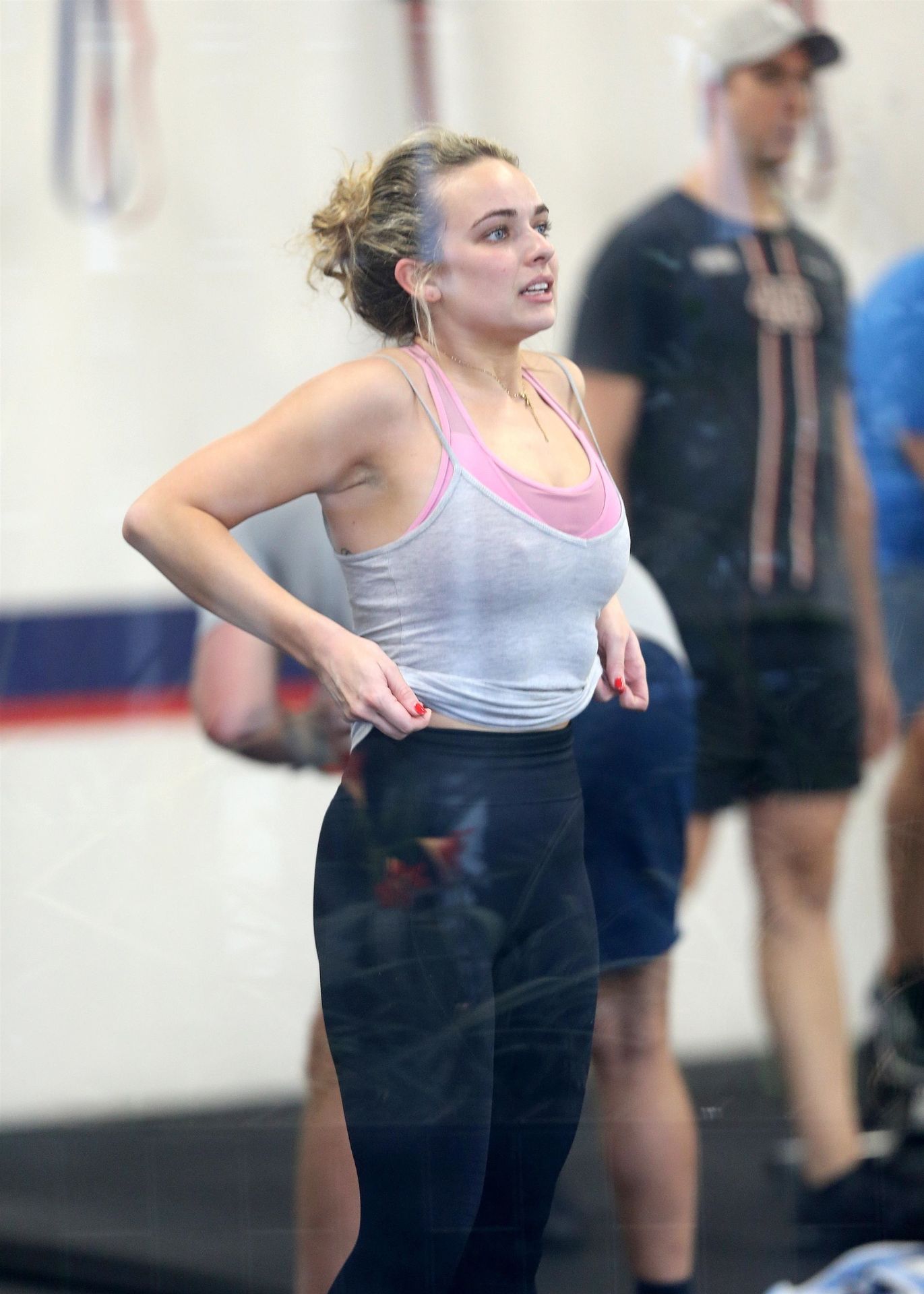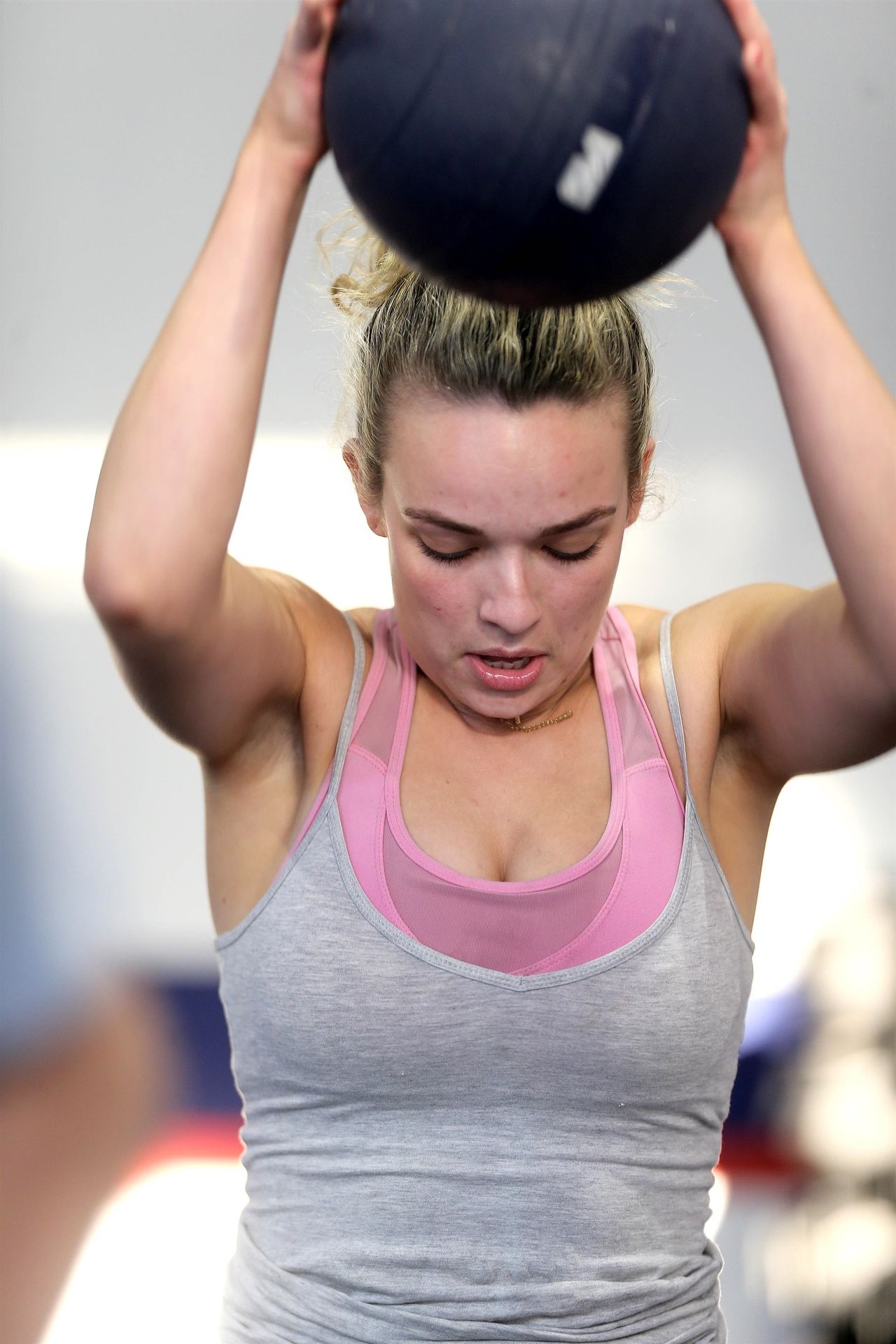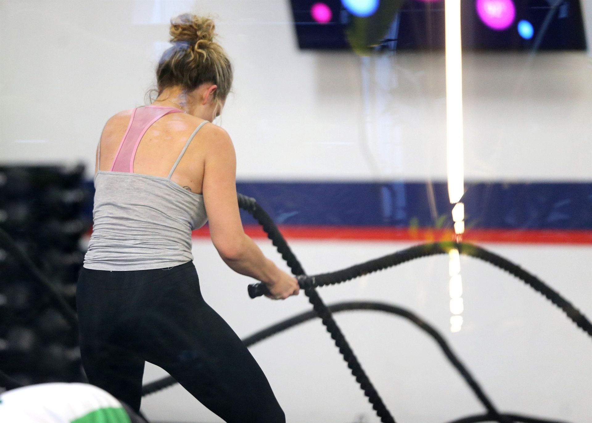 “The Bachelor” star Abbie Chatfield is getting her bikini body in shape for “Bachelor in Paradise” as she works out at a city gym in Brisbane, 10/08/2019.