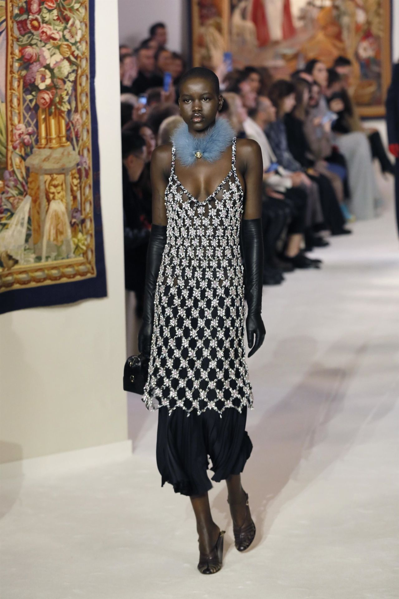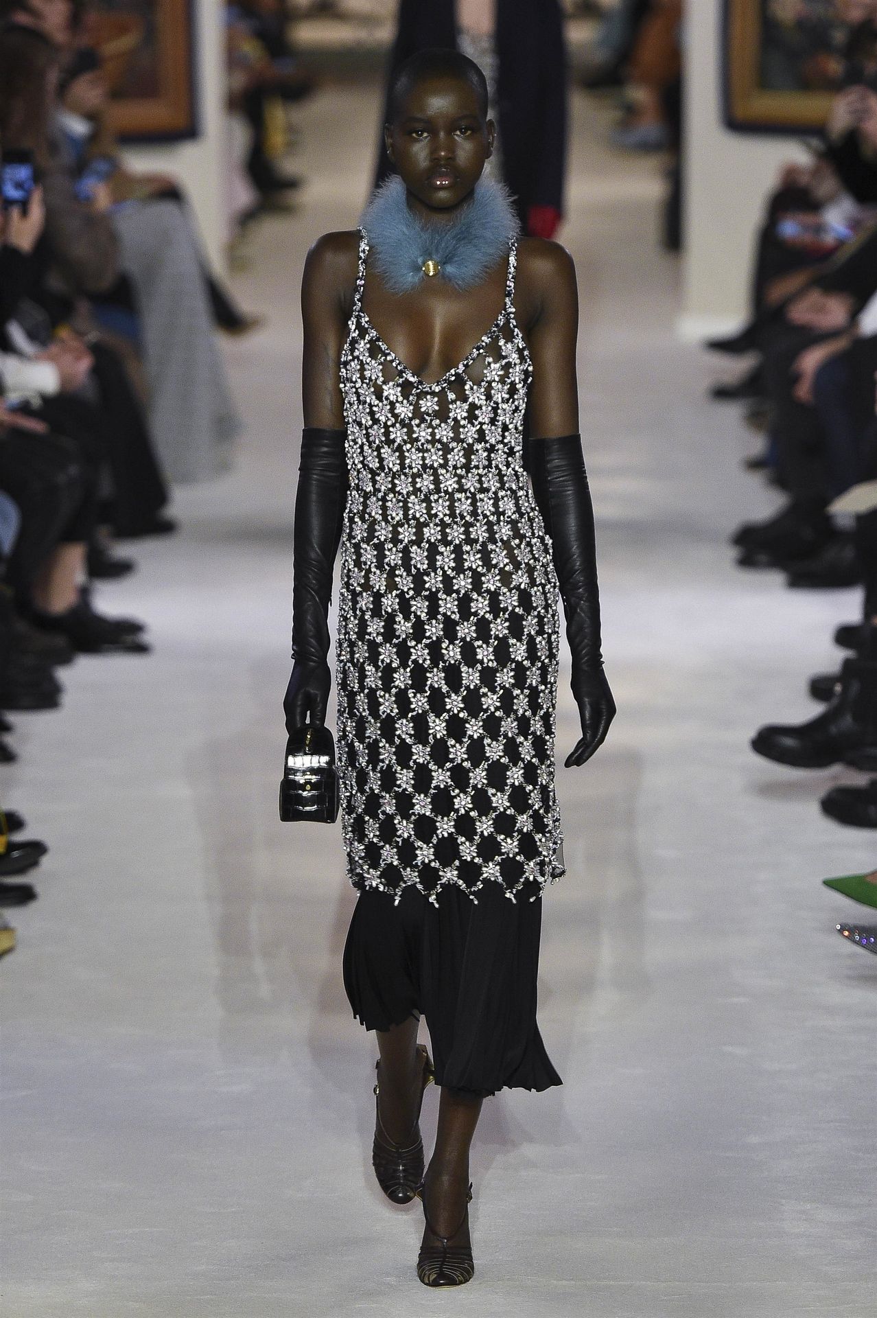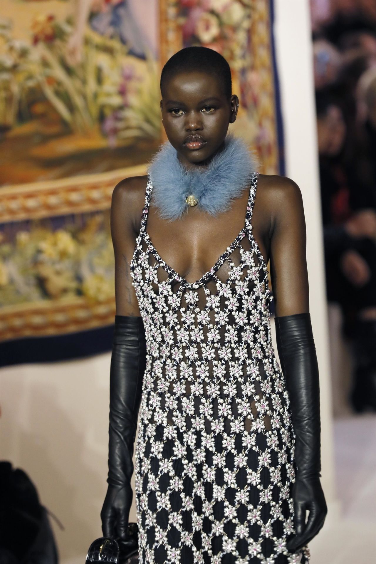 Young model Adut Akech showed her tits at The Ready-to-Wear F/W 2020/2021 “Lanvin” fashion show in Paris, 02/26/2020.