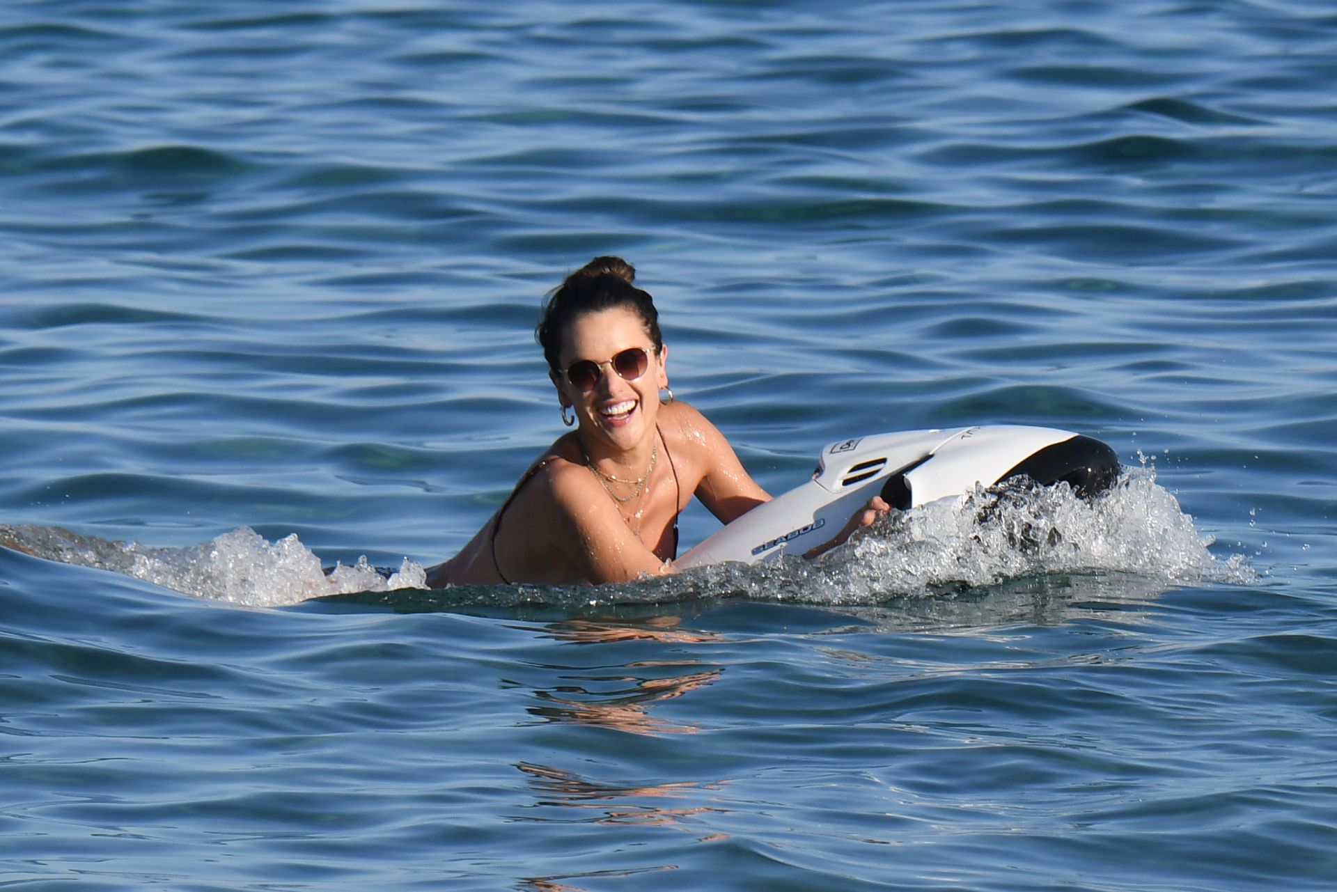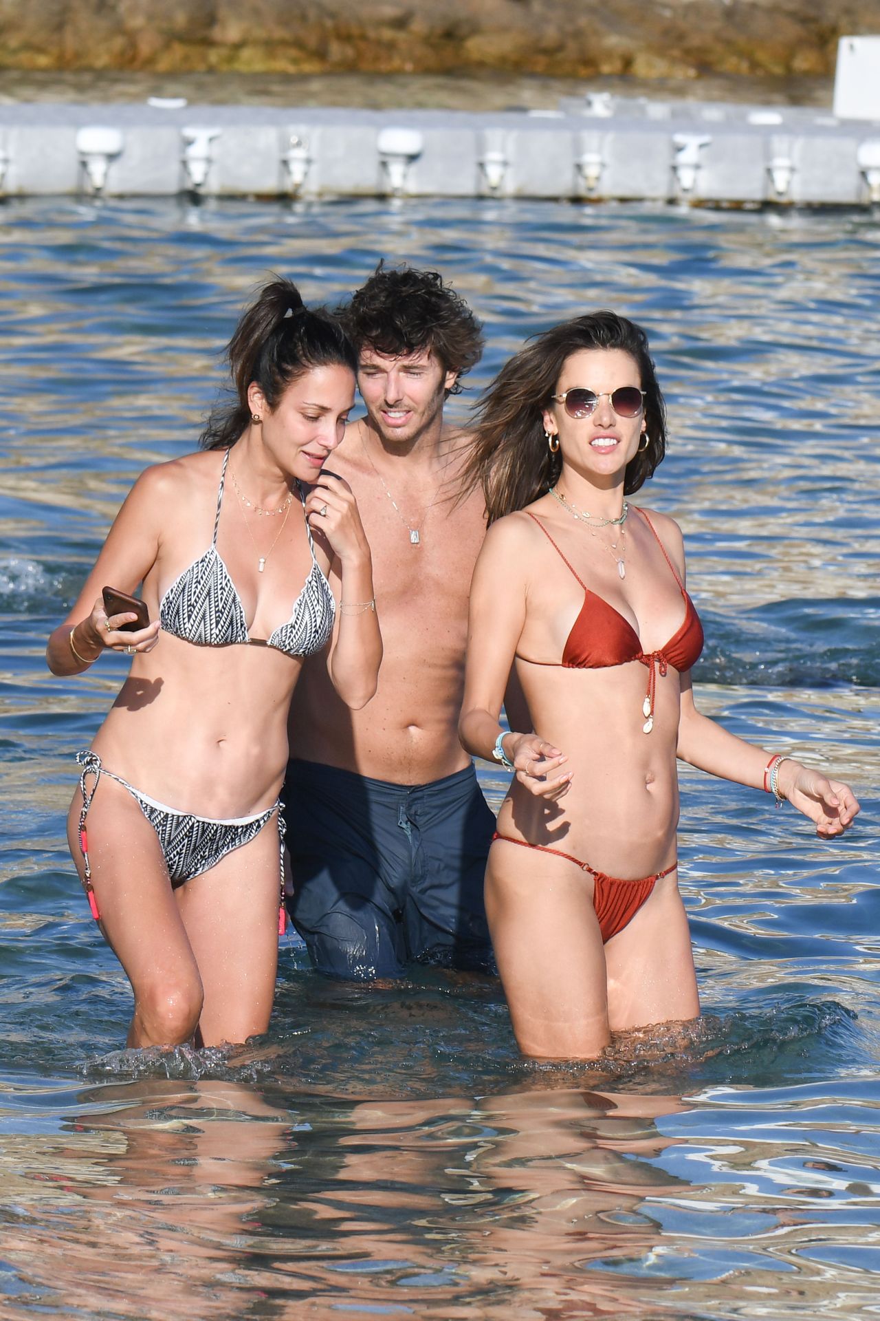 Model Alessandra Ambrosio, Jamie Mazur and Ana Beatriz Barros El Chiaty hit the beach in Mykonos, 07/13/2019.
