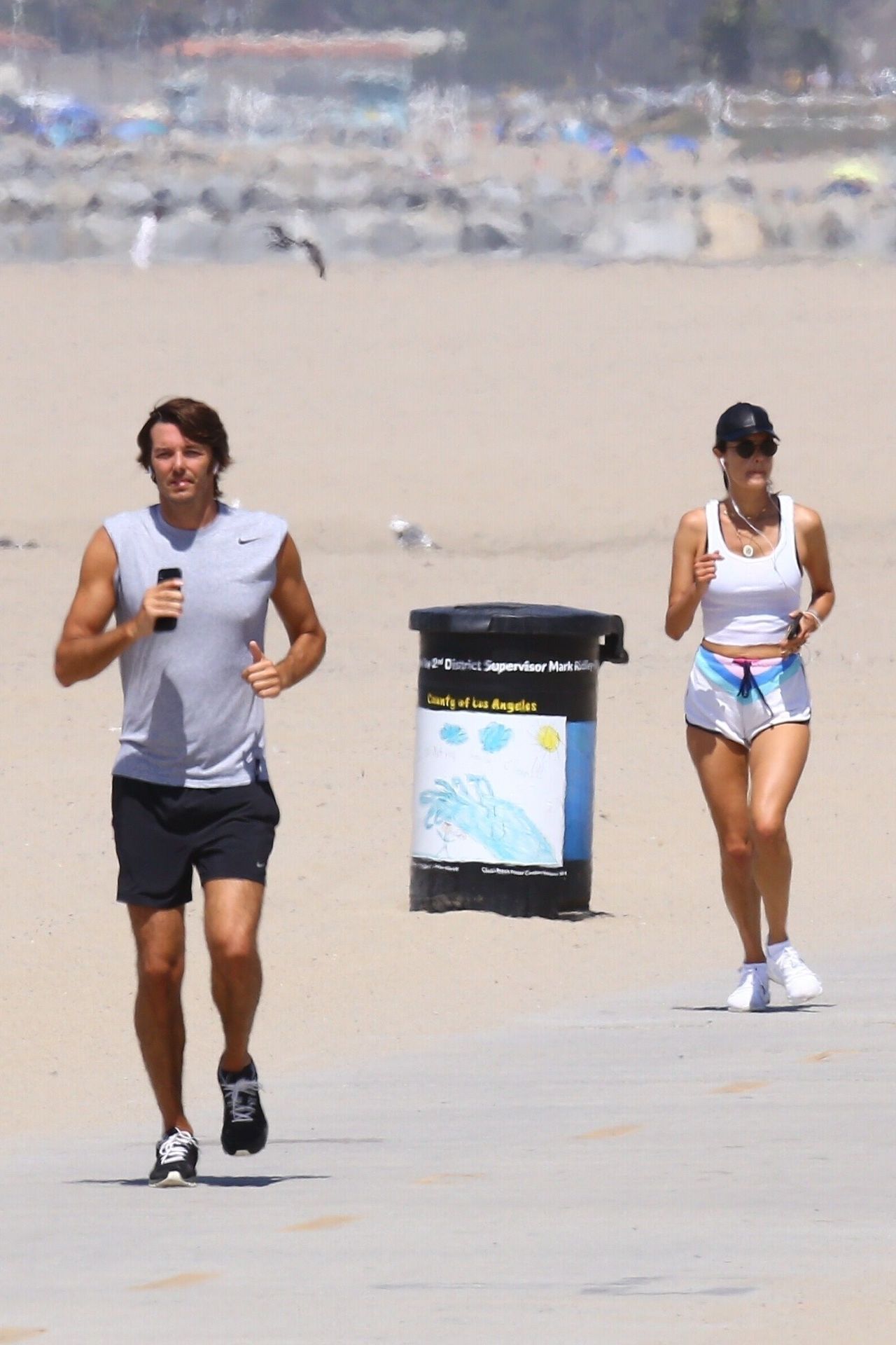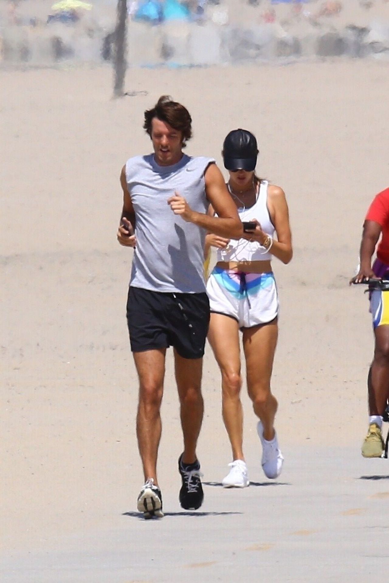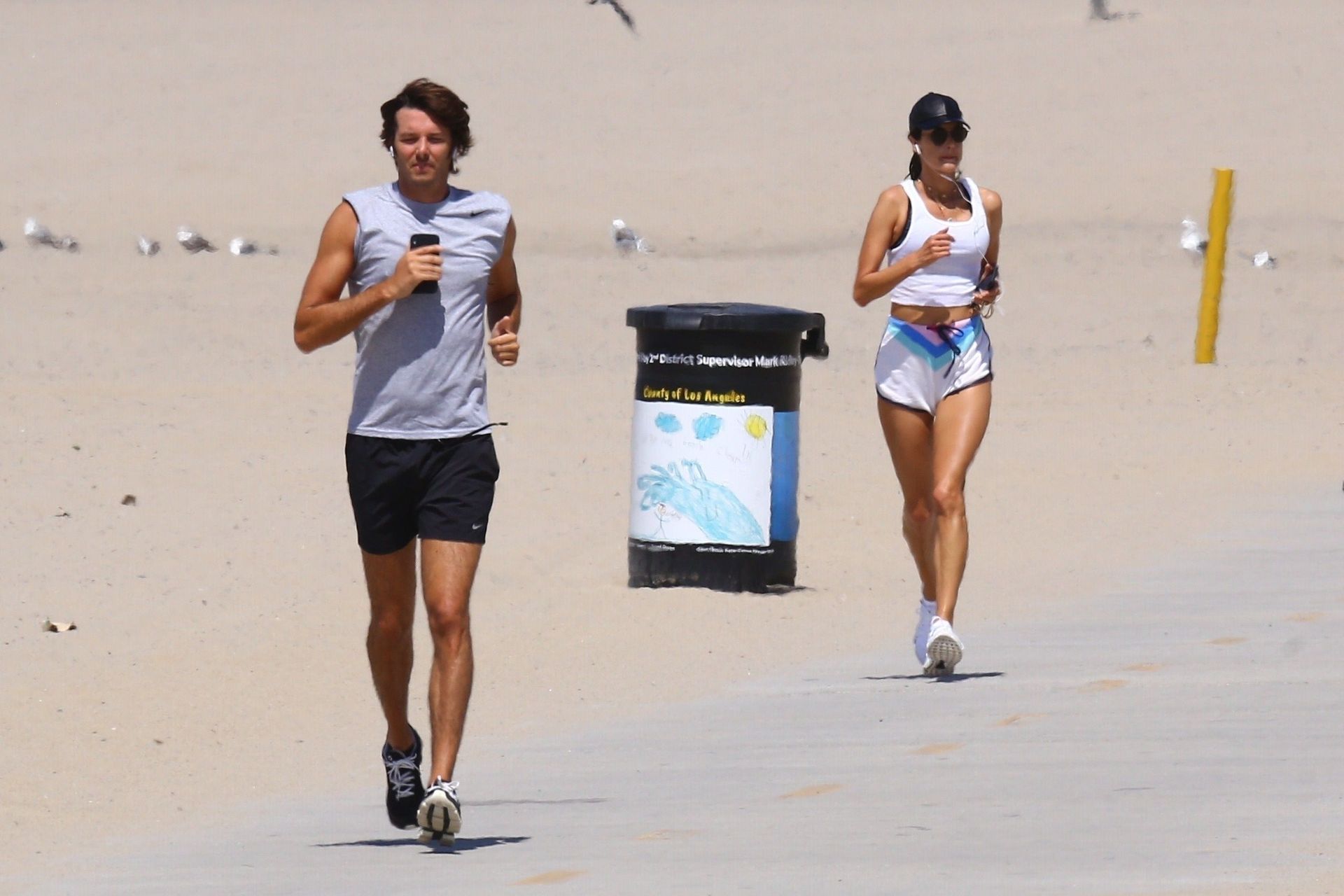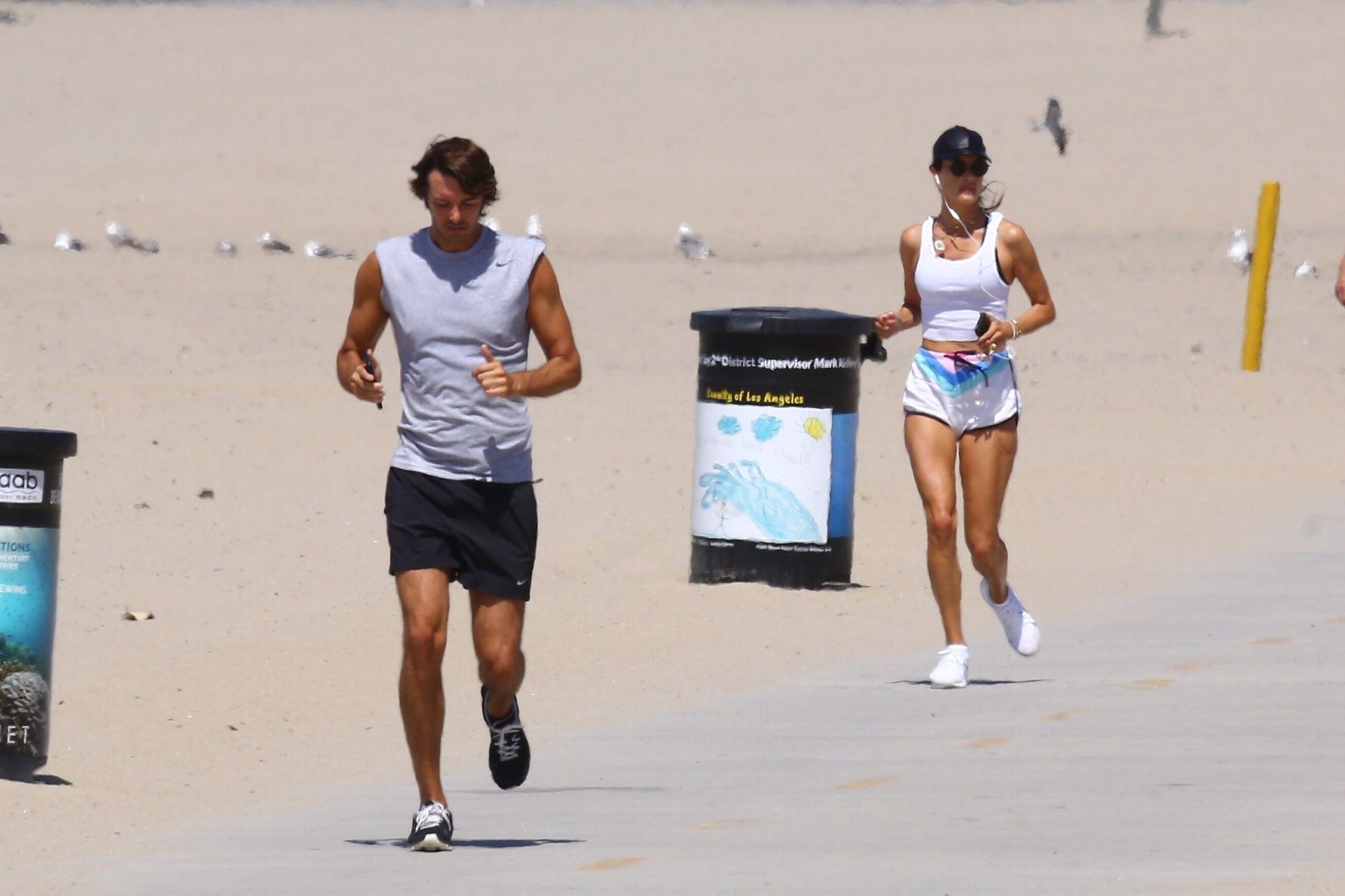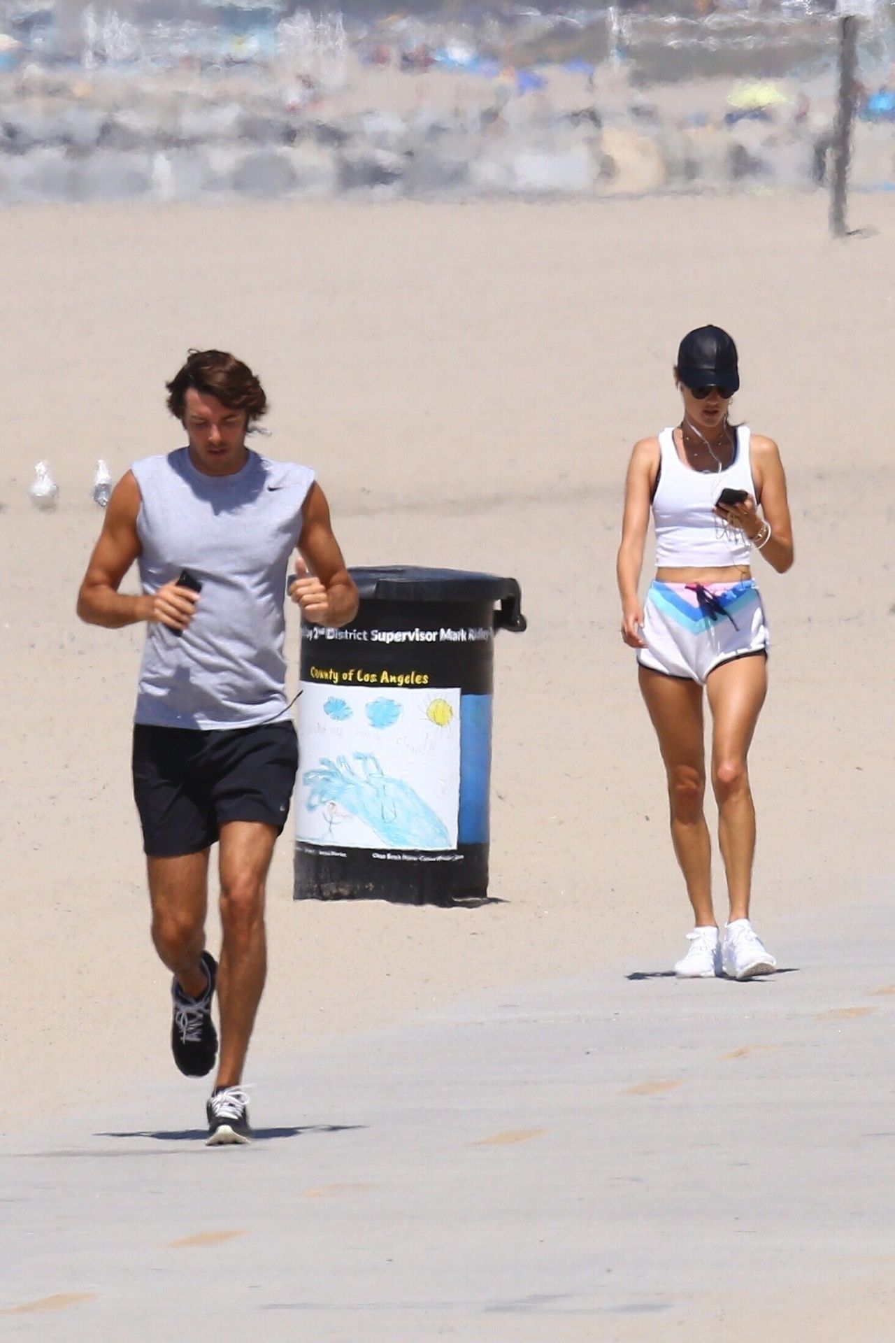 Alessandra Ambrosio and her boyfriend Nicolo Oddi go for a jog on the beach together, 08/10/2019. The duo look casual as they enjoy their scenic exercise.