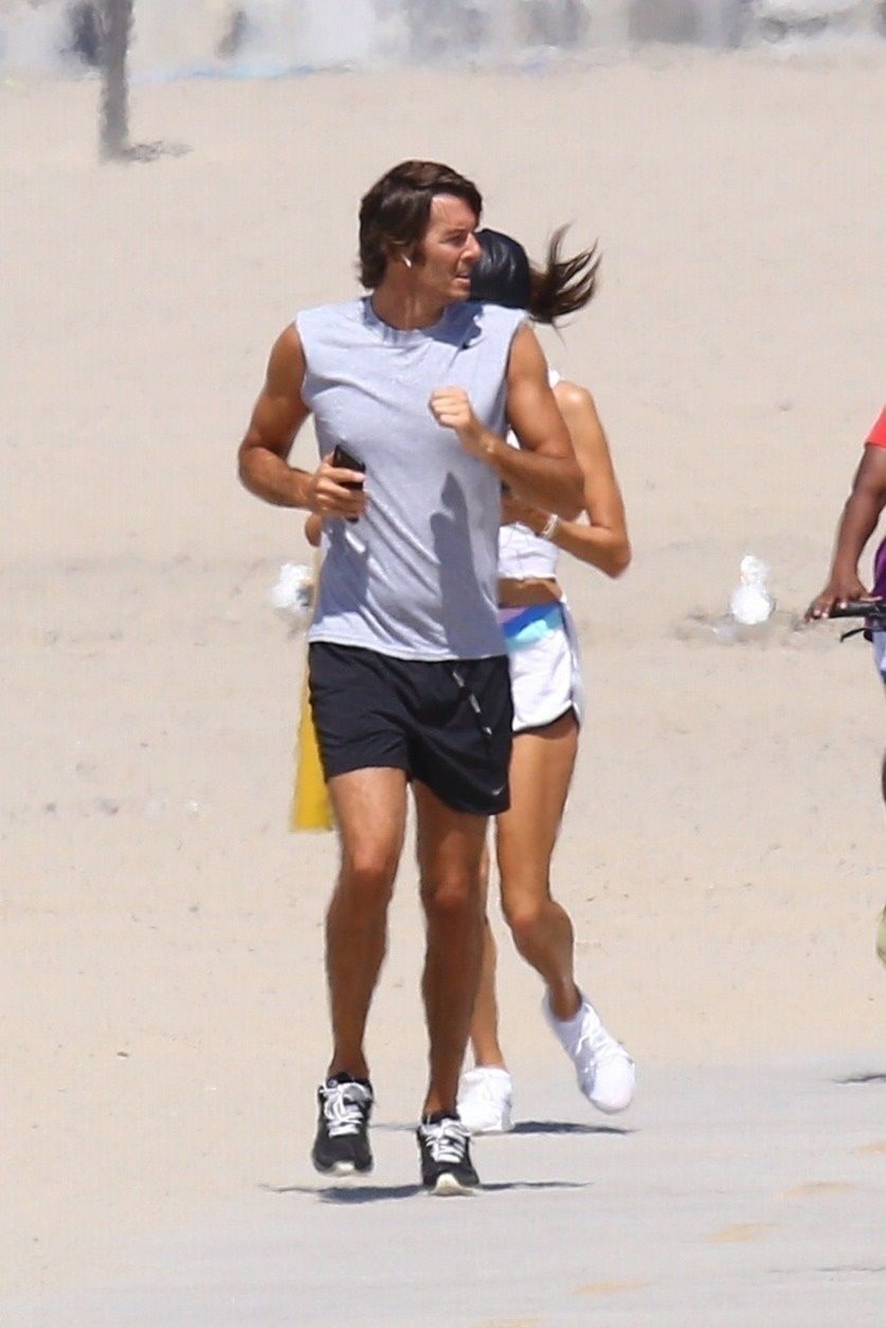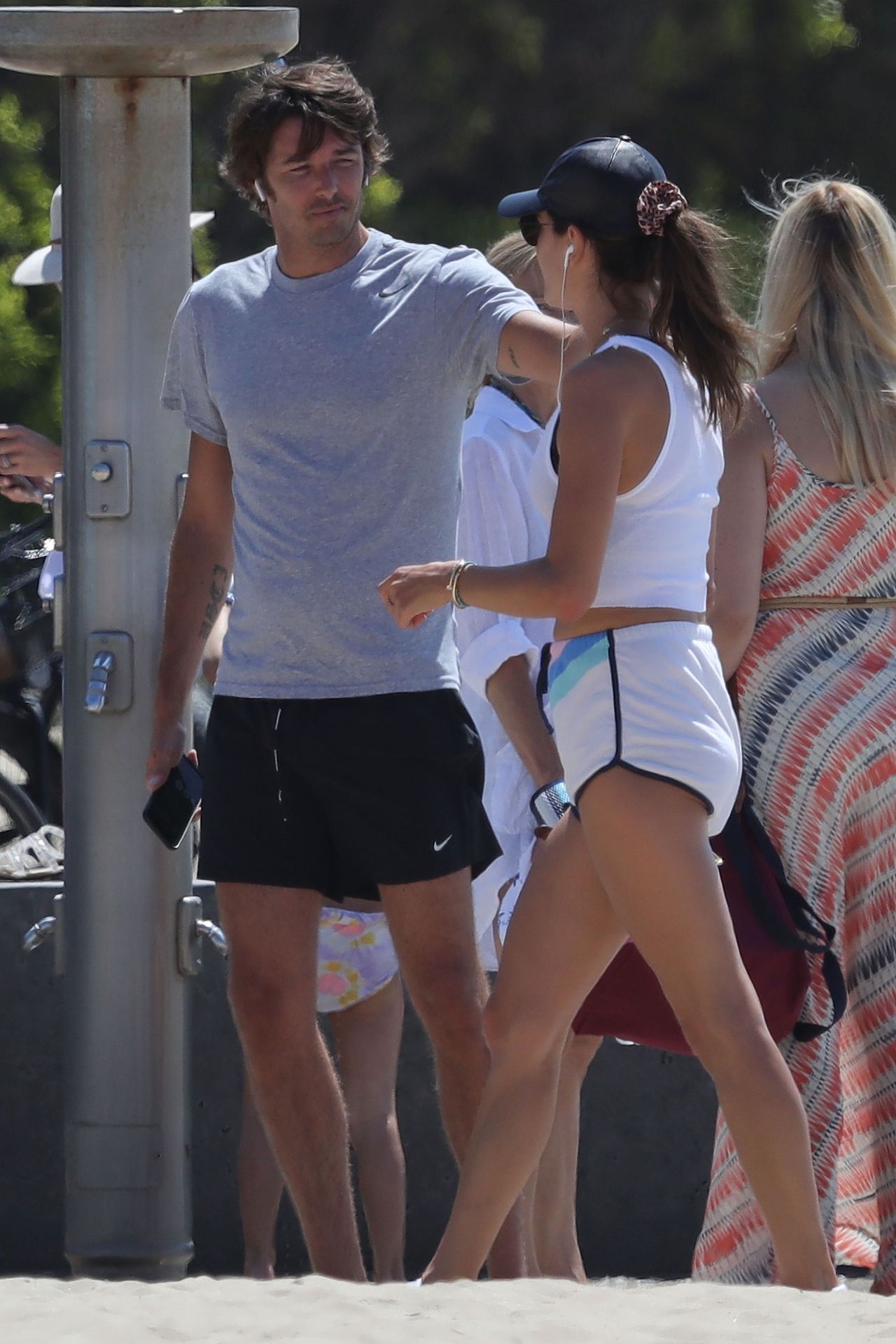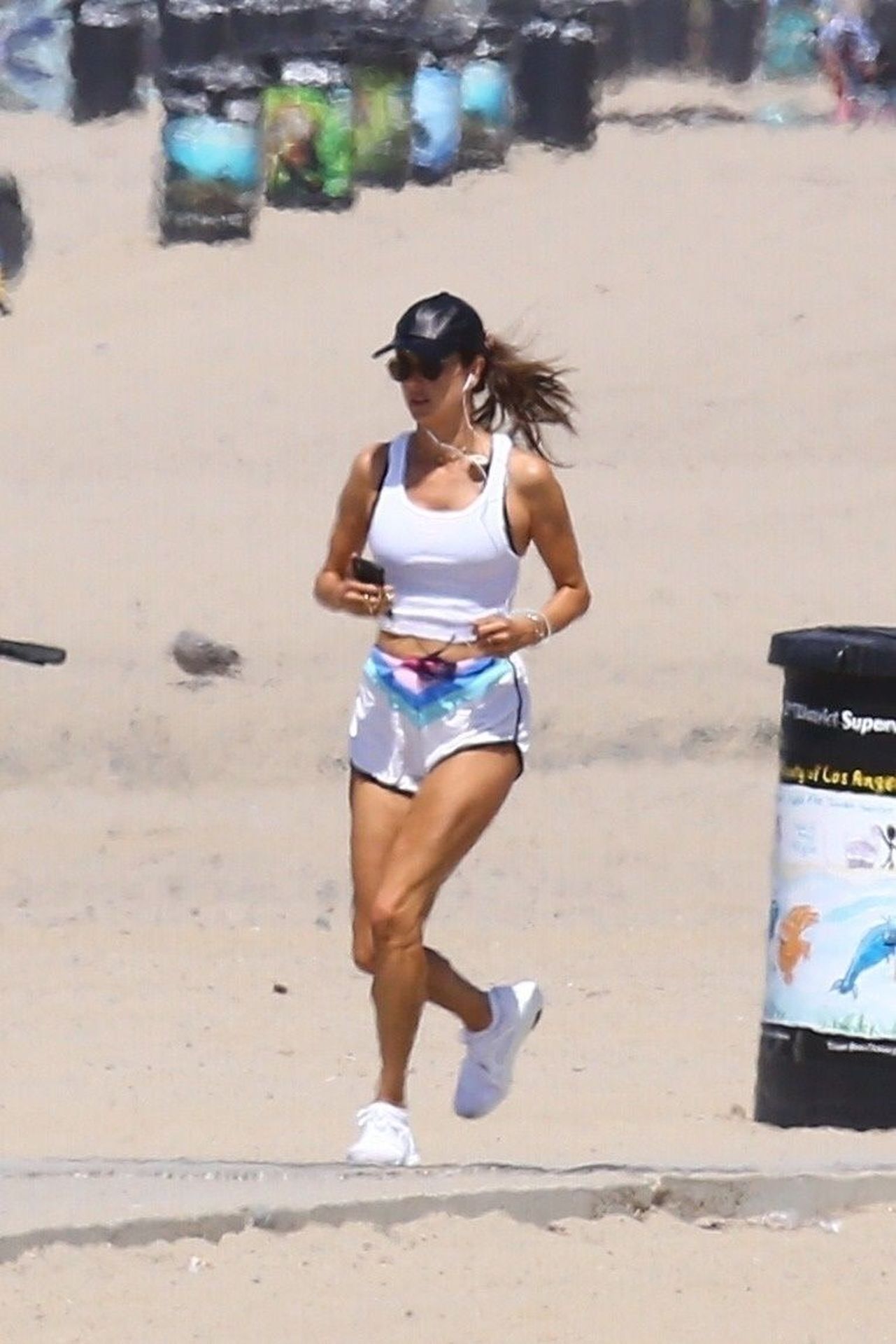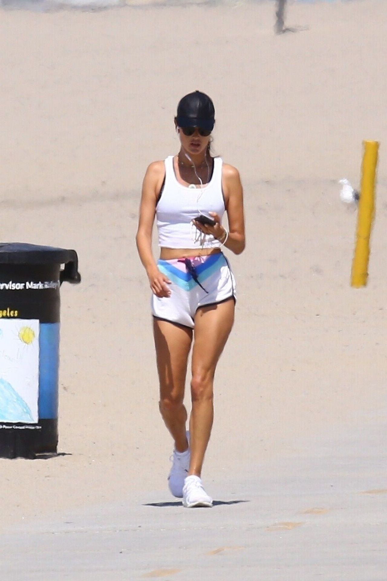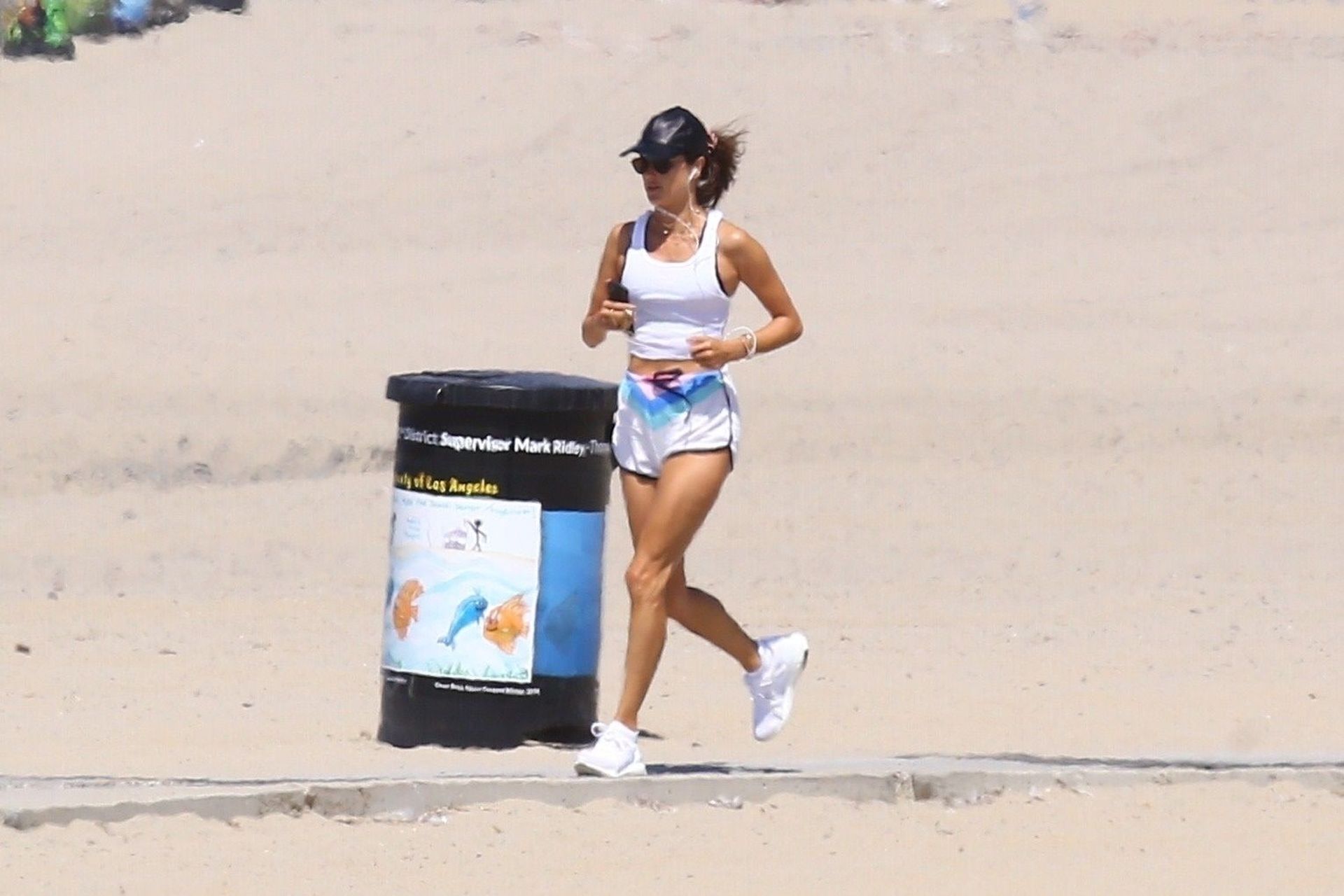 Alessandra Ambrosio and her boyfriend Nicolo Oddi go for a jog on the beach together, 08/10/2019. The duo look casual as they enjoy their scenic exercise.
