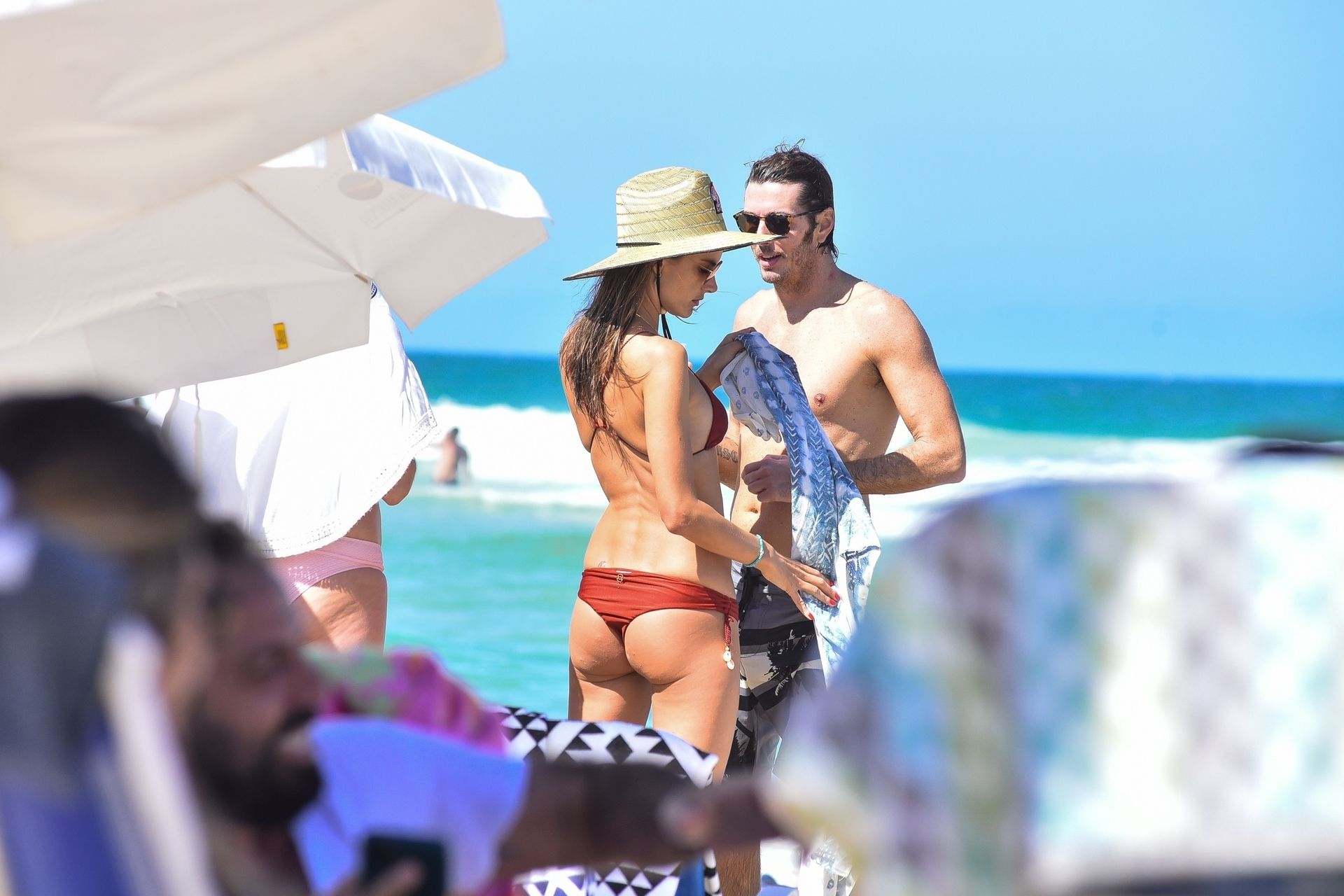 Stunning model Alessandra Ambrosio goes to the beach with her boyfriend Nicolo Oddi in Florianopolis in south Brazil, 12/27/2019.