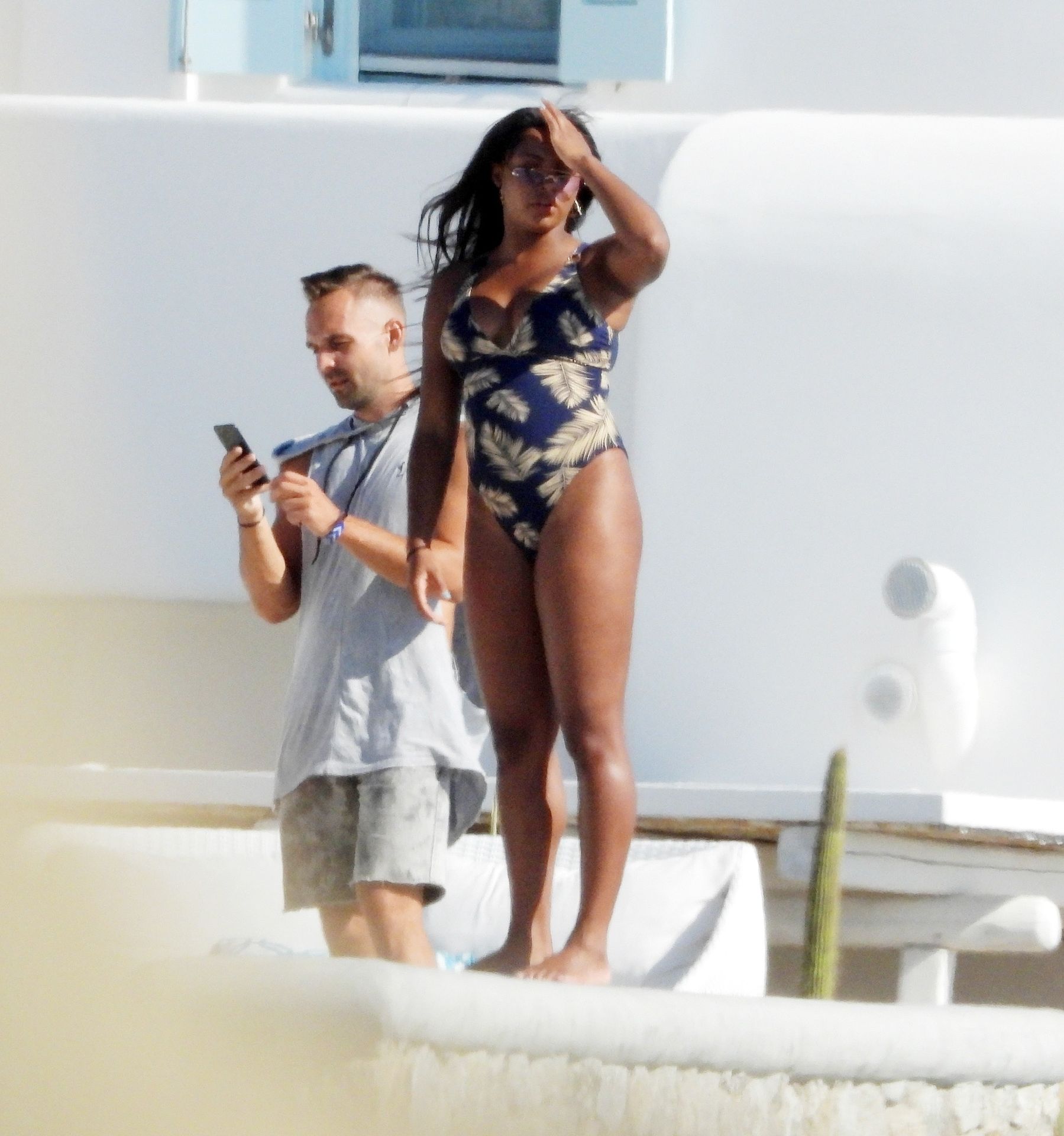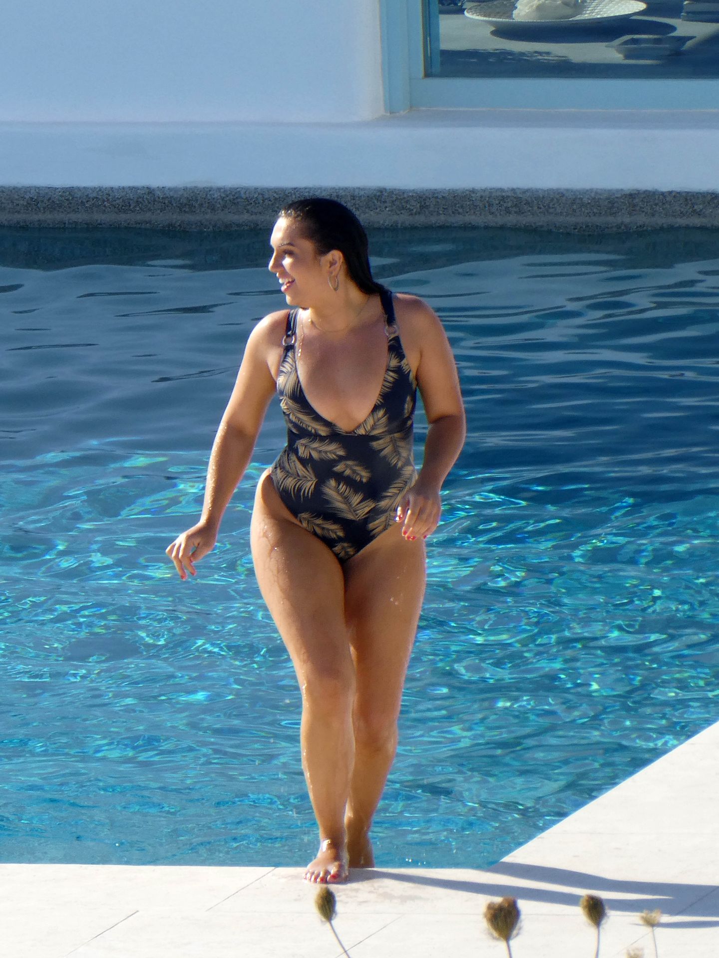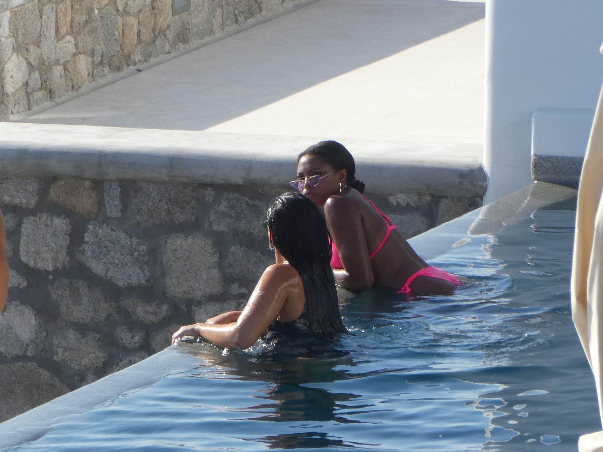 “Love Island” stars Ellie Brown, Kaz Crossley, Samira Mighty, and Alexandra Cane were pictured spending their time enjoying their holiday by the pool in Mykonos, 07/18/2019.