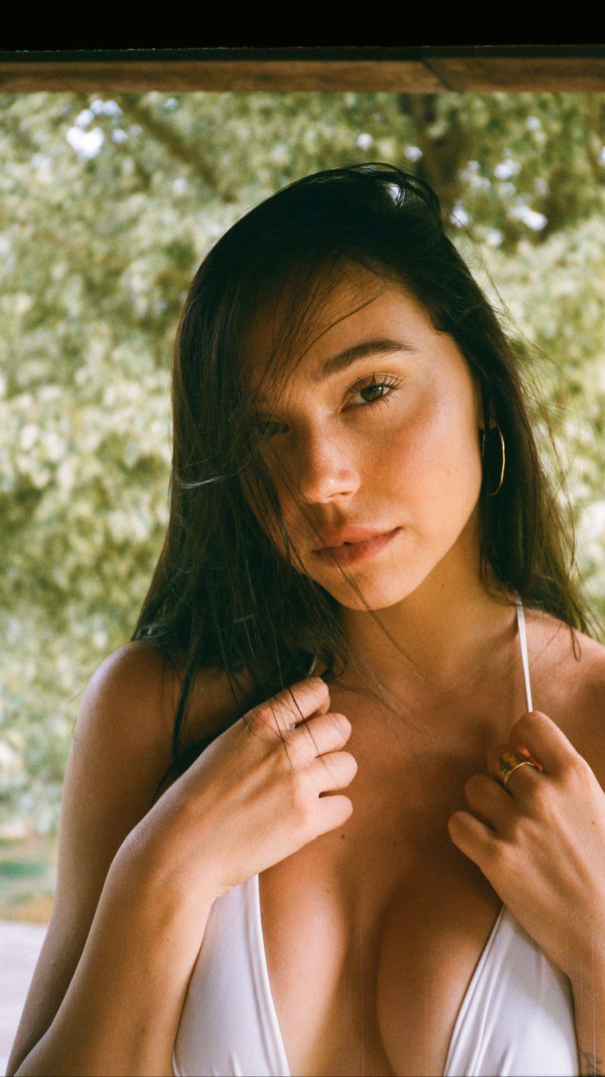 Alexis Ren show off her fantastic boobs and perfect ass wearing skimpy white bikini in sexy photoshoot.