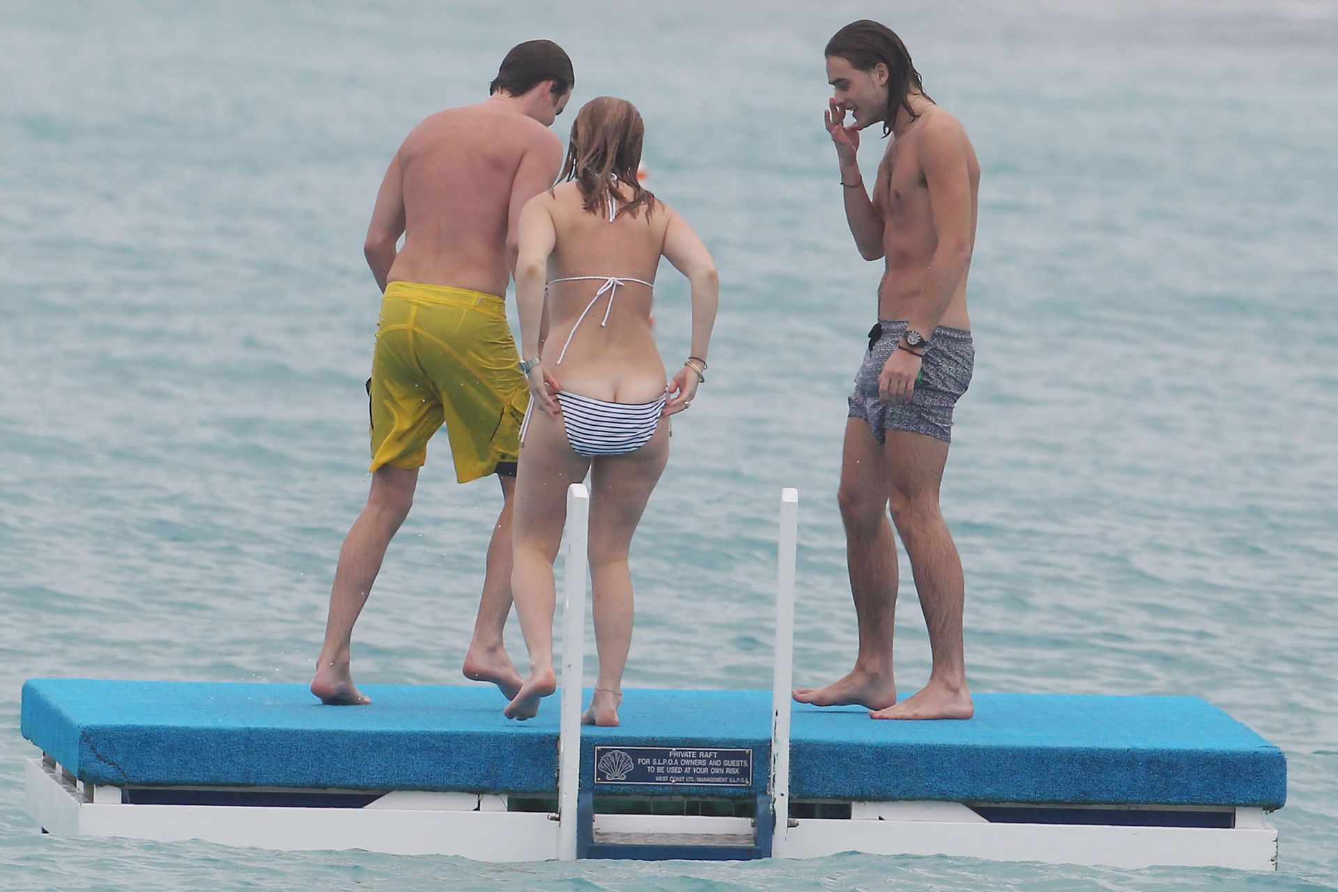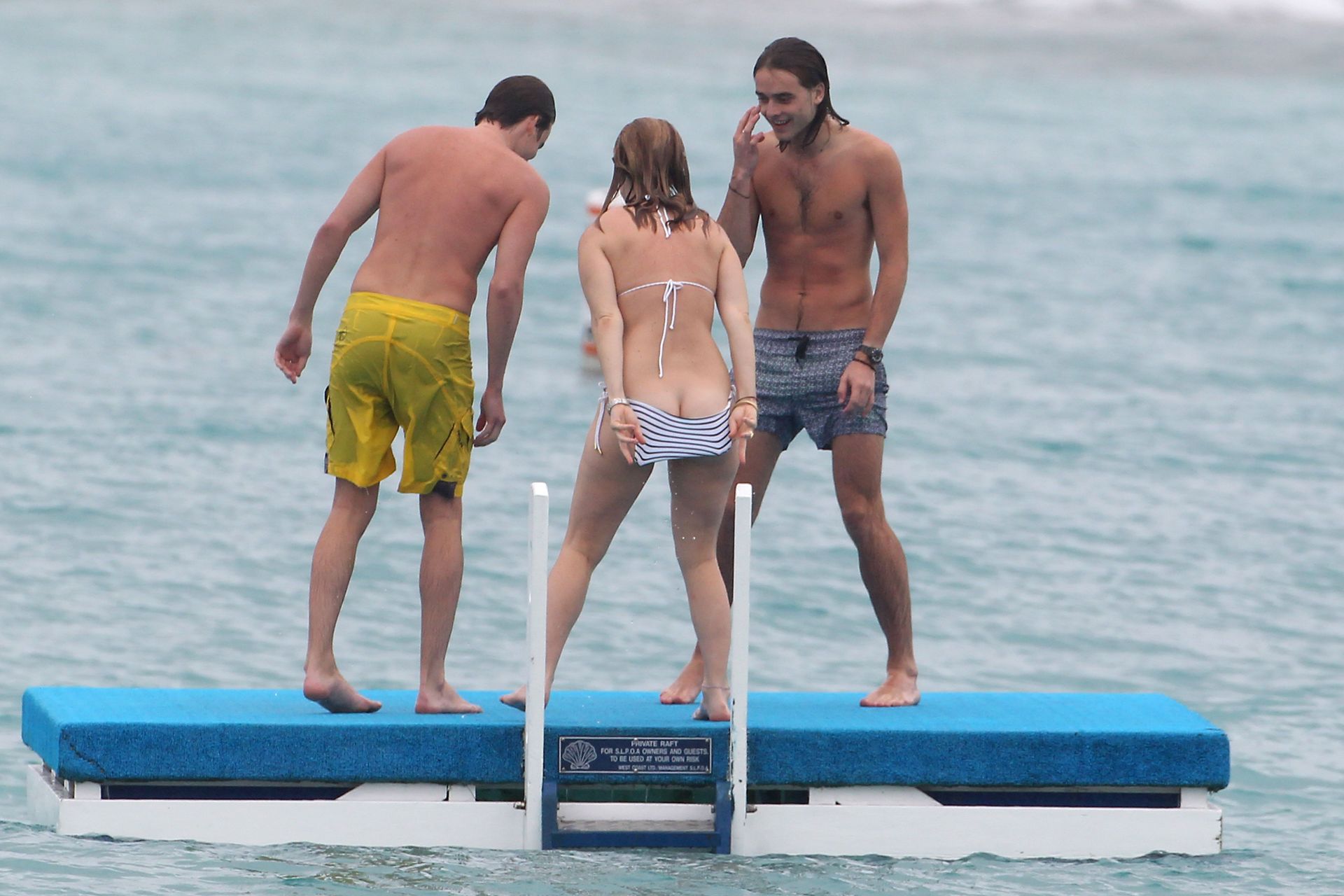 Actress Alice Eve pleased us with her bare butt while enjoying her vacation on the beach in Barbados (December 2013).