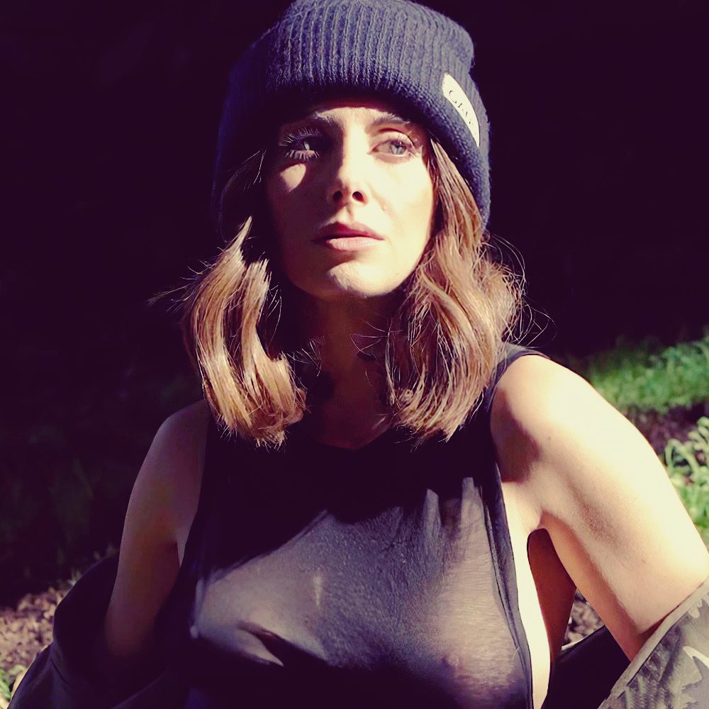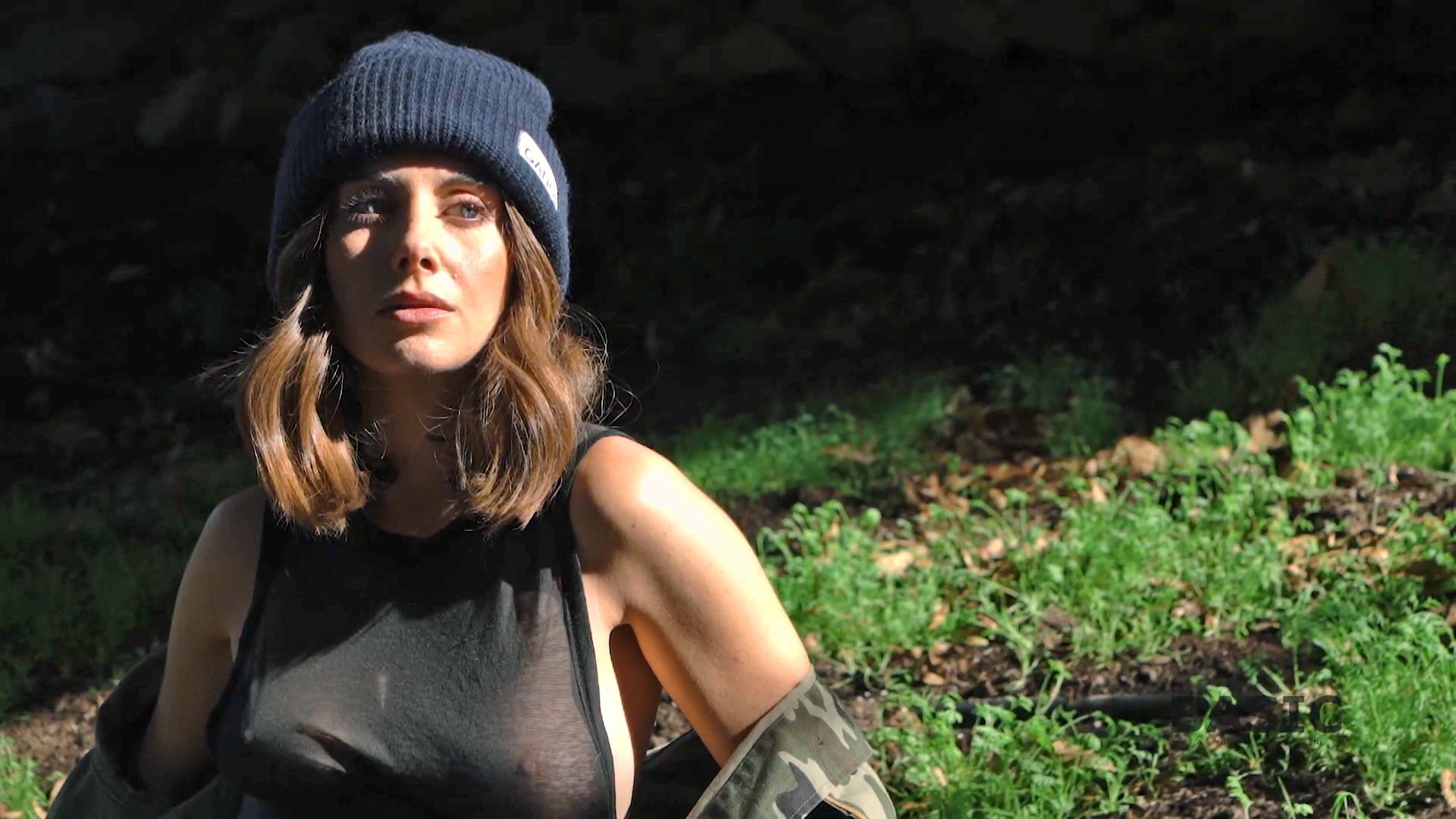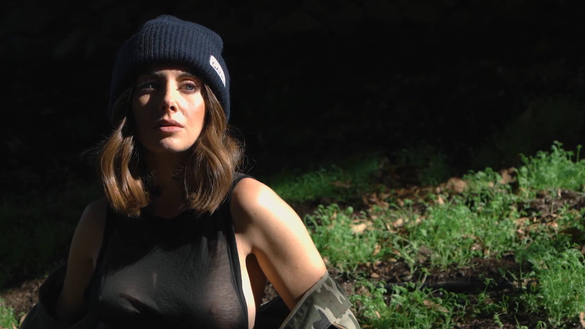 “Horse Girl” actress Alison Brie shows her boobs, while posing in a see-through black T-shirt in a new sexy video for Basic Magazine (February 2020).