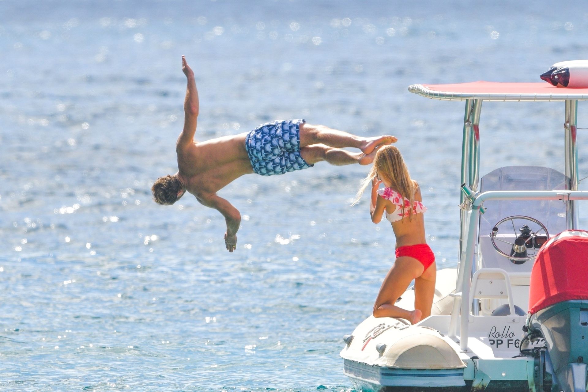 James Middleton and Alizée Thevenet were looking to be having in the sun and having picnic on a boat in St. Barth, France, 01/05/2020.