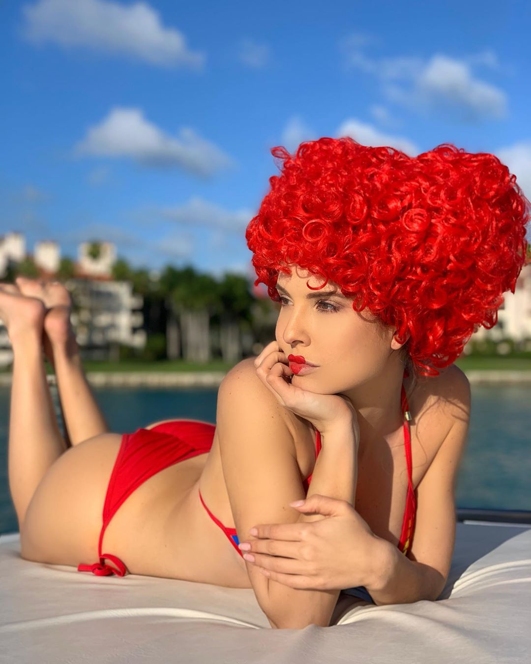 Social media, Playboy and Maxim star Amanda Cerny shared some sexy pics for her Instagram followers (January 2020). She showed her tits, while posing in a bikini and heart cap.
