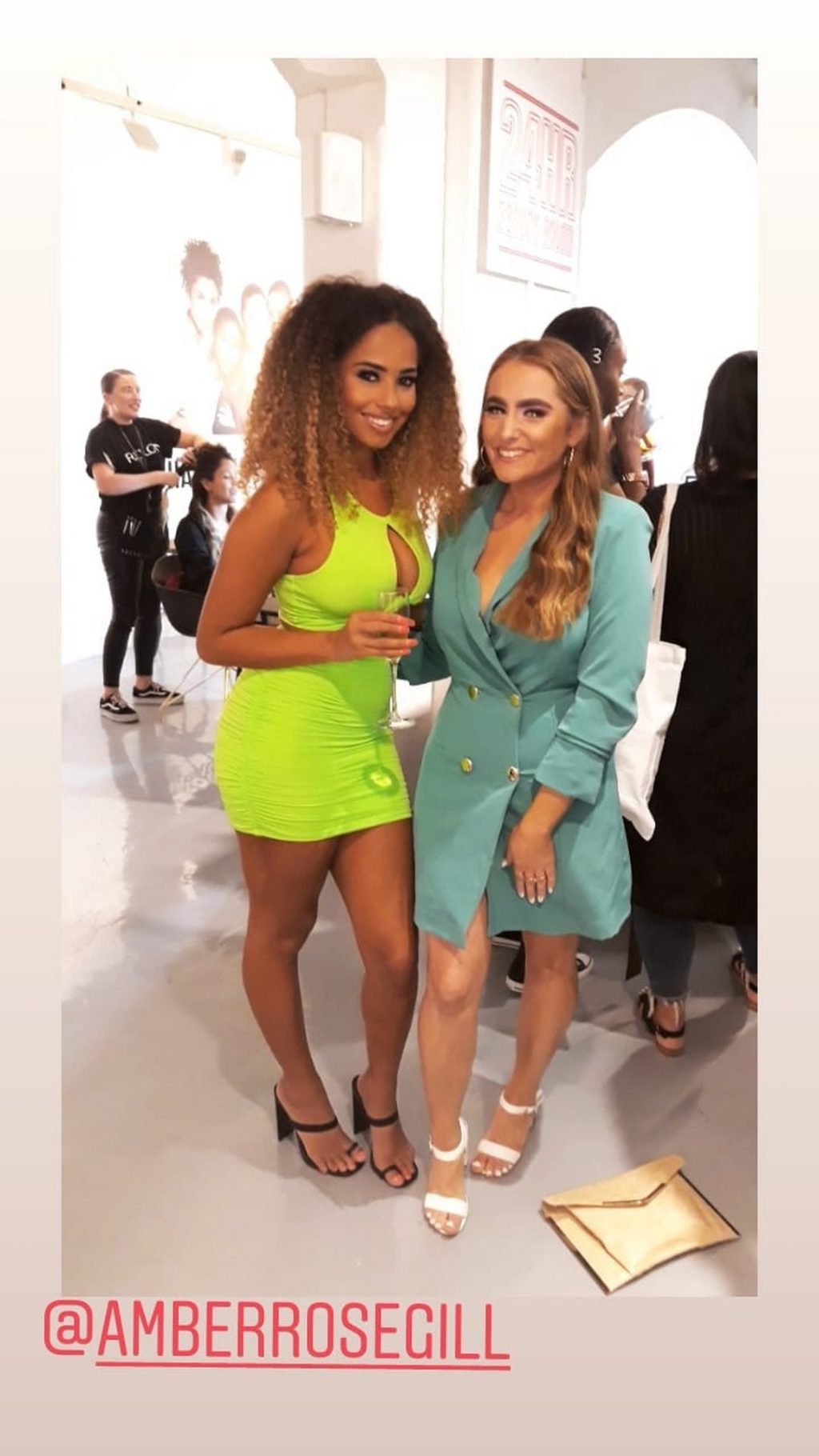 “Love Island” star Amber Rose Gill was seen here wearing racy neon green outfit showing off a lot of cleavage and legs as she leaves Revlon 24hr beauty salon with Harley Brash – London, 09/19/2019.