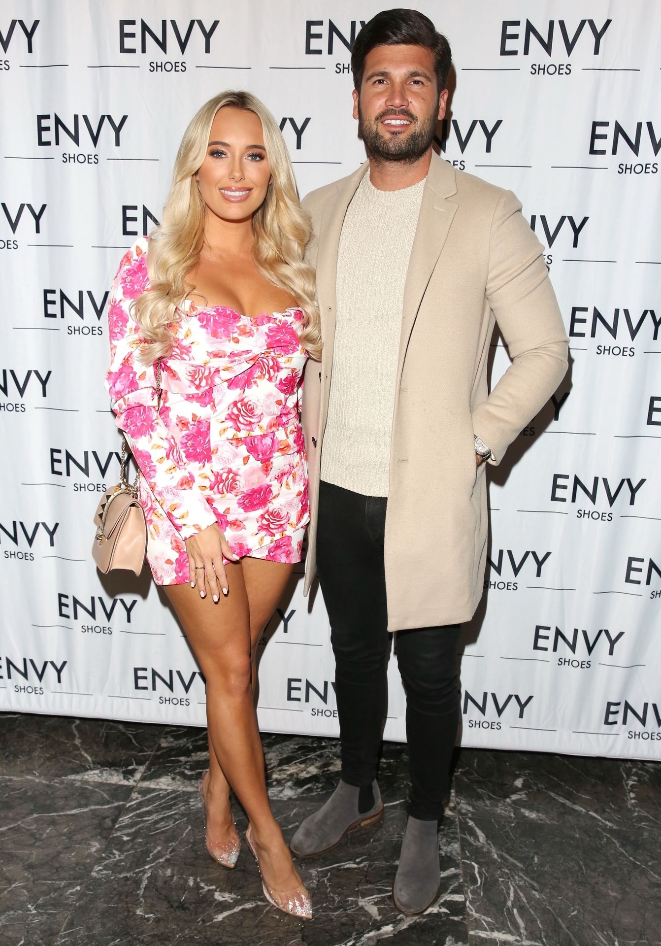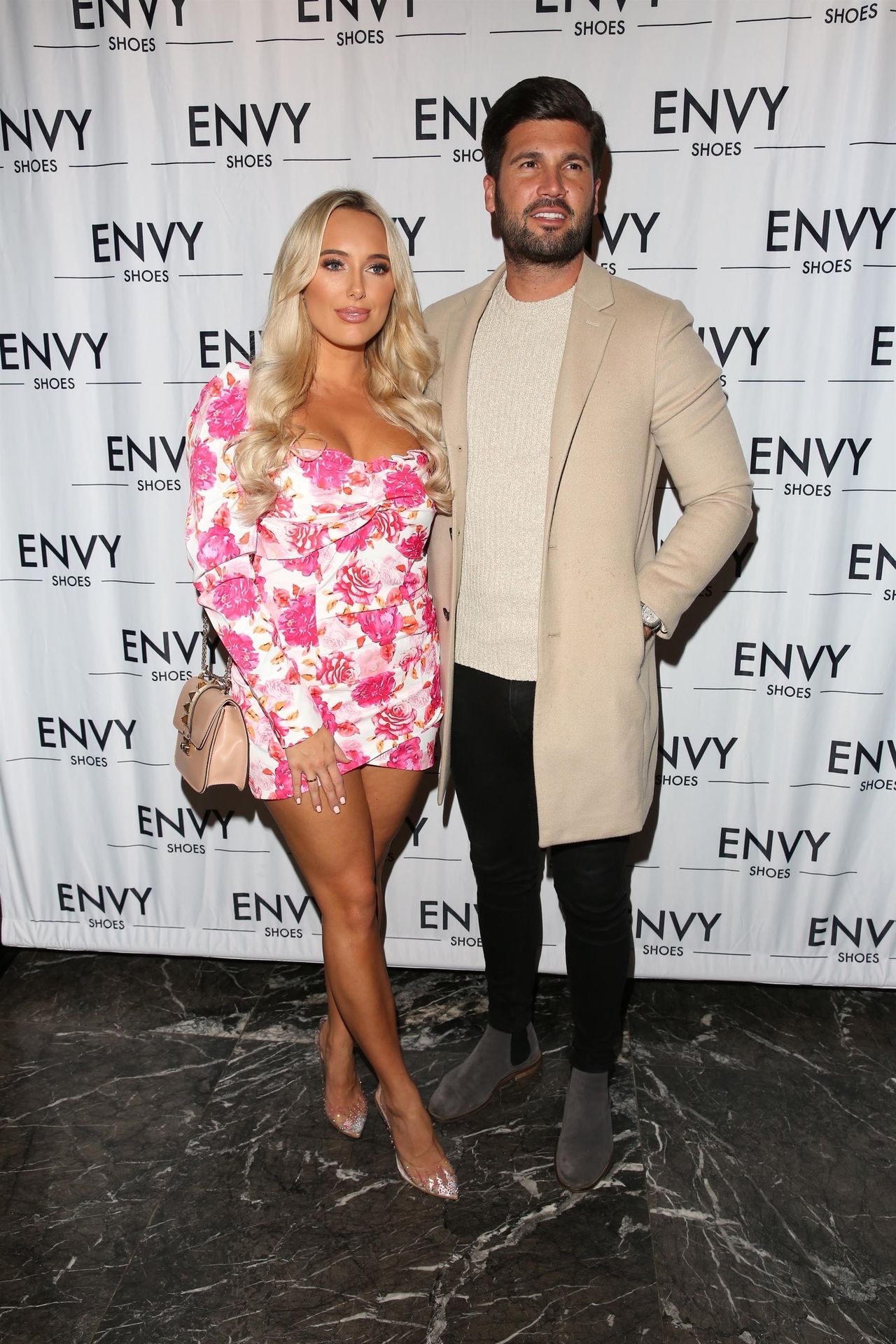 Fashion blogger and TOWIE star Amber Turner was pictured in a white-pink short dress at the Dorsett hotel in London for the launch of her winter collaboration with Envy Shoes, held at Jin Bo Law on the 14th floor of the Dorsett City Hotel, Aldgate, 10/16/2019.