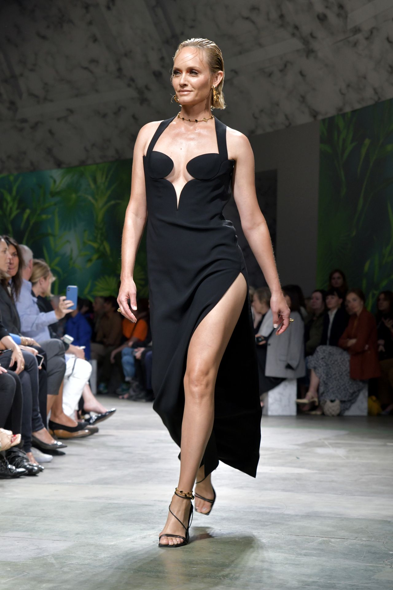 Veteran model Amber Valletta showed off her sexy legs and tits on the catwalk of the Versace Spring/Summer 2020 show during Milan Fashion Week in Italy, 09/20/2019.