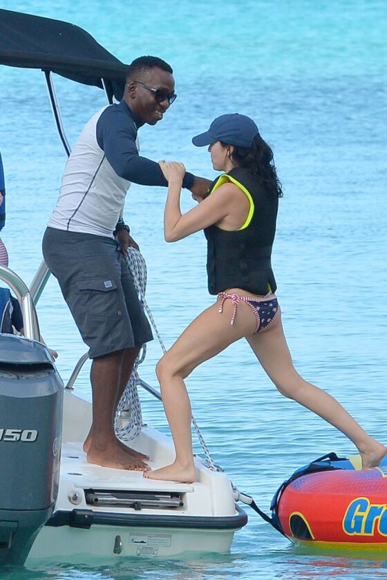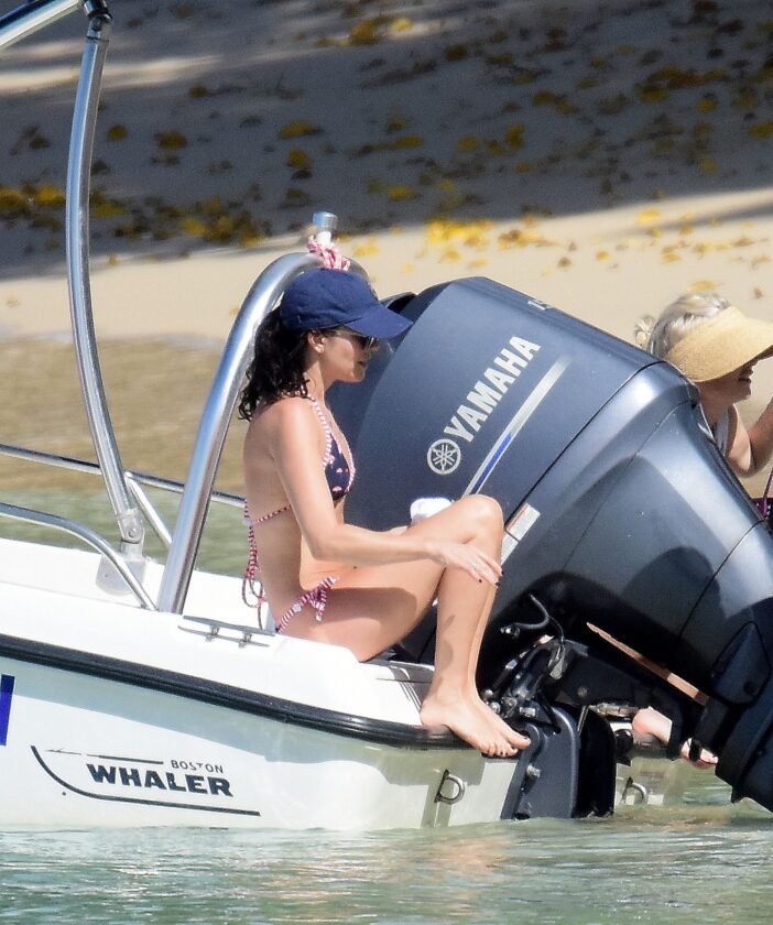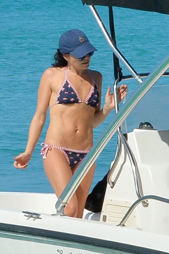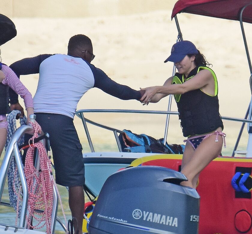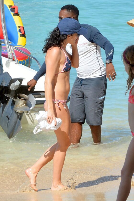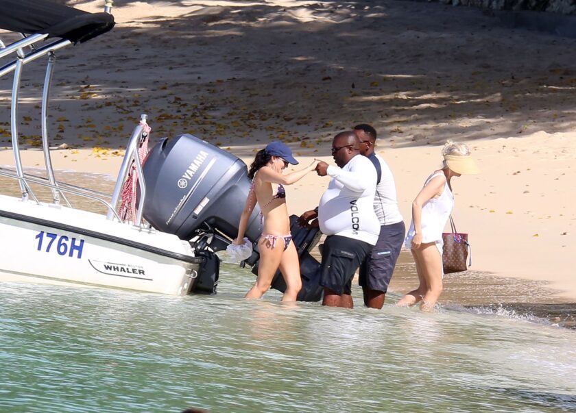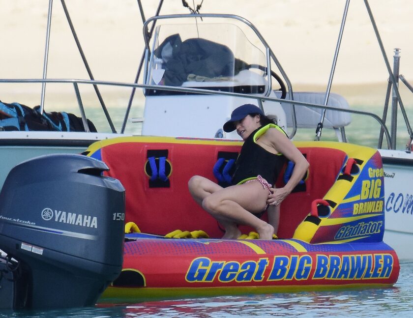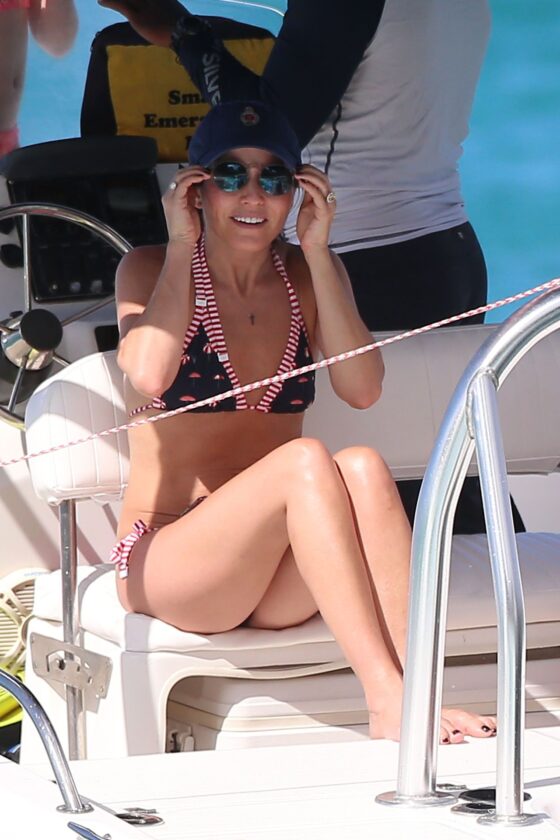 Andrea Corr shows off her amazing bikini body as she is seen getting off a boat and walking on the beach in Barbados, 12/20/2018.