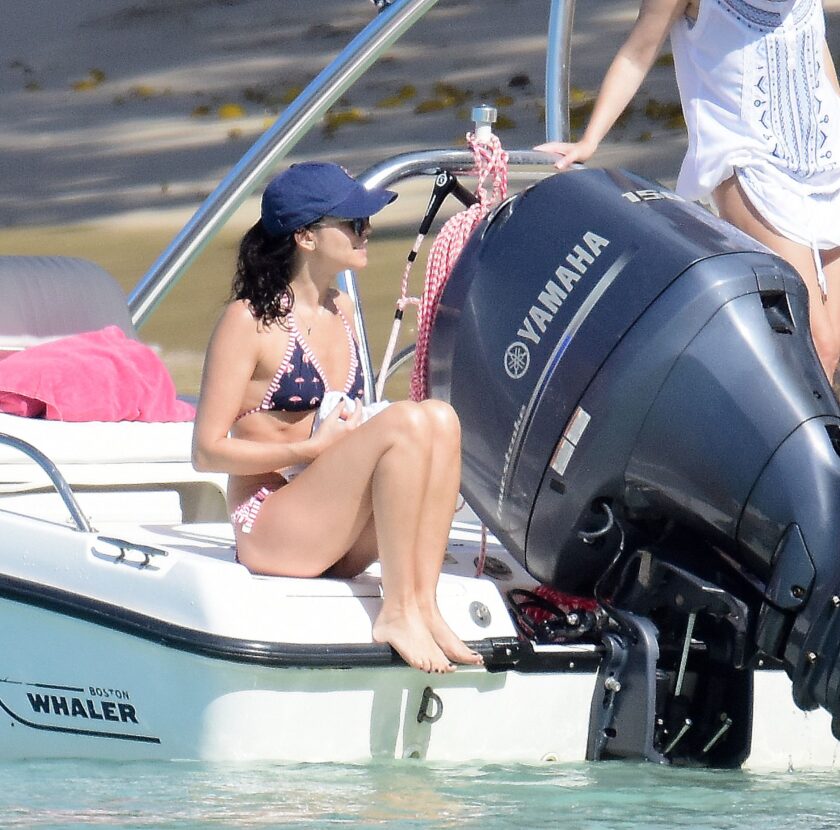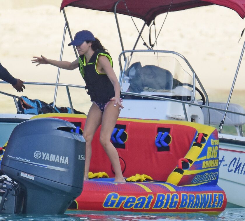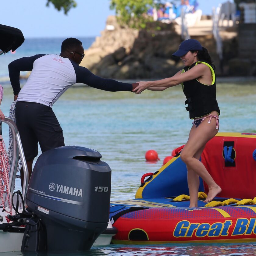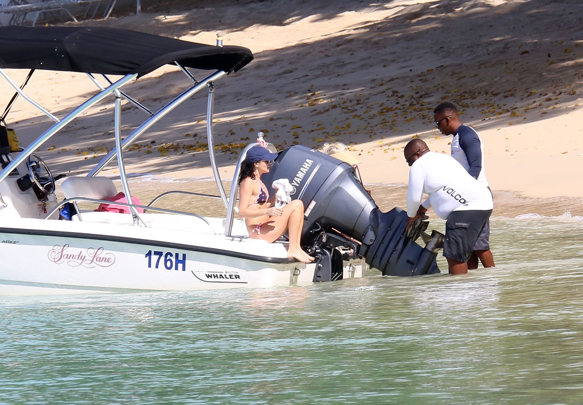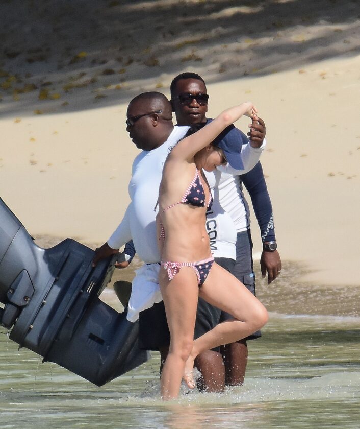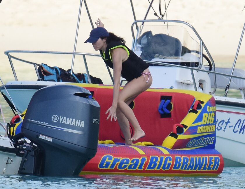 Andrea Corr shows off her amazing bikini body as she is seen getting off a boat and walking on the beach in Barbados, 12/20/2018.