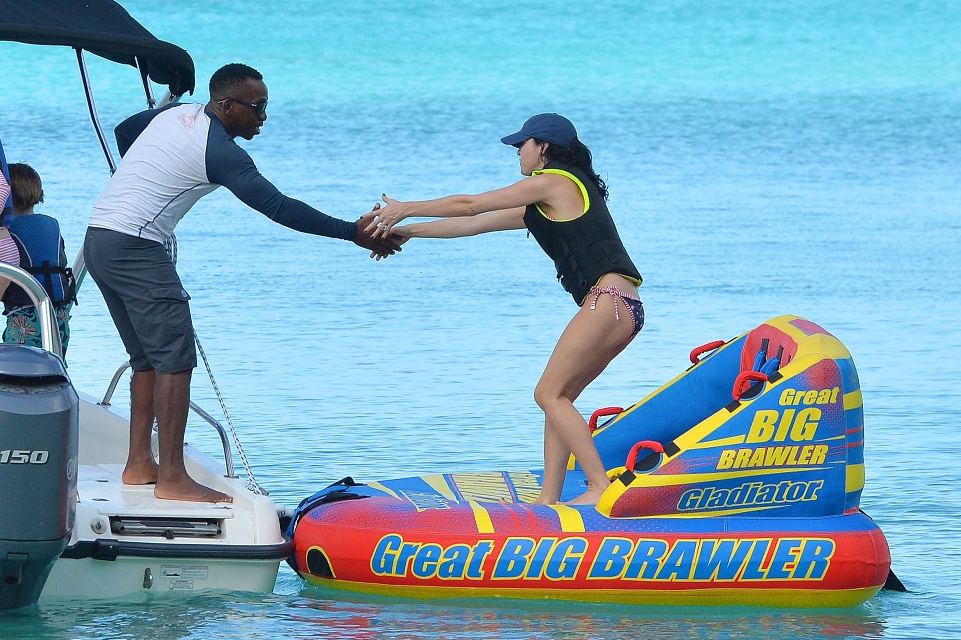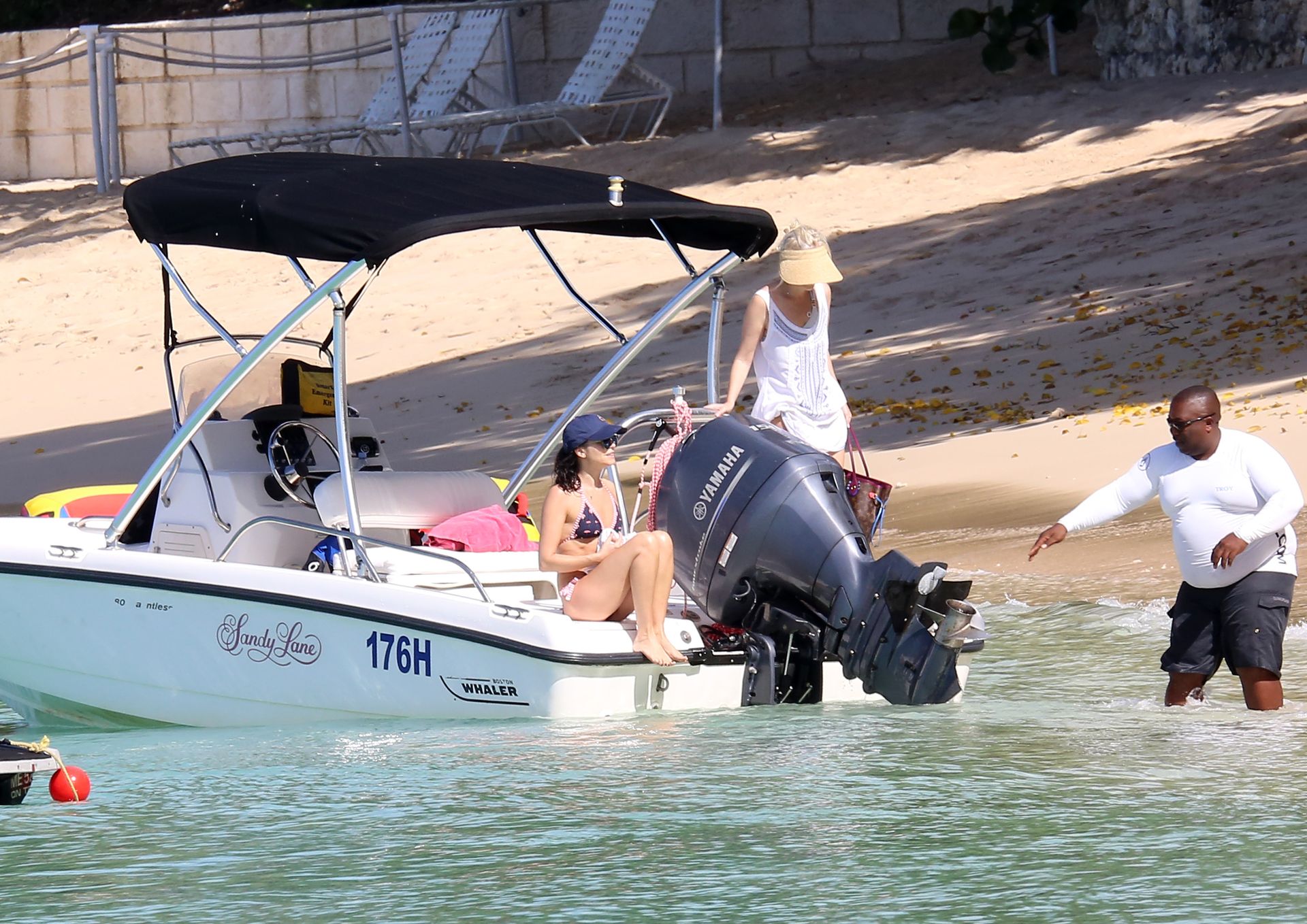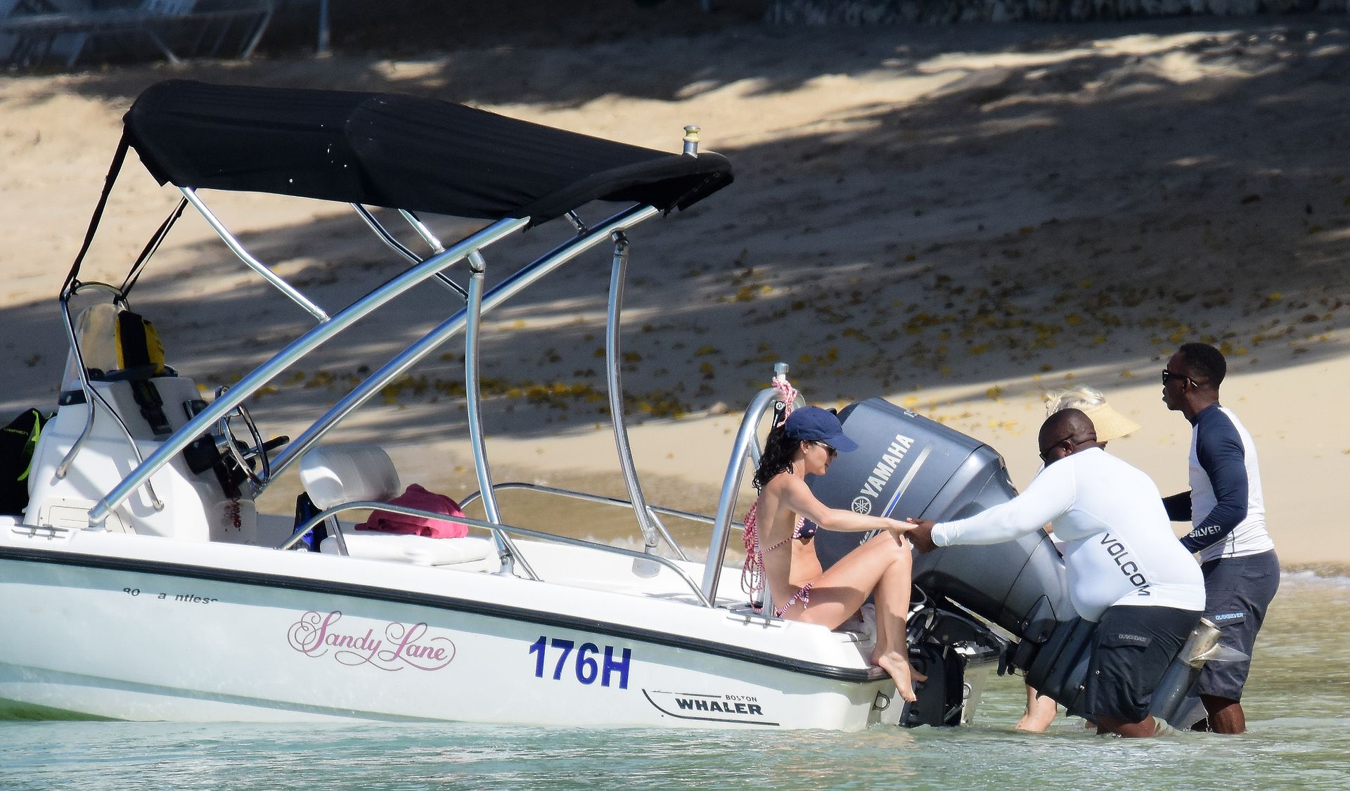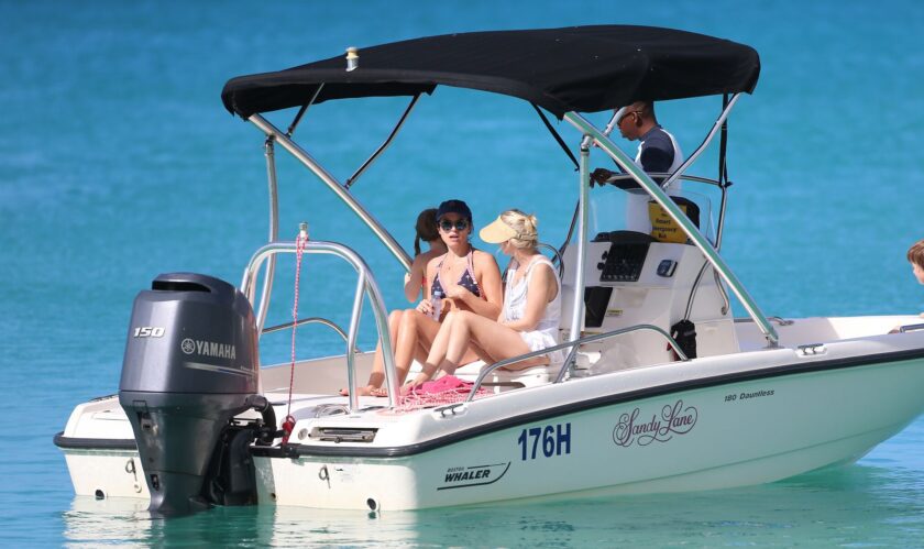 Andrea Corr shows off her amazing bikini body as she is seen getting off a boat and walking on the beach in Barbados, 12/20/2018.