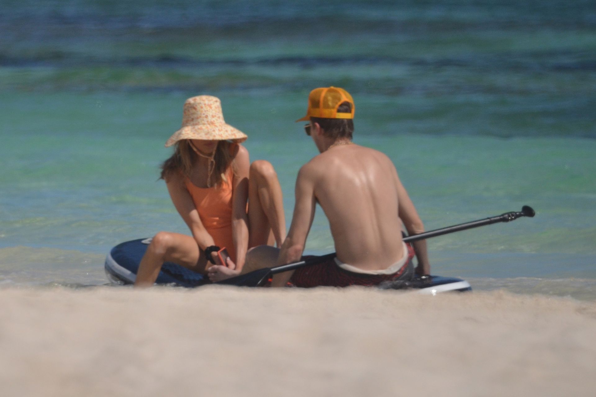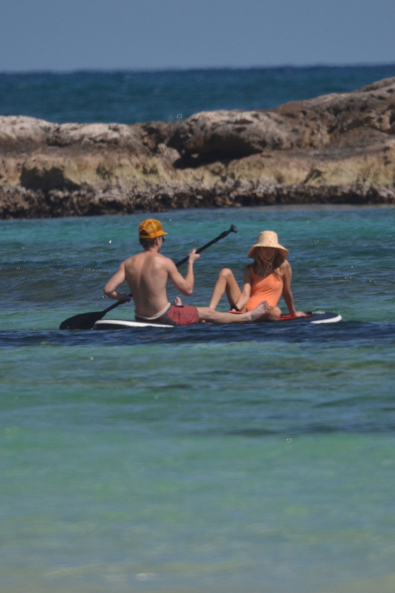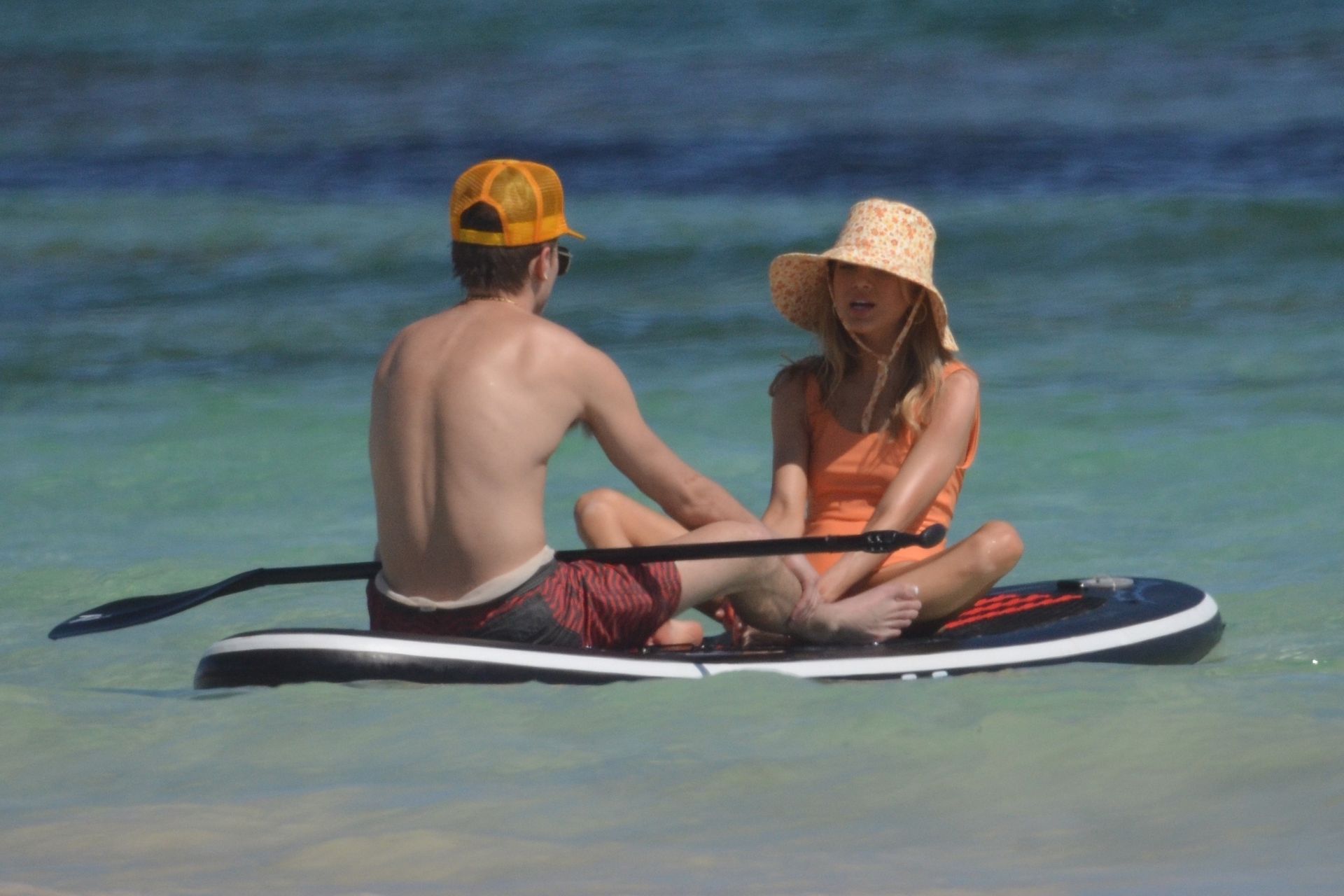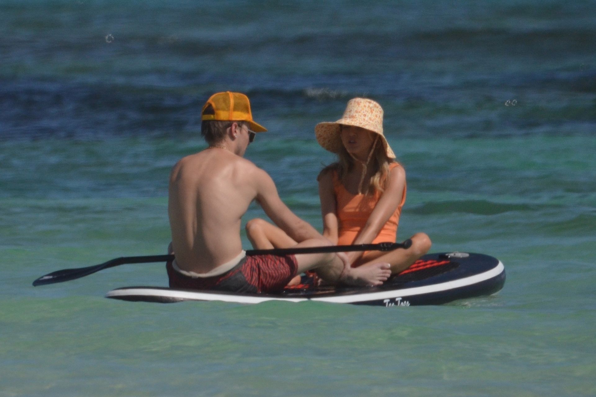 Anne Winters enjoys a vacation in Tulum with her boyfriend Taylor Beau, 01/27/2020. The duo are seen hopping on a paddleboard together as they enjoy the sand, surf, and sun.