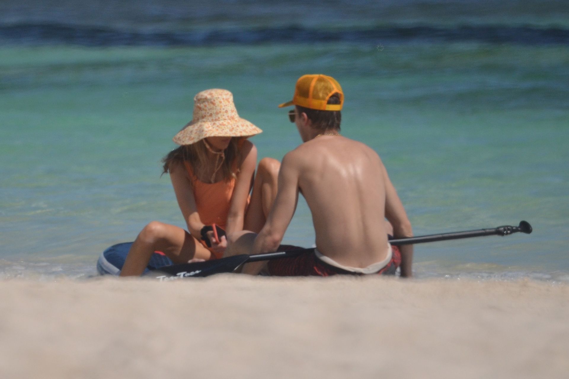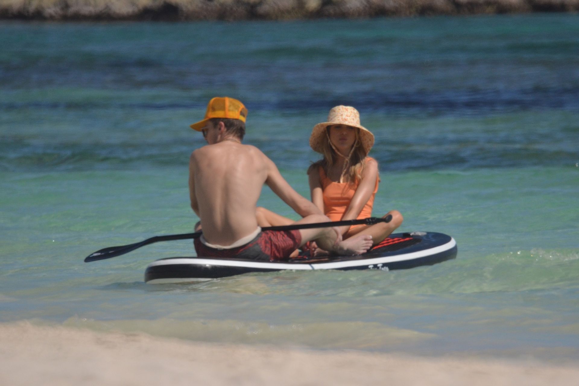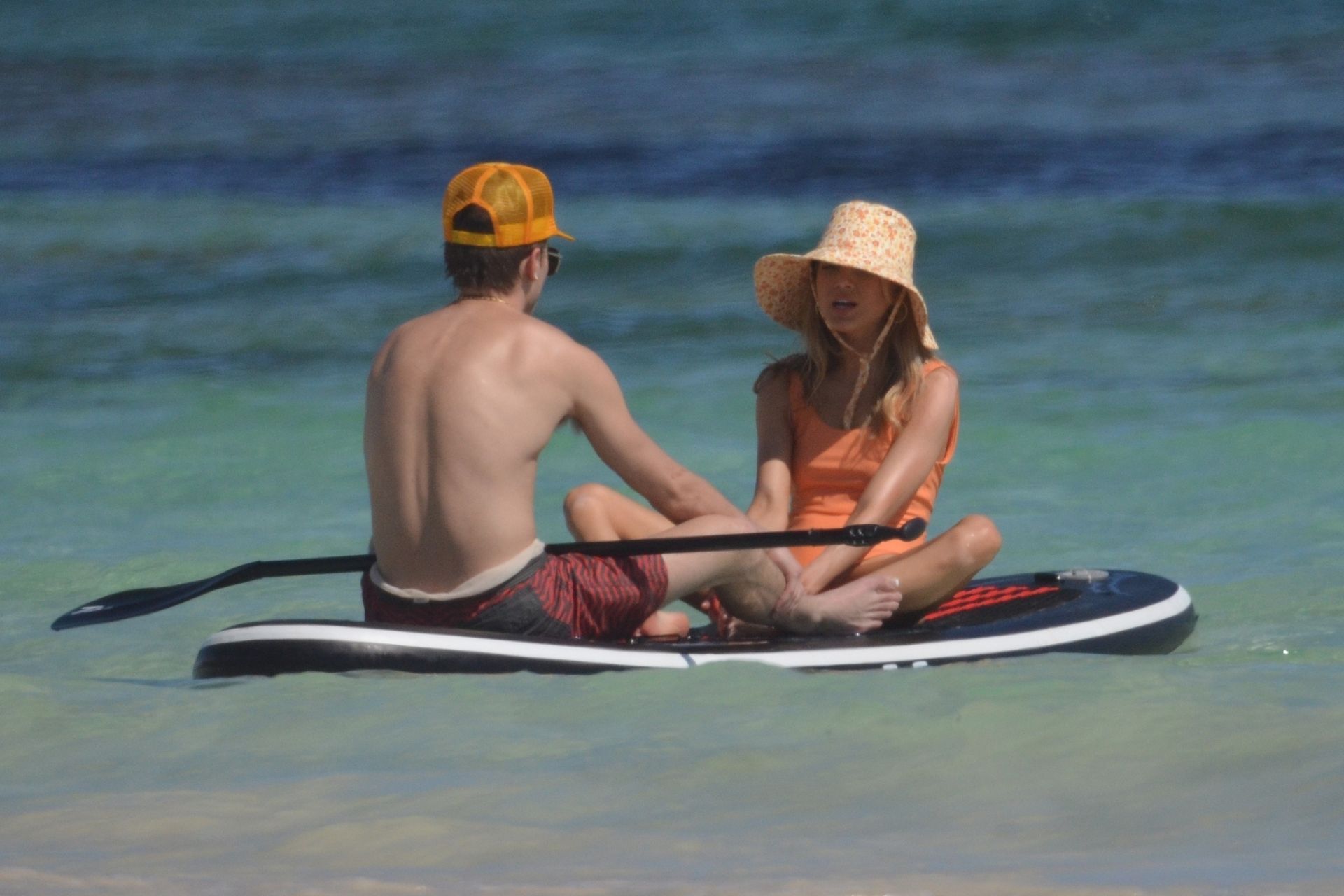 Anne Winters enjoys a vacation in Tulum with her boyfriend Taylor Beau, 01/27/2020. The duo are seen hopping on a paddleboard together as they enjoy the sand, surf, and sun.