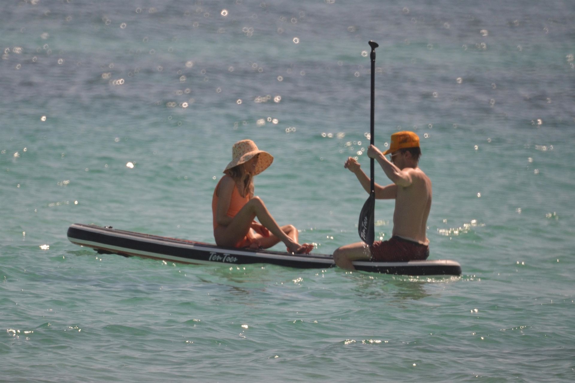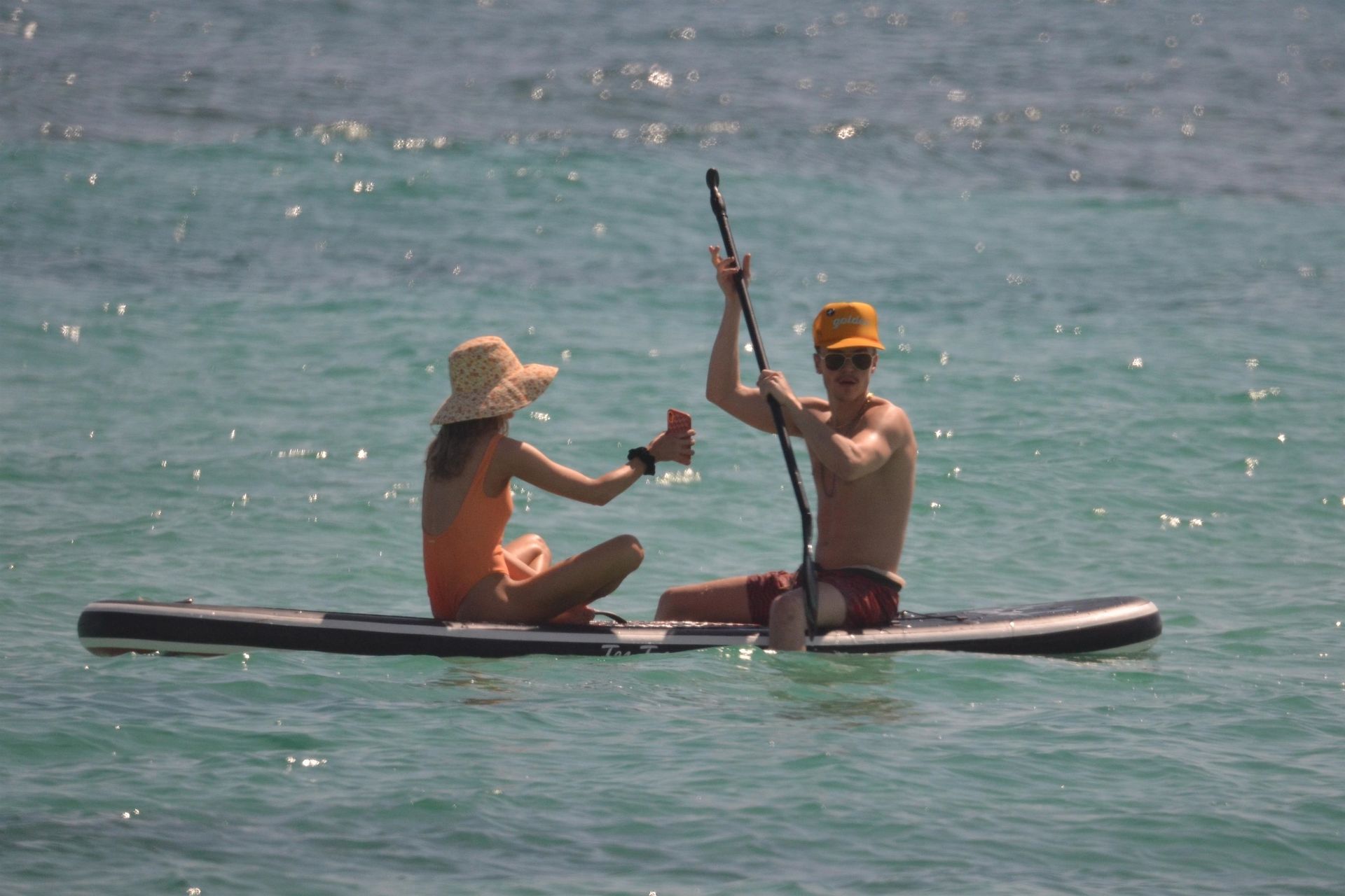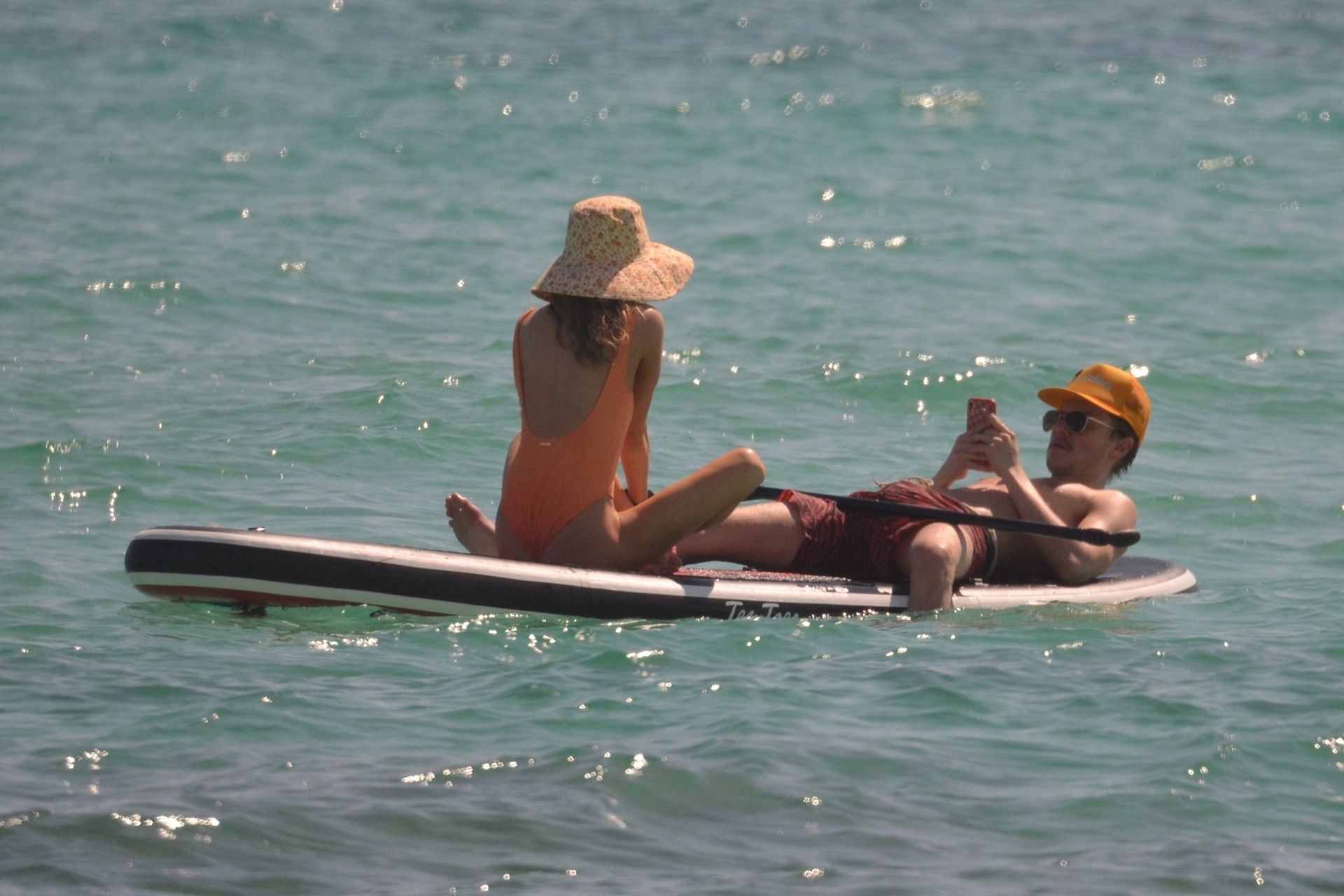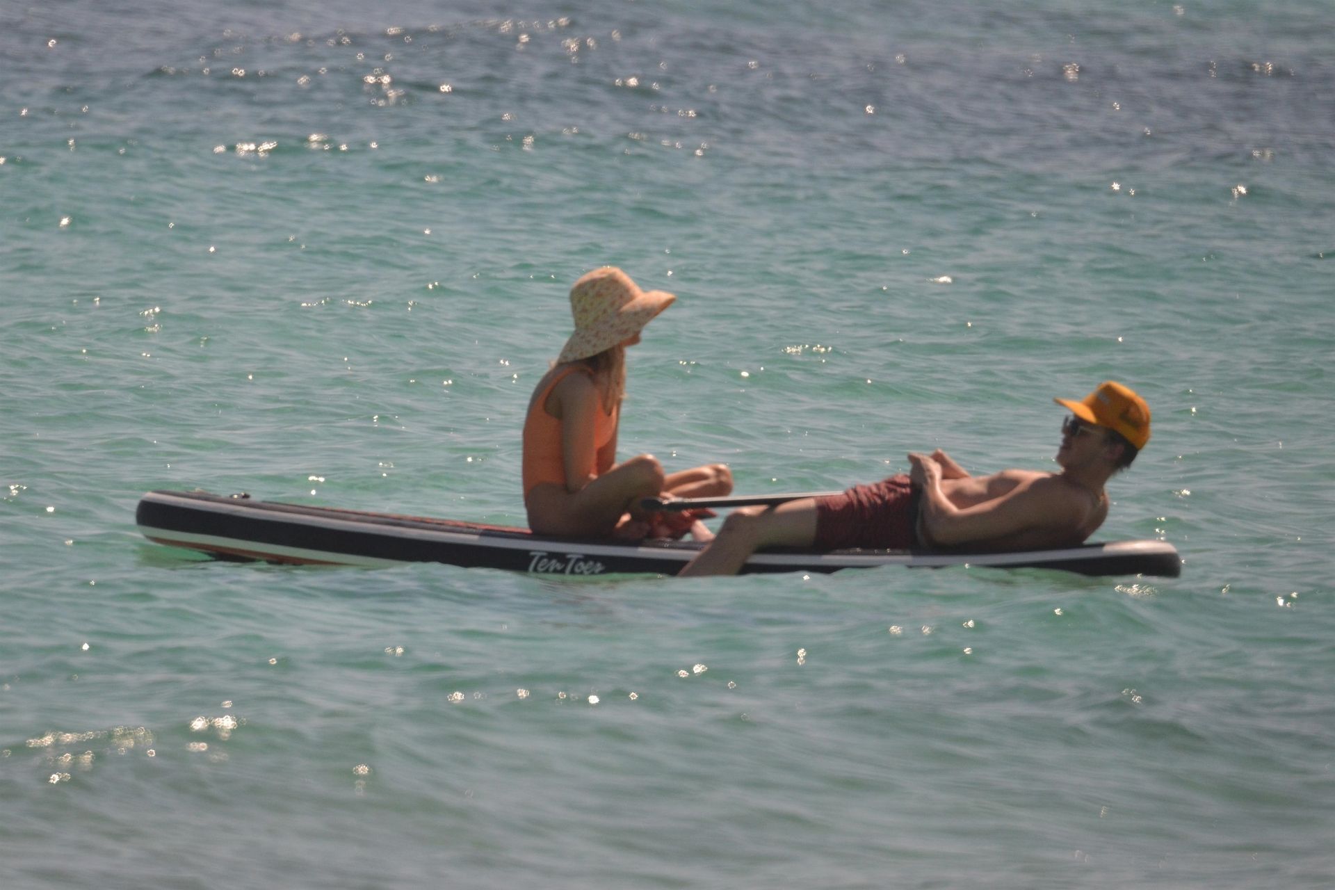 Anne Winters enjoys a vacation in Tulum with her boyfriend Taylor Beau, 01/27/2020. The duo are seen hopping on a paddleboard together as they enjoy the sand, surf, and sun.