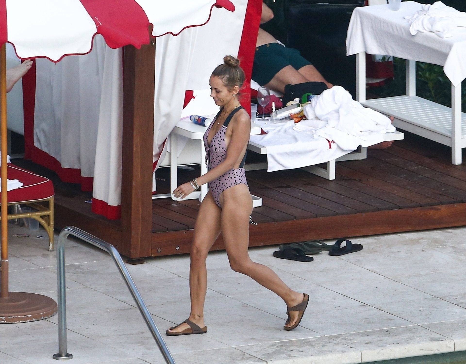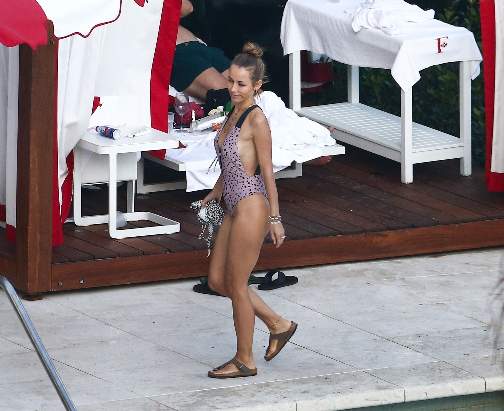 Fit German television presenter Annemarie Carpendale and her actor husband Wayne Carpendale enjoy their holidays at the hotel pool in Miami Beach, 01/03/2020.