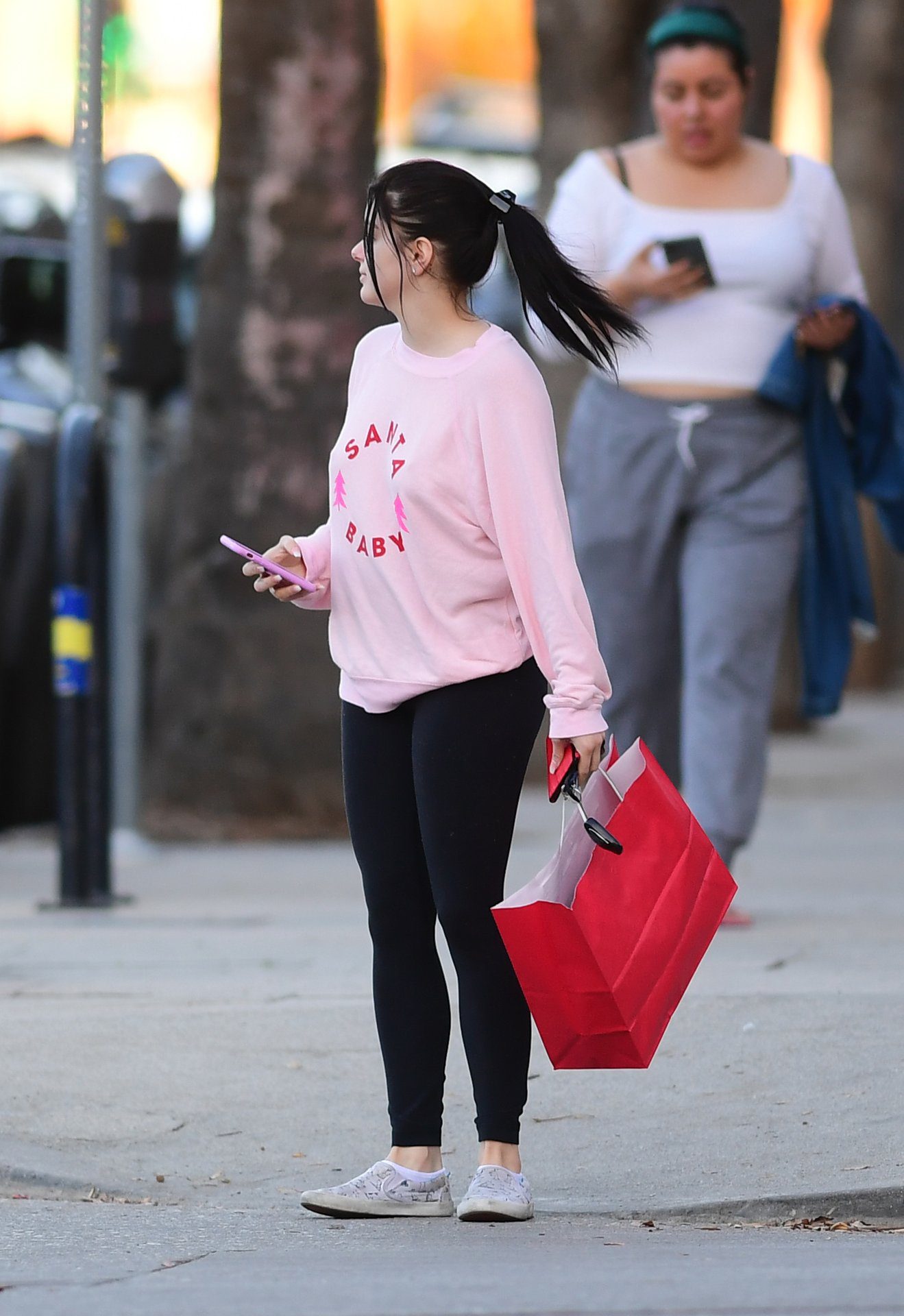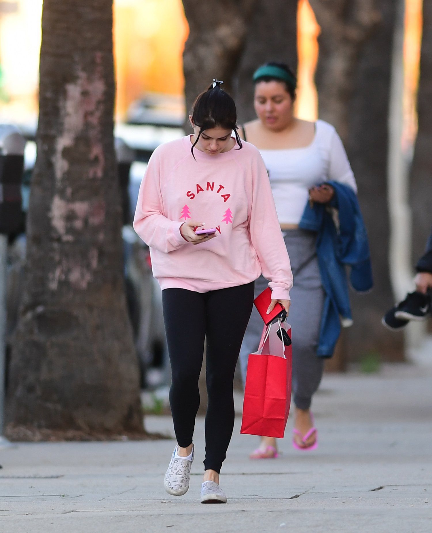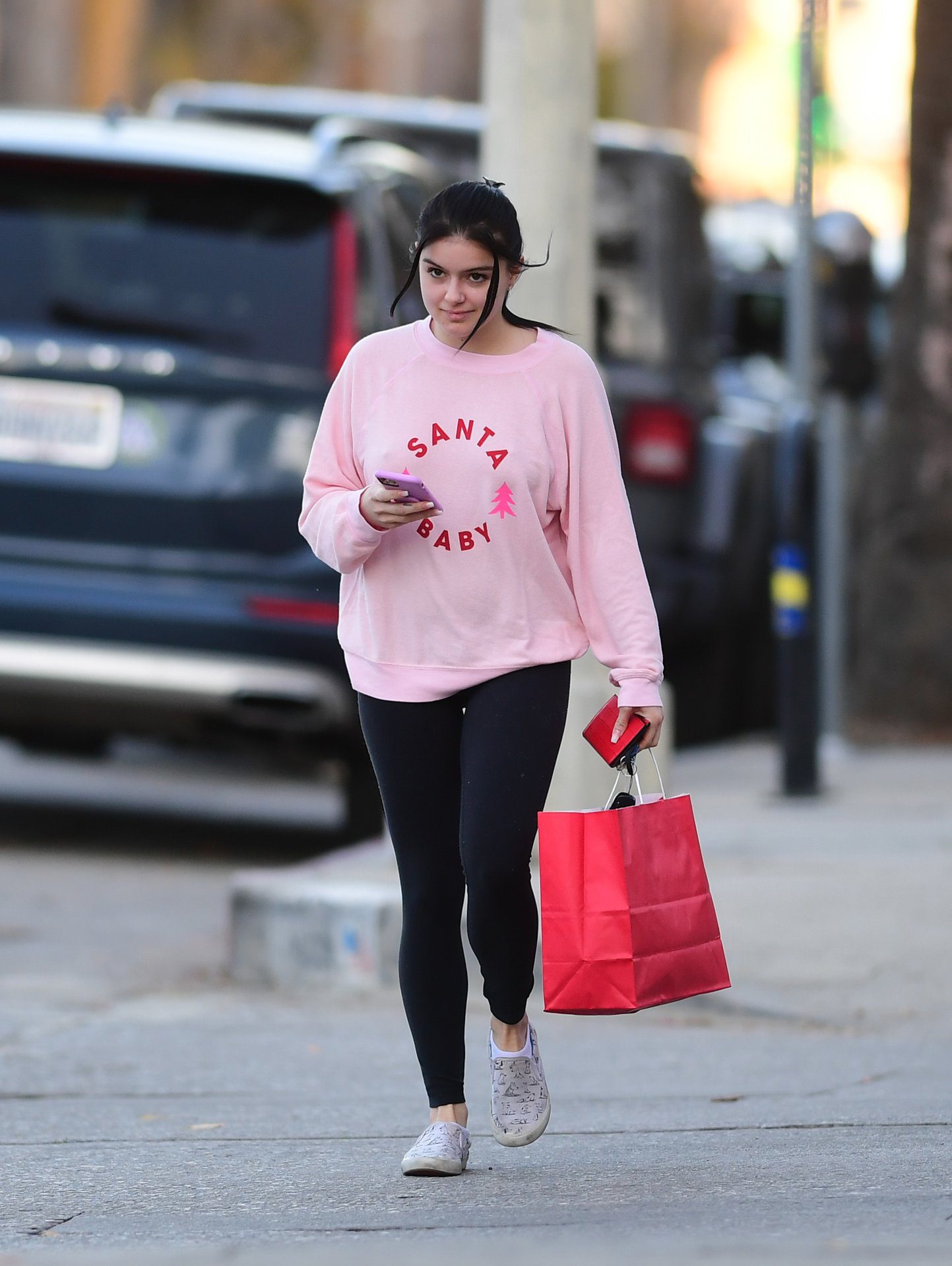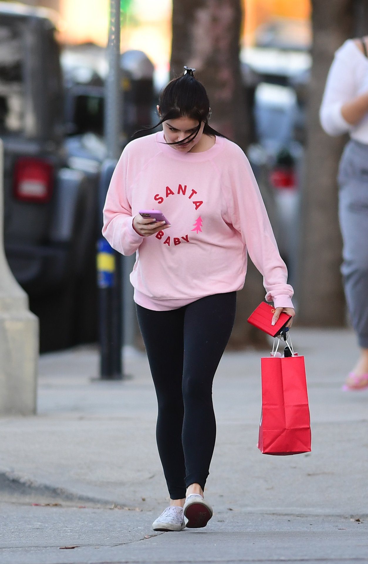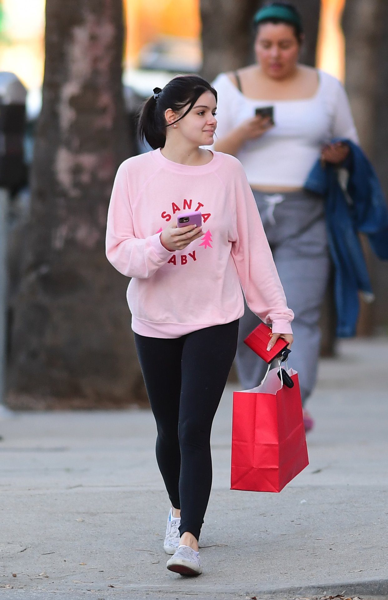 Ariel Winter was pictured out shopping in Los Angeles, 12/18/2019. The 21-year-old “Modern Family” actress sported a pink “Santa Baby” sweatshirt, black leggings, and Bucketfeet shoes.