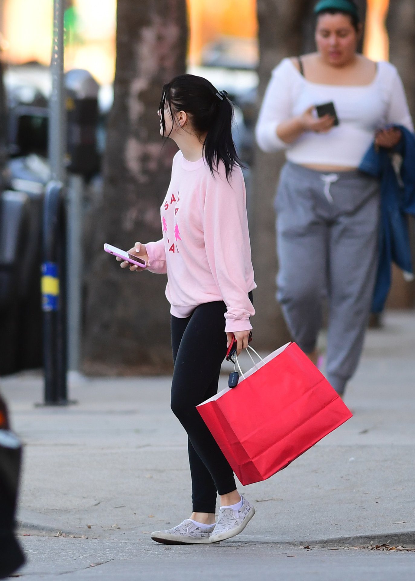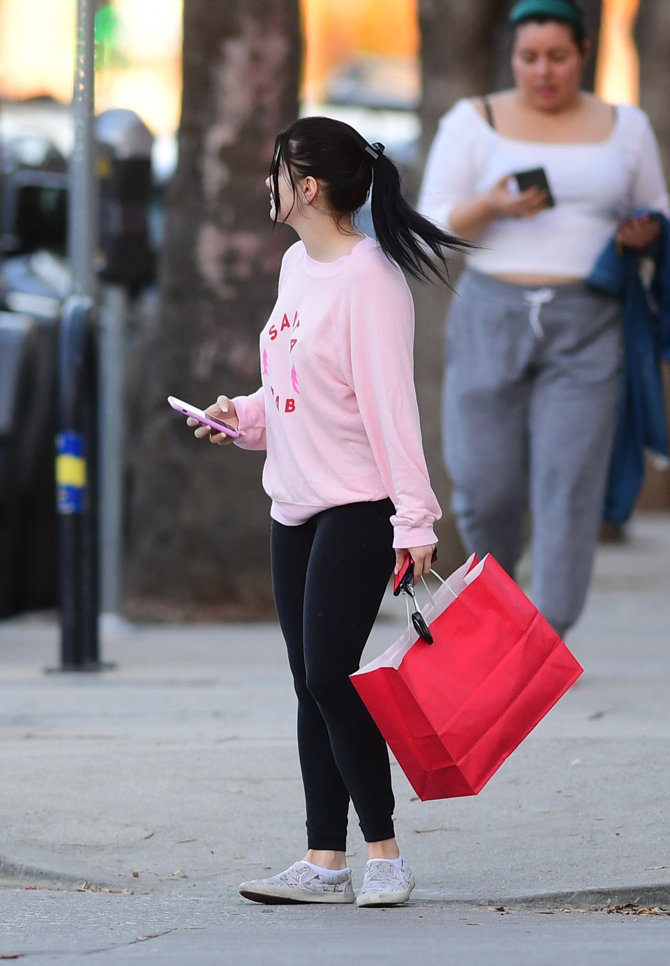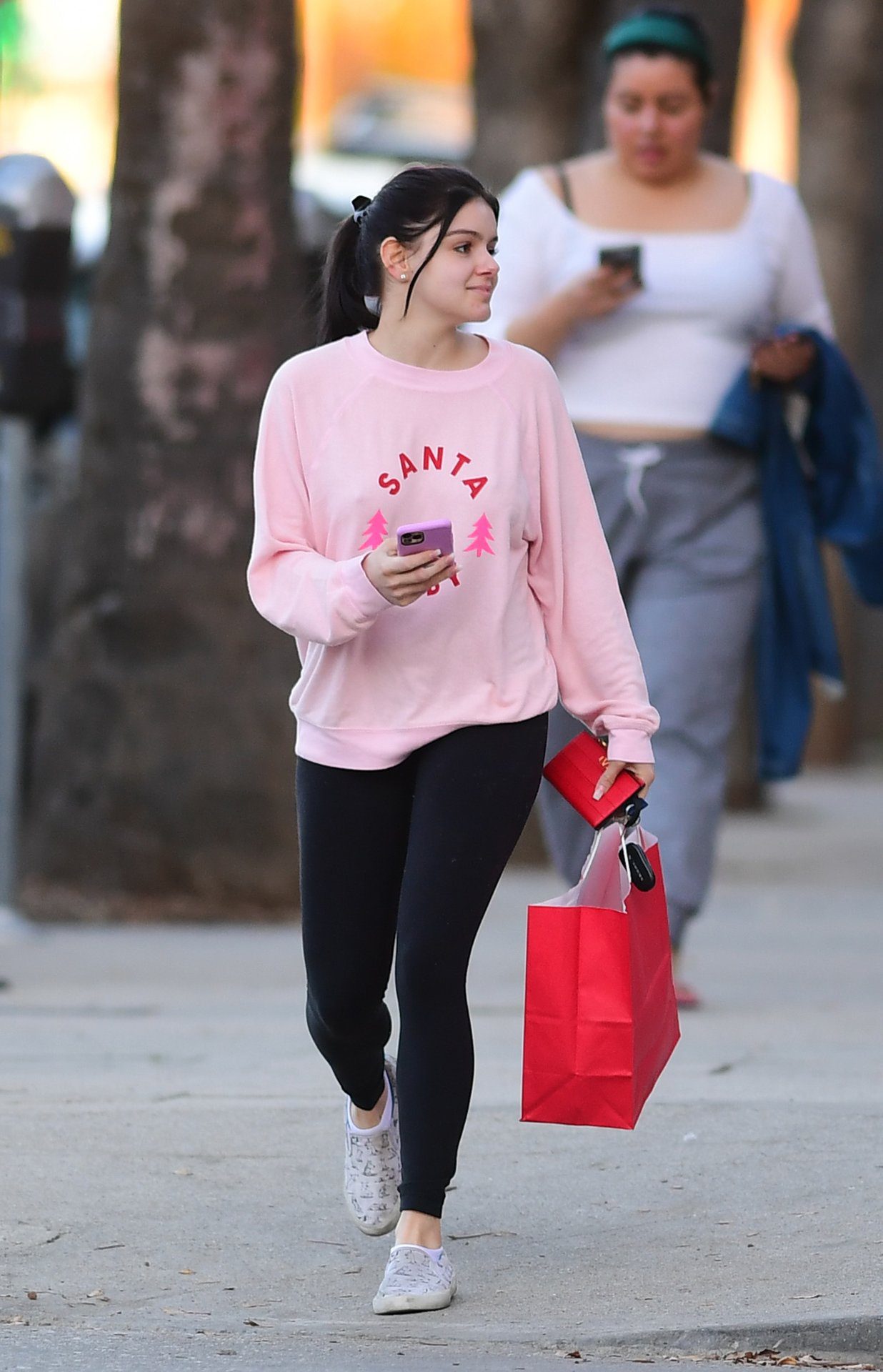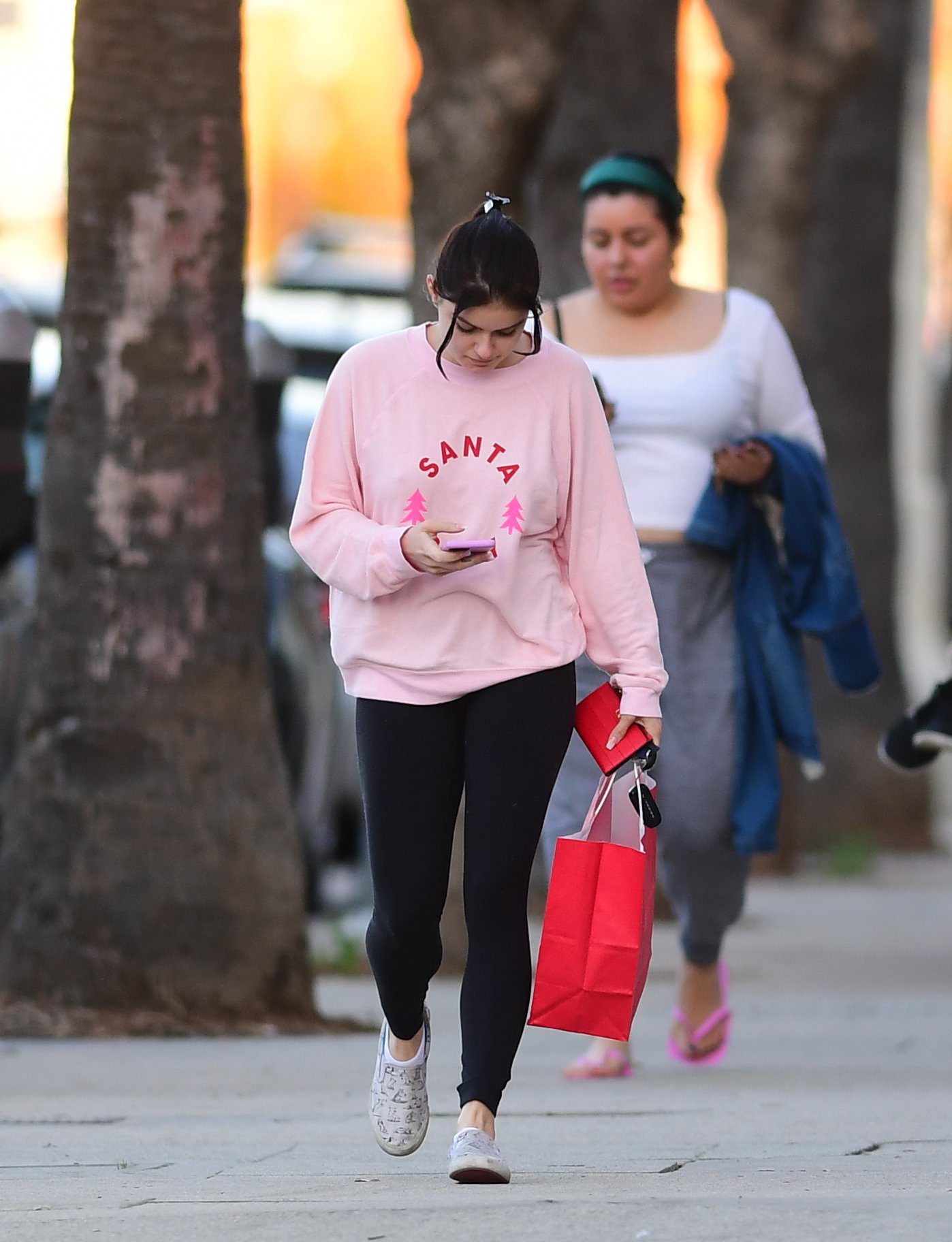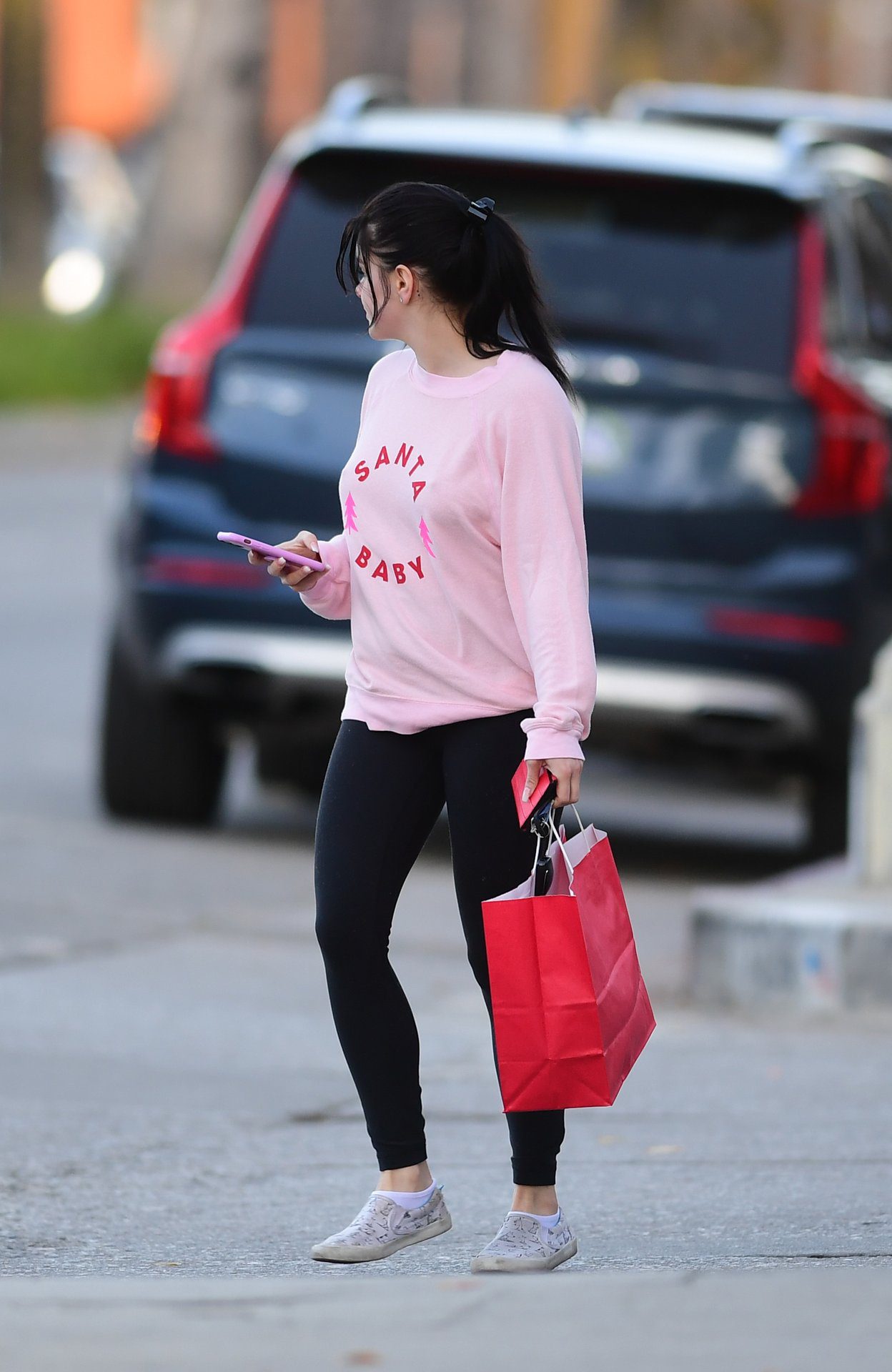 Ariel Winter was pictured out shopping in Los Angeles, 12/18/2019. The 21-year-old “Modern Family” actress sported a pink “Santa Baby” sweatshirt, black leggings, and Bucketfeet shoes.
