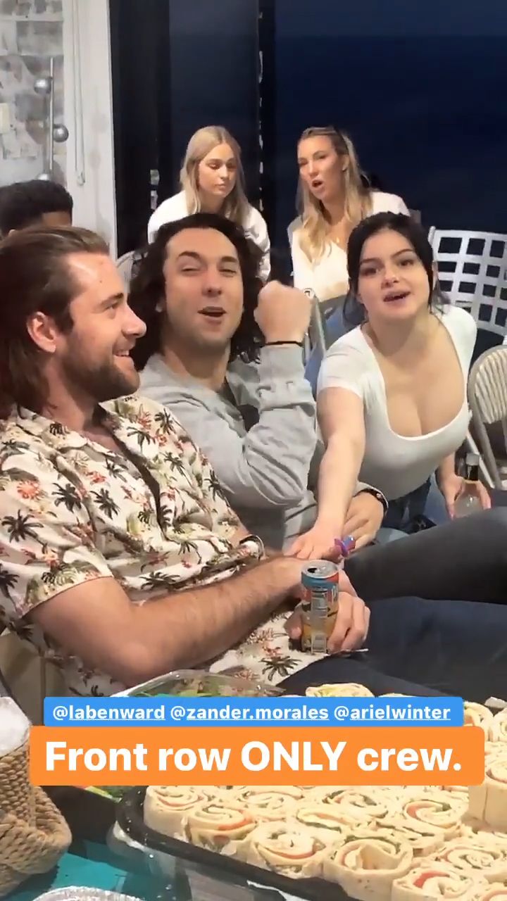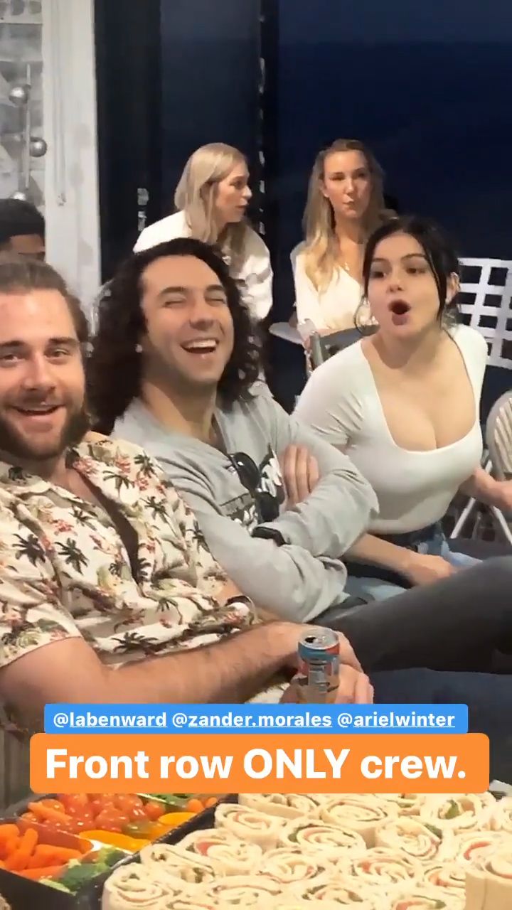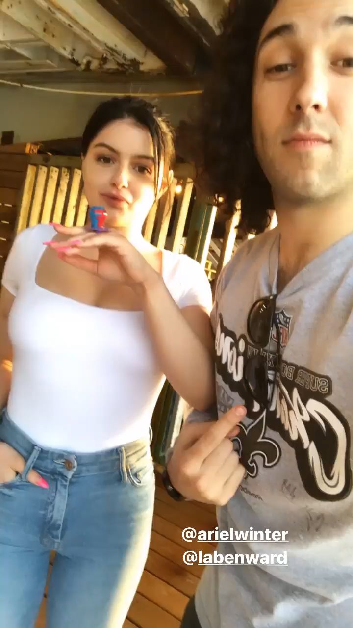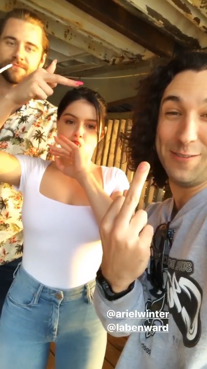 Actress Ariel Winter showed her deep cleavage and pokies in a white T-shirt partying with friends – Instagram, 02/01/2020.