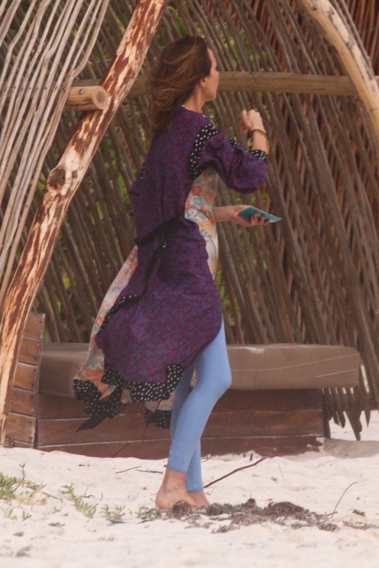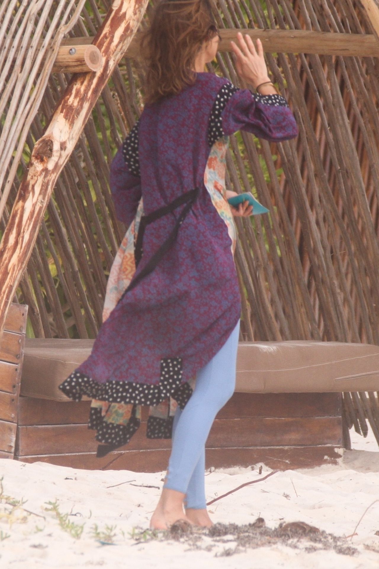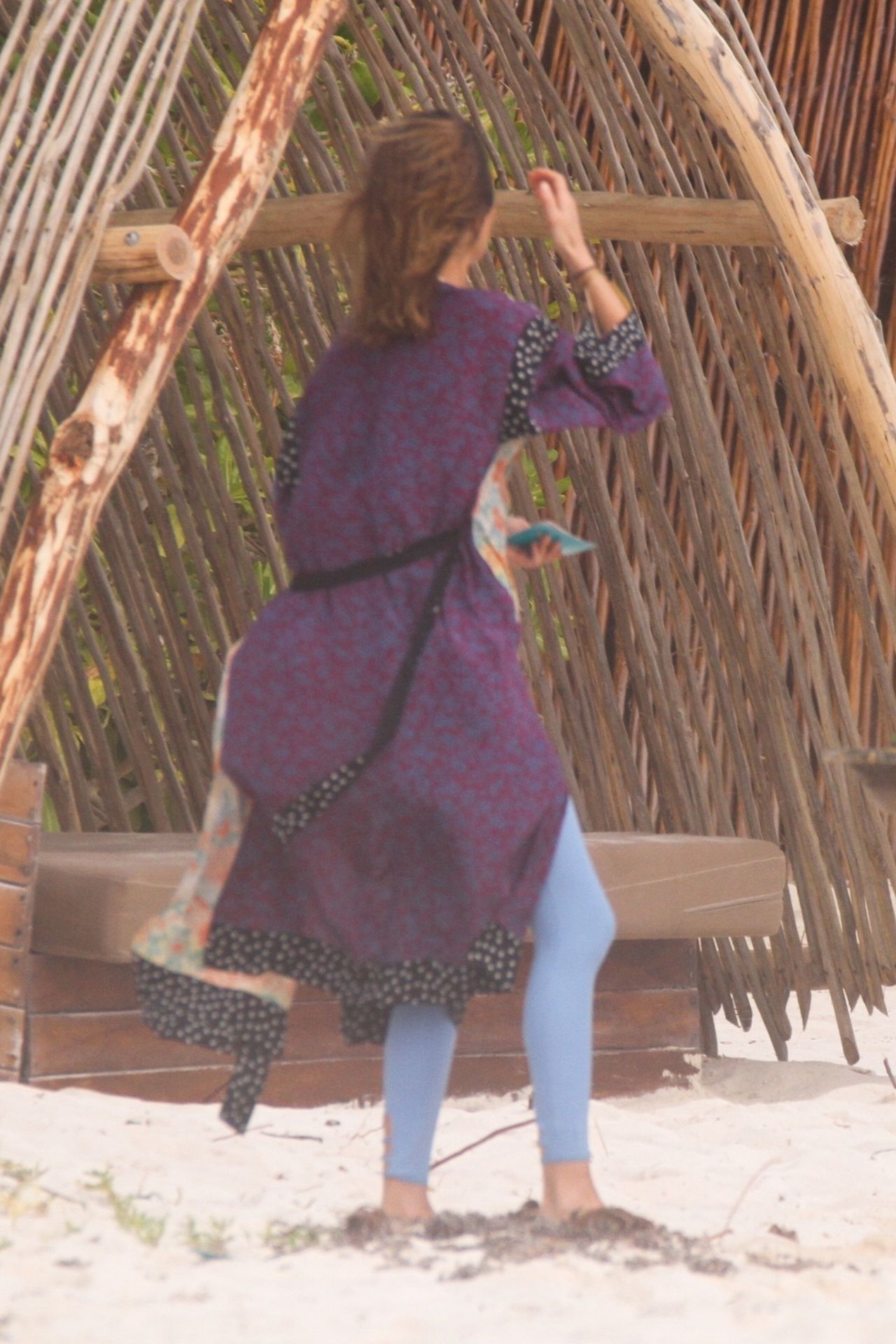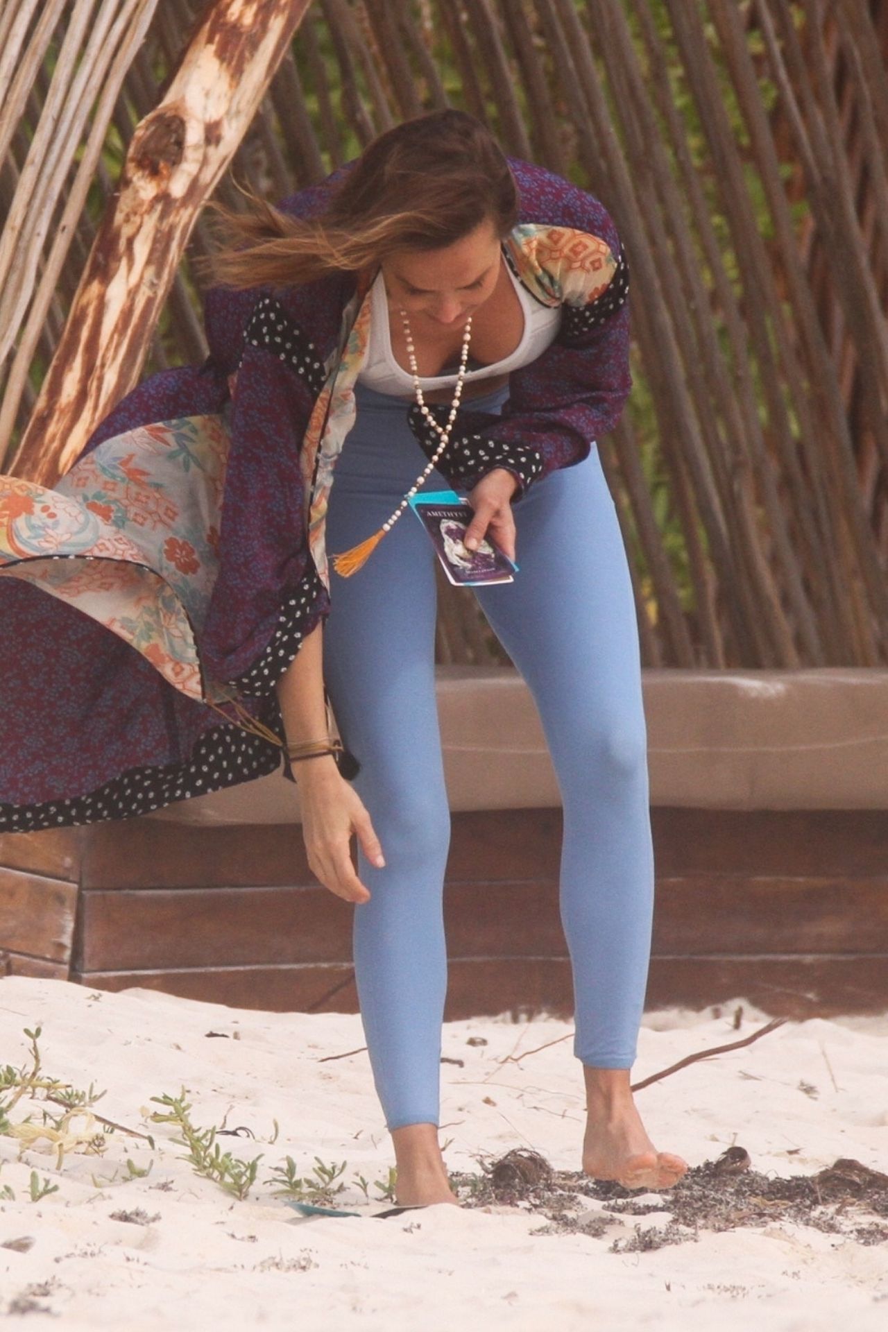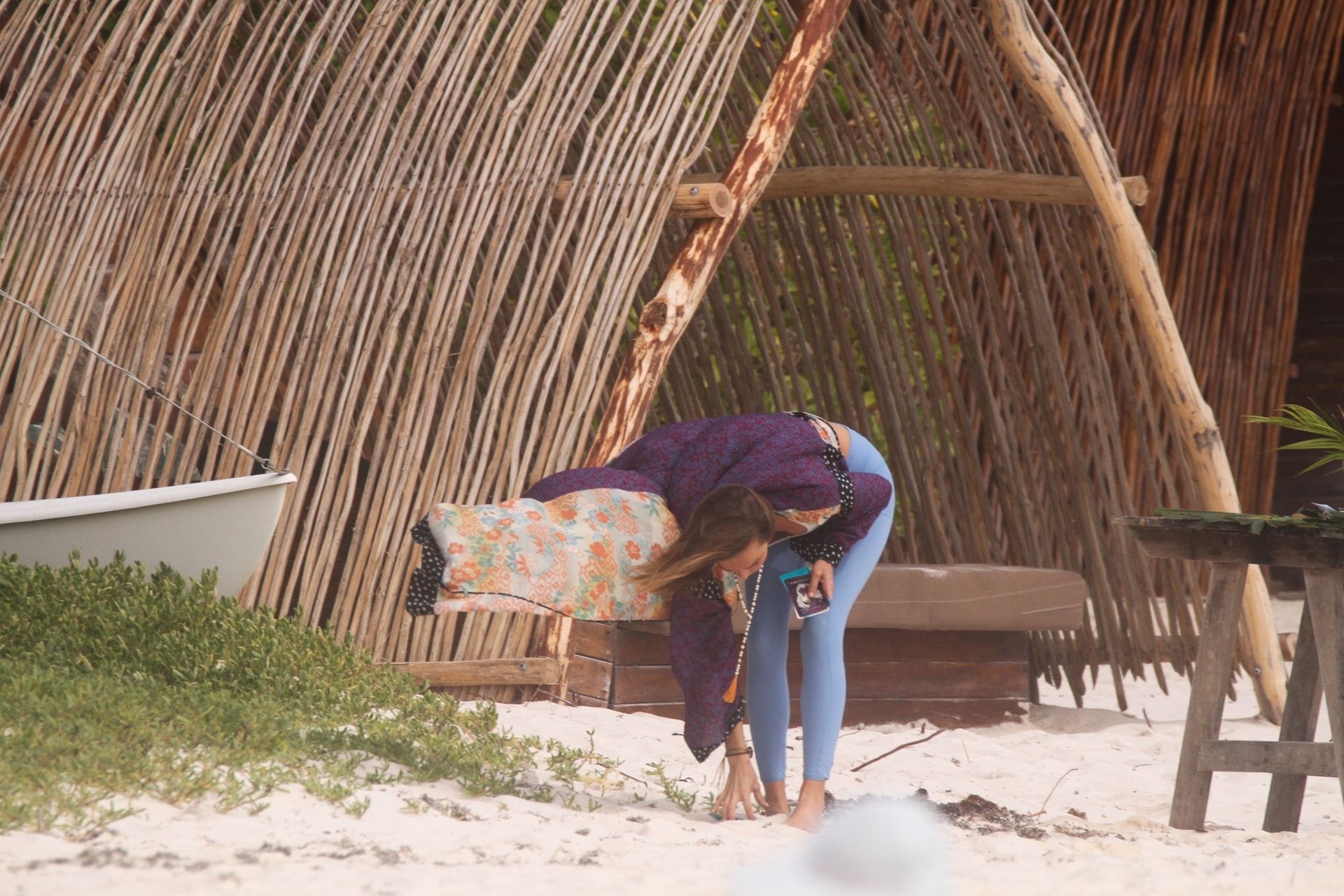 Actress Arielle Kebbel is making the most of her Tulum vacation with an afternoon on the beach with a Clairvoyant, 02/19/2020. Arielle focuses on her mediation as she stands ten toes in the sand.