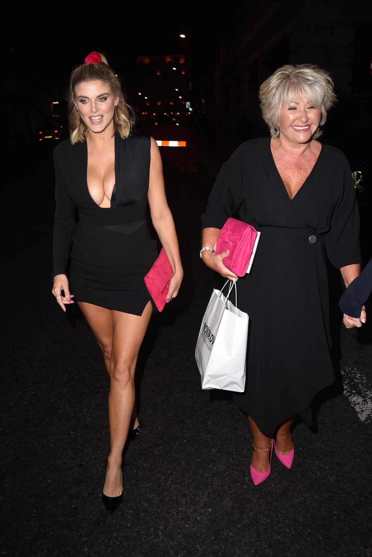 Busty Ashley James departs Novikov Restaraunt in London Mayfair with former Greater Manchester Police detective Maggie Oliver, 06/27/2019.