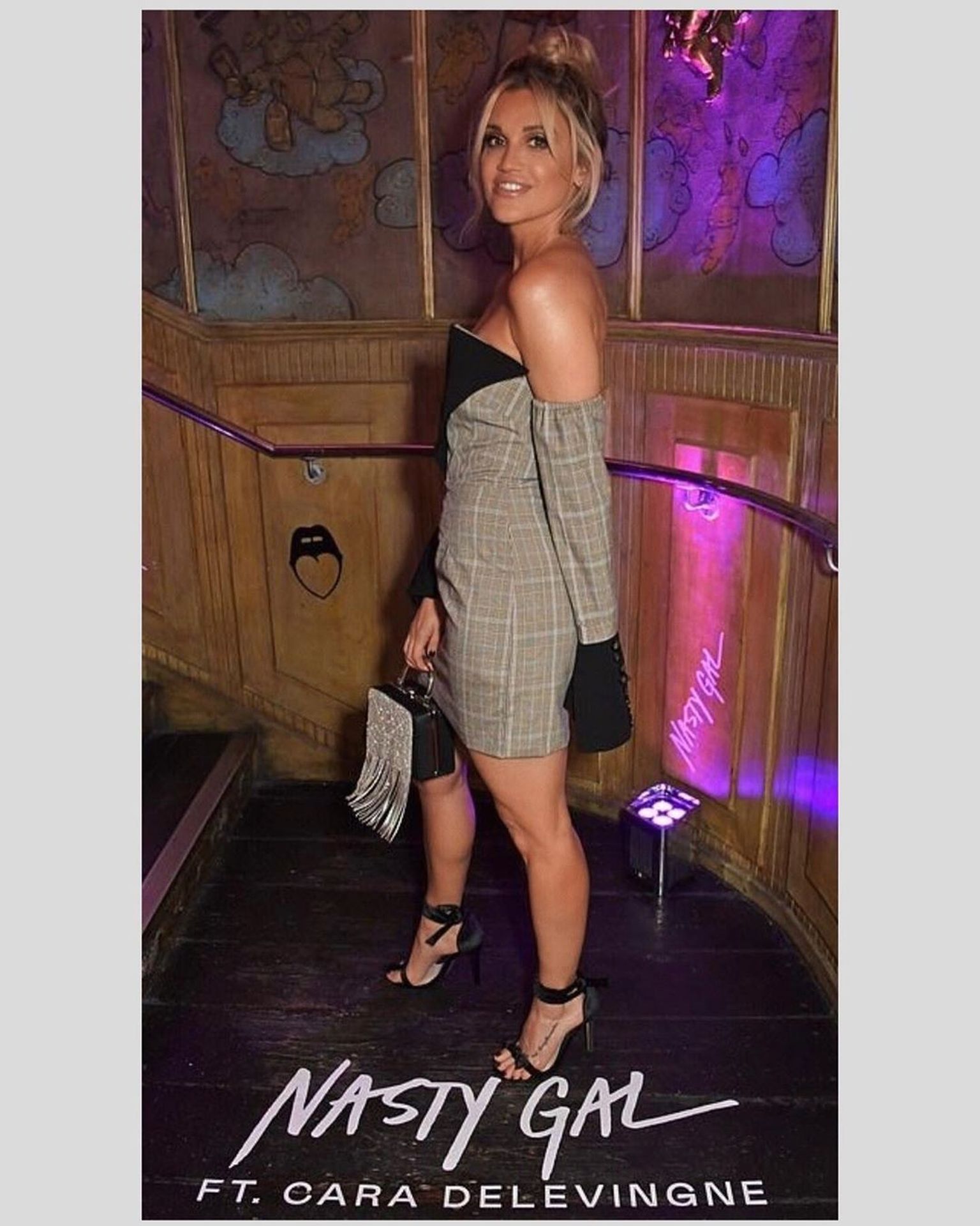 Busty and leggy Ashley Roberts was seen leaving Cara Delevingne x Nasty Gal launch party at The Box club in Soho, London, 10/22/2019.