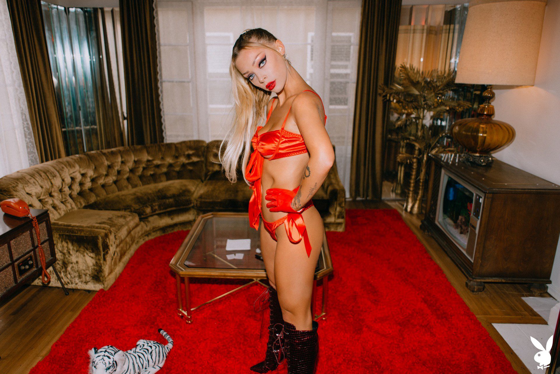Aubrey Destemps lets all her fans and followers know her long-lasting love for Playboy in this brand new pictorial from the photographer, Tina Louise. Aubrey brings together her two professions: modeling and tattooing on set of a chic home in Los Angeles, California. “I have a lot of hidden talent s,” laughs Aubrey. Dressed in all red, Aubrey takes us on a journey as she sketches a Playboy Bunny tattoo stencil and pastes it to her ankle. “My passion is creating a positive impact on the people around me. I’m very expressive of my feelings. I think that’s what makes me the great artist I am,” says Aubrey of her character. “As a tattoo artist, it is the most rewarding feeling making someone feel good about themselves.” For Aubrey, joining the Playboy community is special. “It’s an iconic brand, and to be a part of it is an honor to me, especially in these changing times of female empowerment and awakening,” she shares thoughtfully. “Female empowerment is whatever makes a female feel good about herself. [It] isn’t nudity, or modesty, or anywhere in the middle. It’s different for everyone.” Make sure to check out more from Aubrey Destremps right here on Playboy Plus.