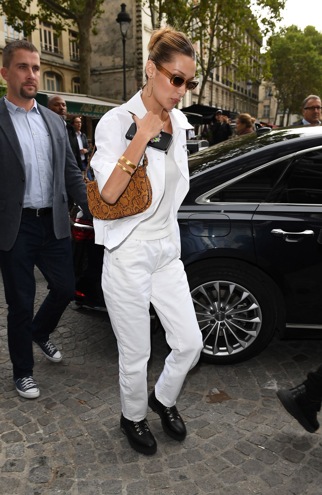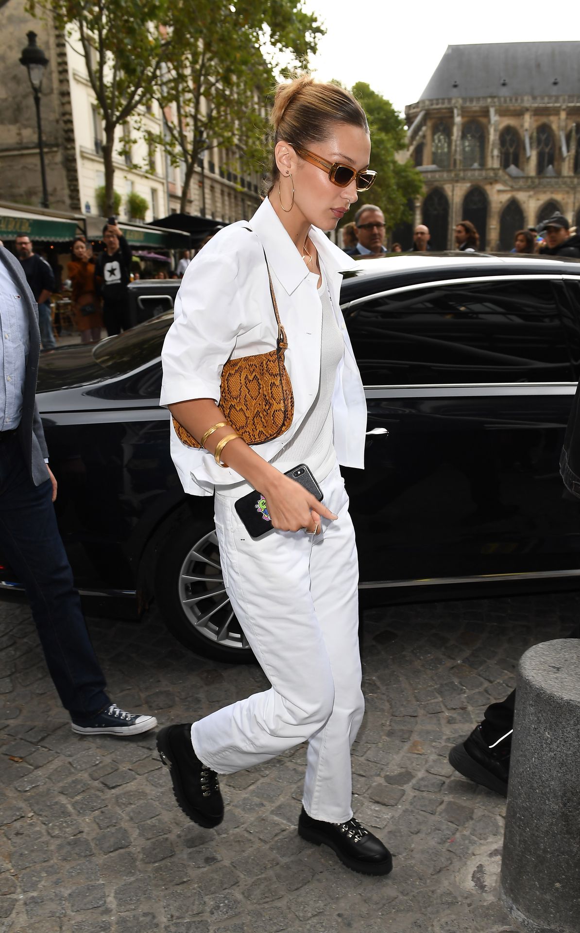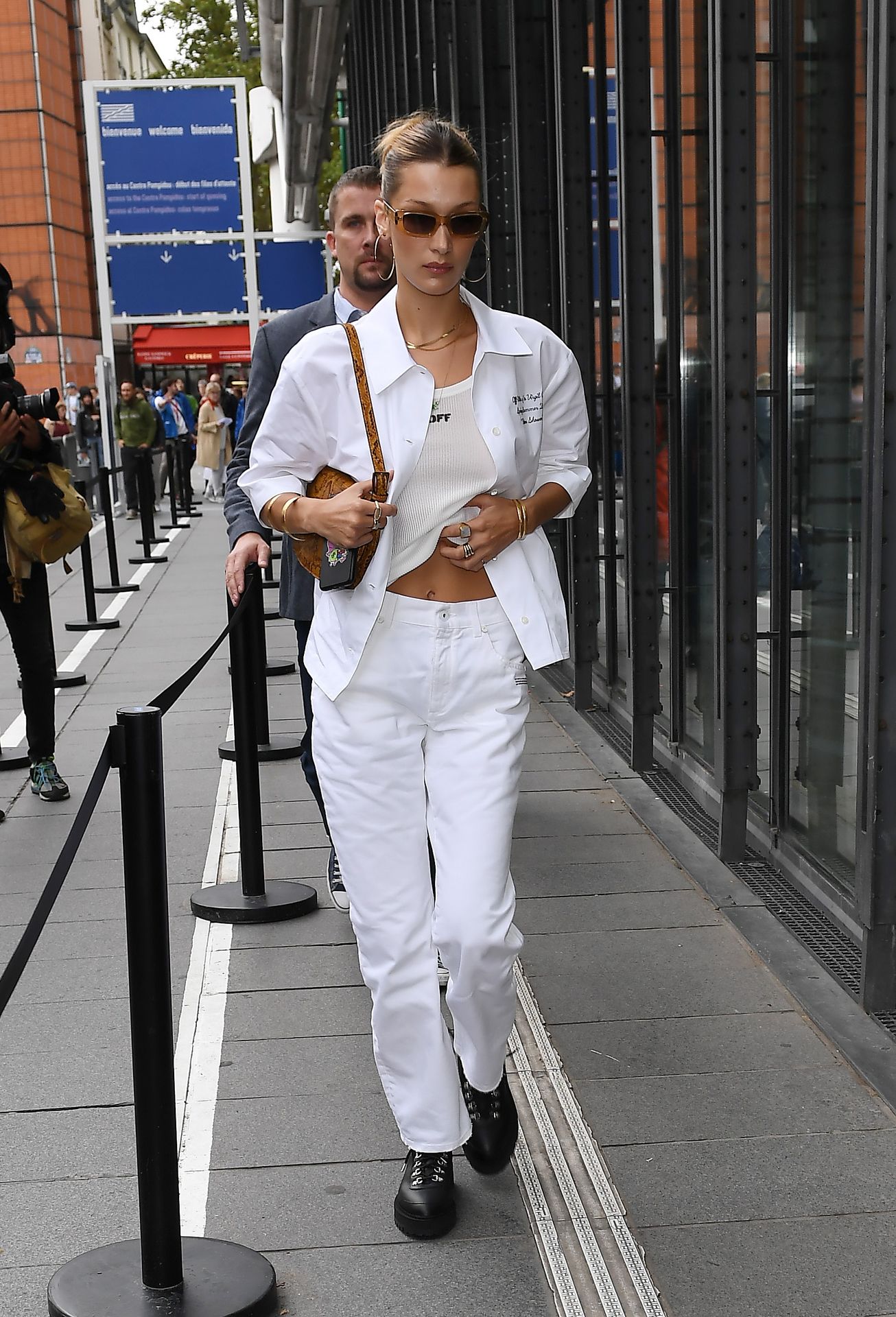 Bella Hadid was seen leaving their hotel Le Royal Monceau, dressed in Off-White on the occasion of the brand’s fashion show, during Paris Fashion Week, 09/26/2019.