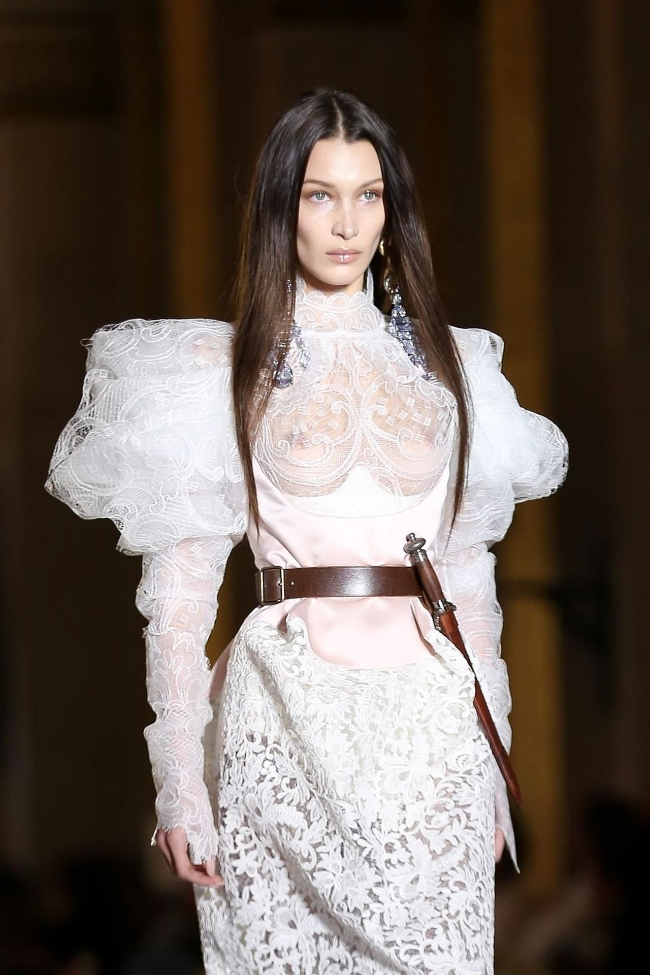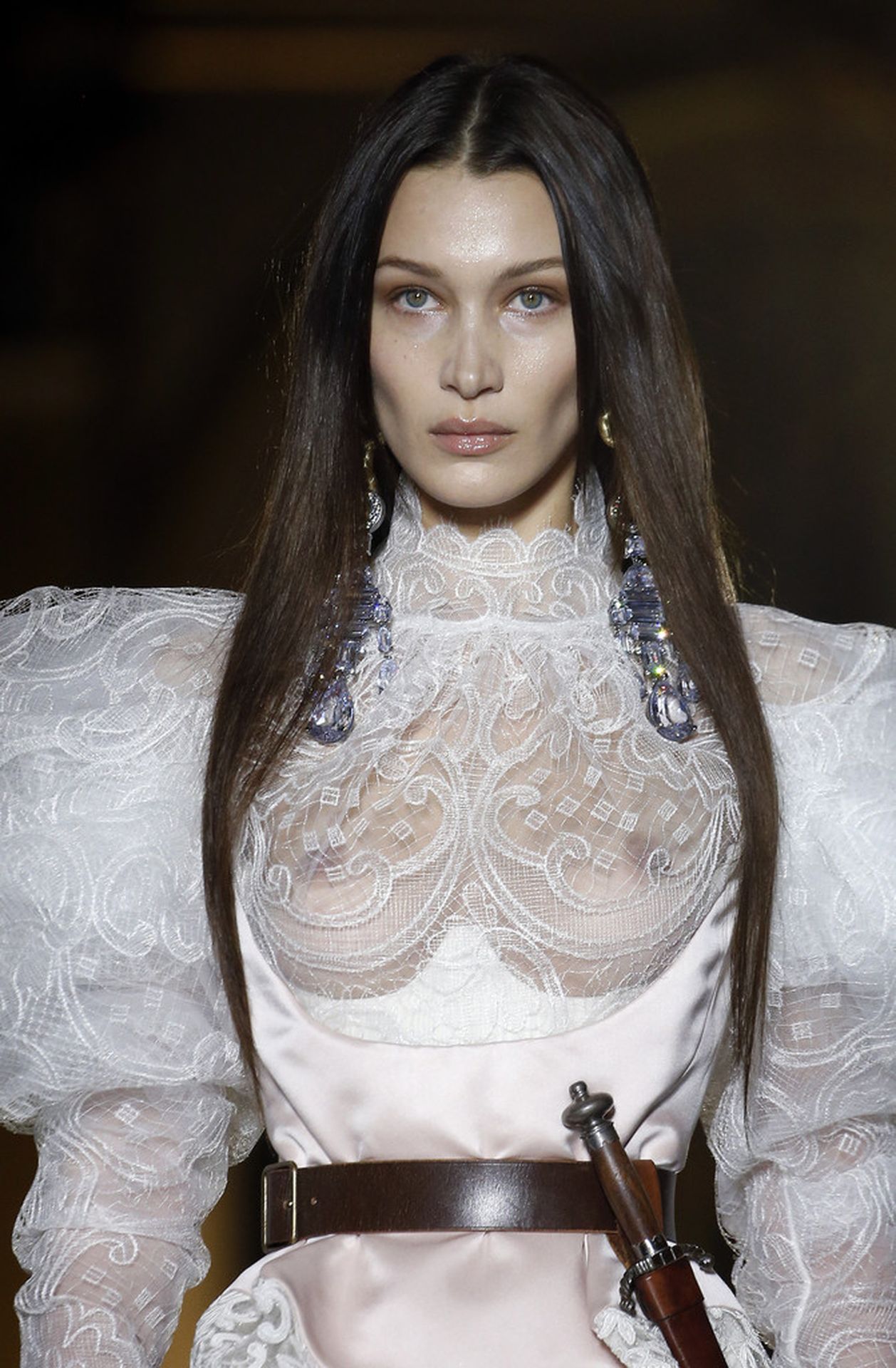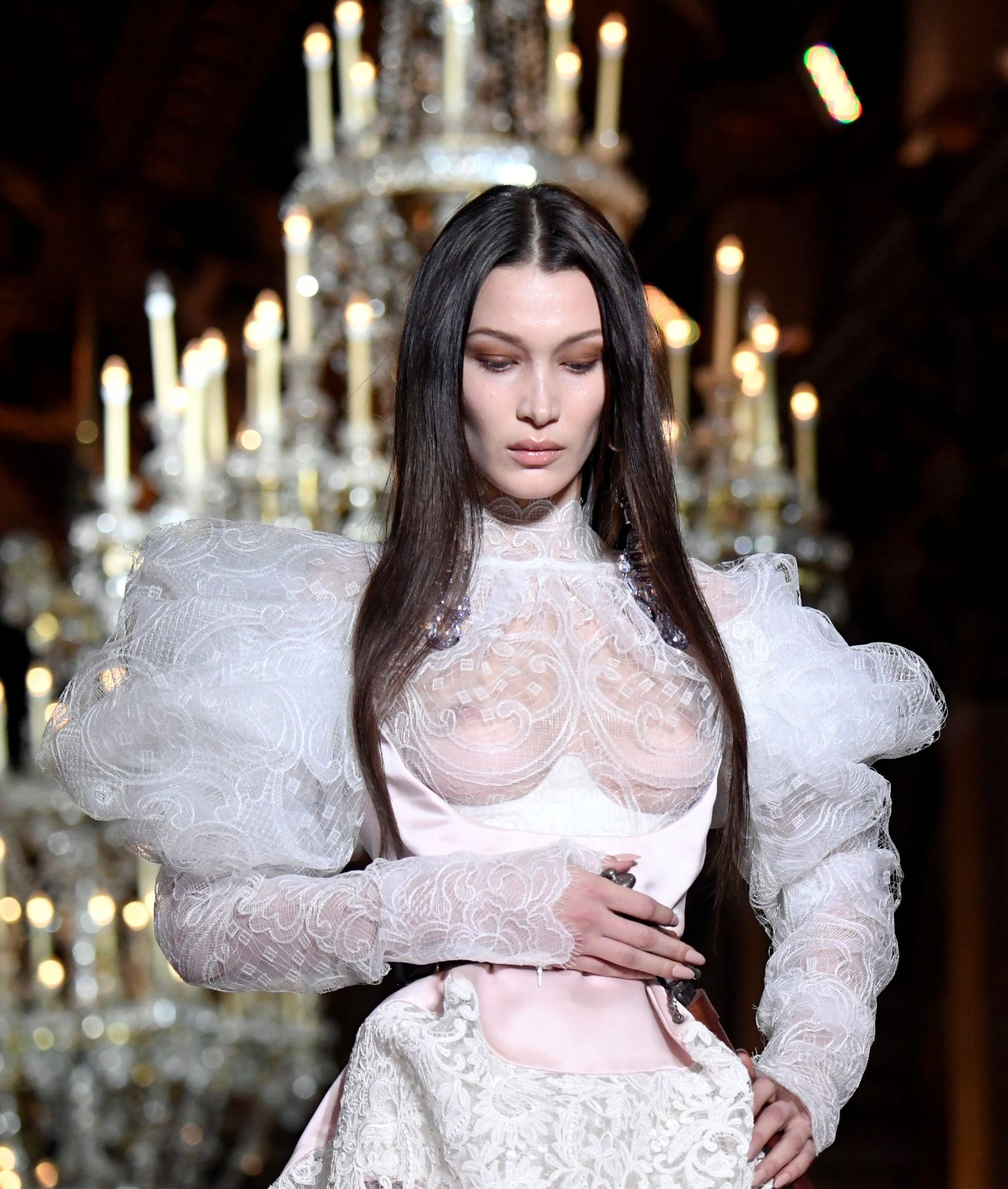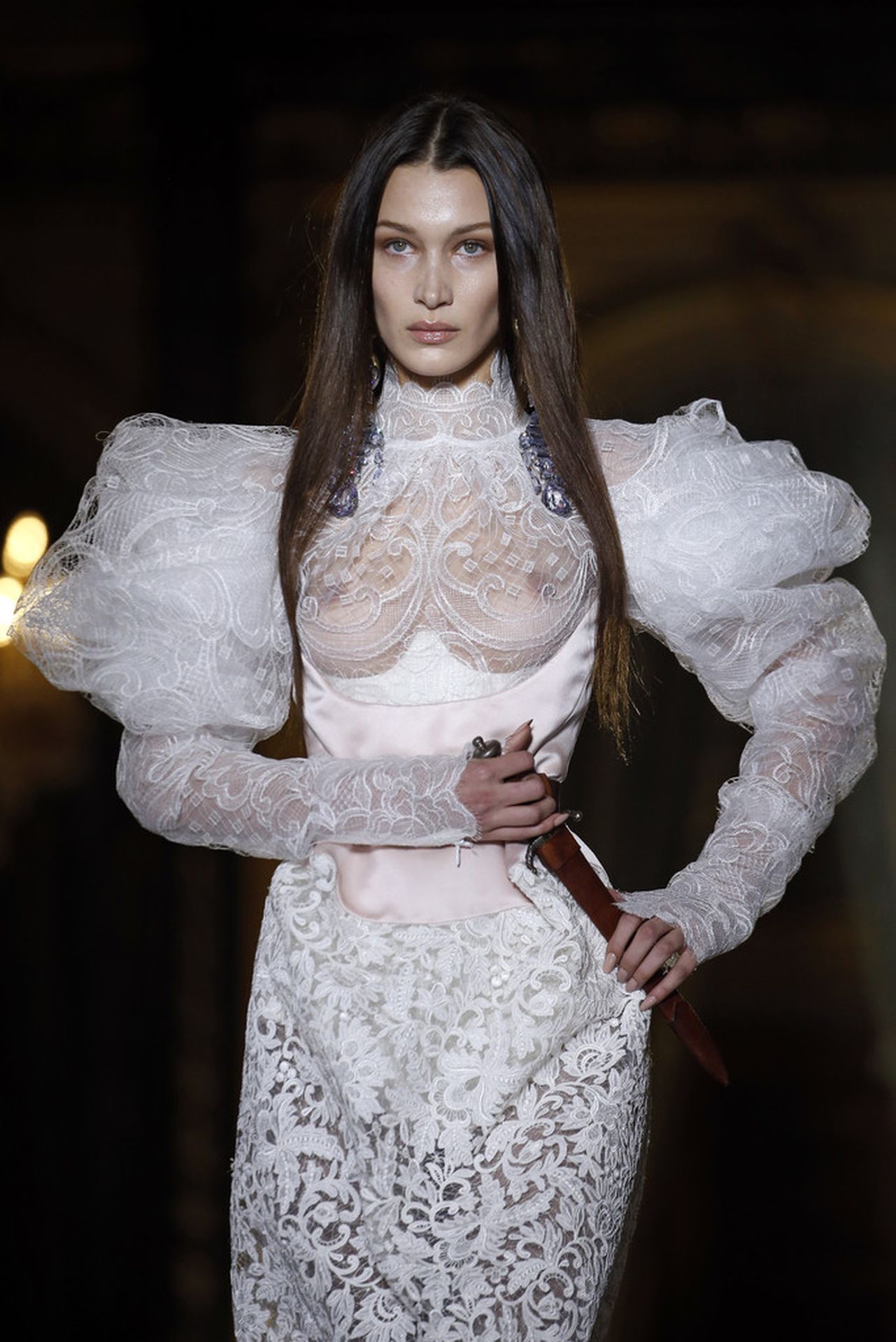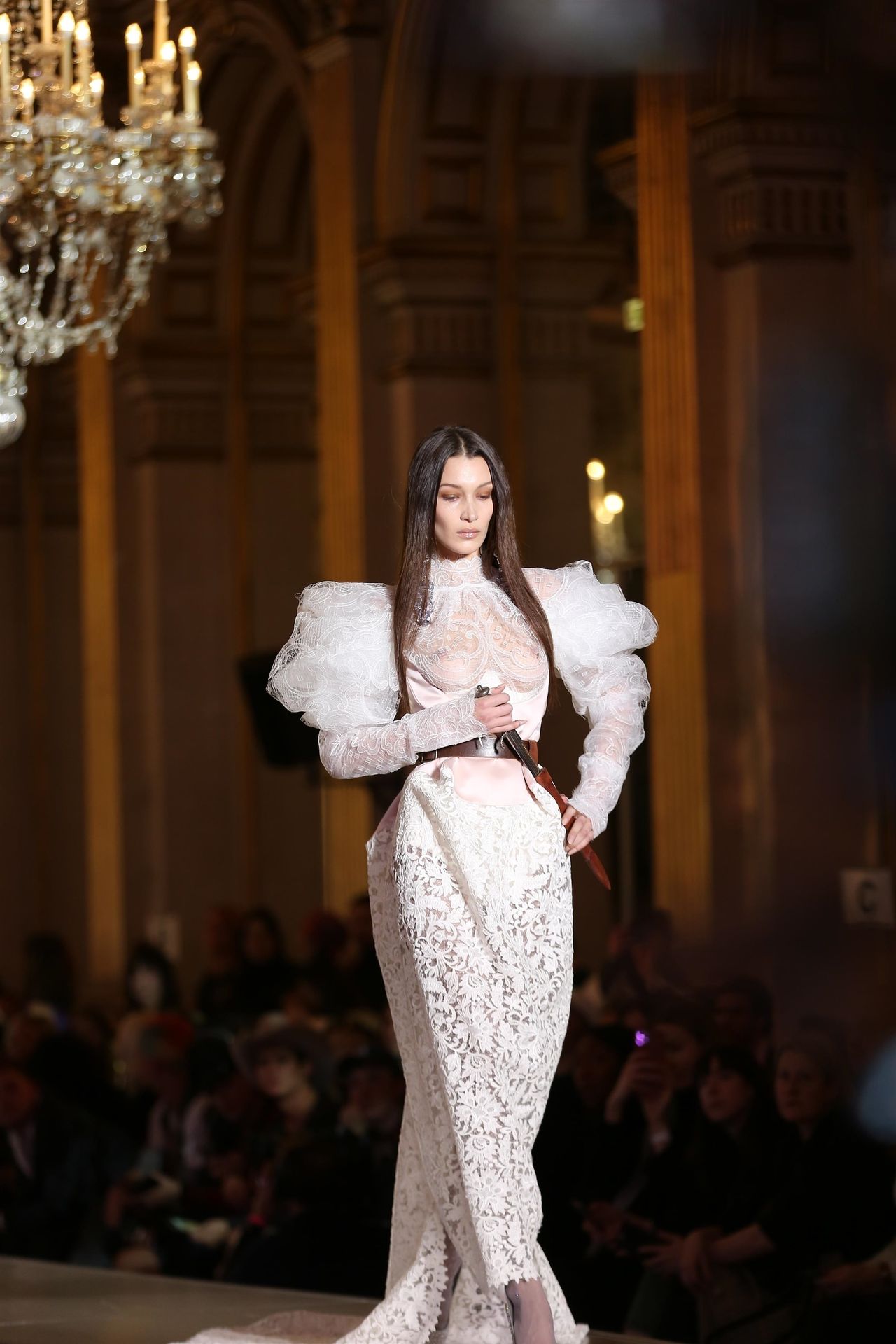 Model Bella Hadid was pictured braless walking the catwalk at the Vivienne Westwood fashion show during Paris Fashion Week, 02/29/2020. Bella will cut off your balls if you look at her tits!