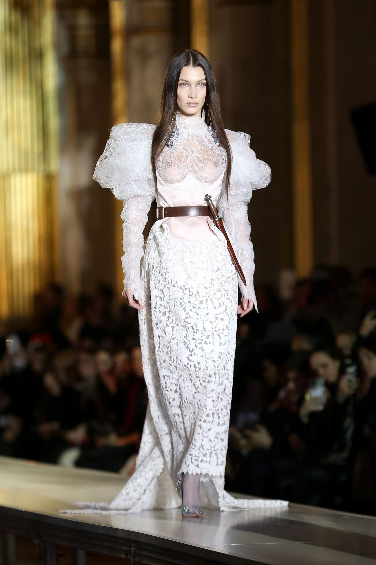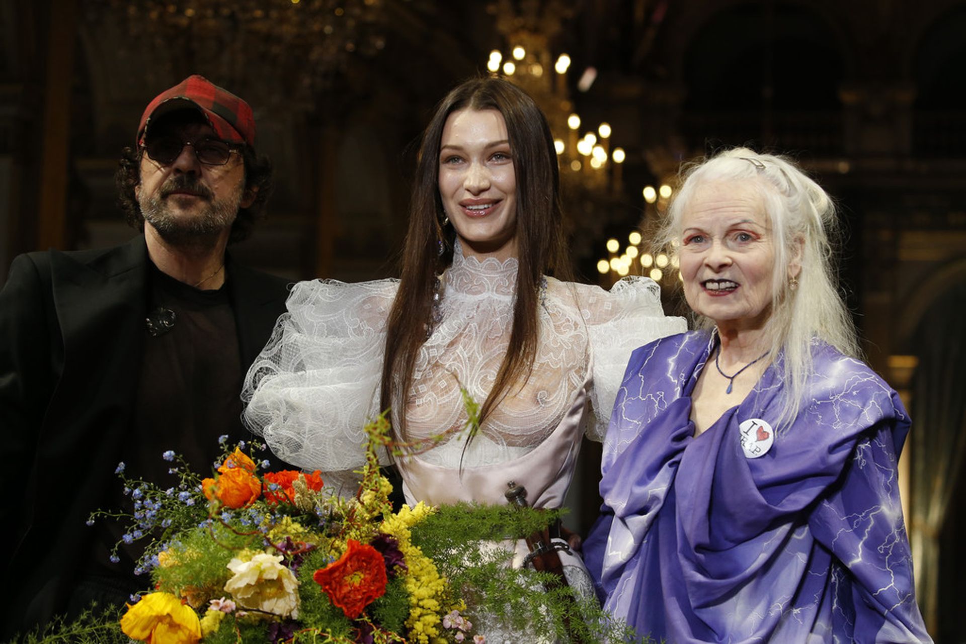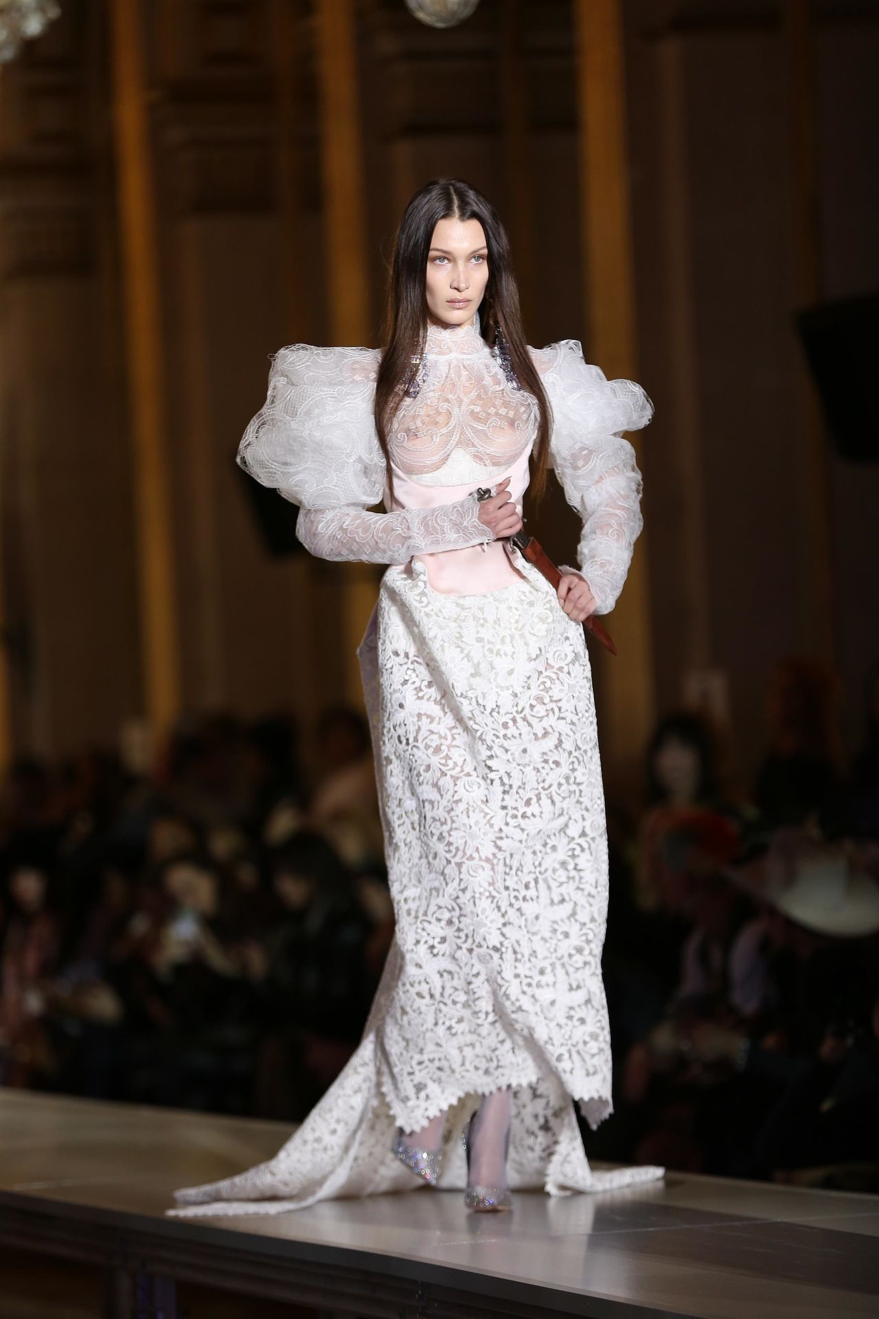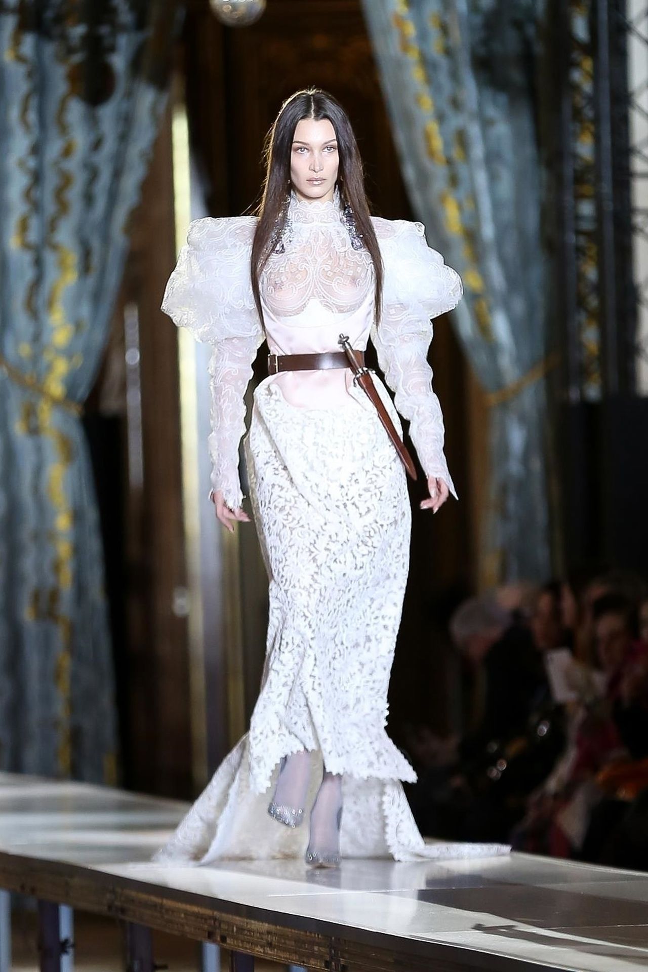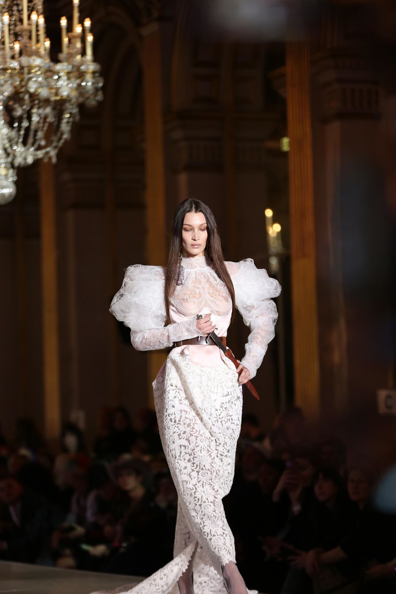 Model Bella Hadid was pictured braless walking the catwalk at the Vivienne Westwood fashion show during Paris Fashion Week, 02/29/2020. Bella will cut off your balls if you look at her tits!