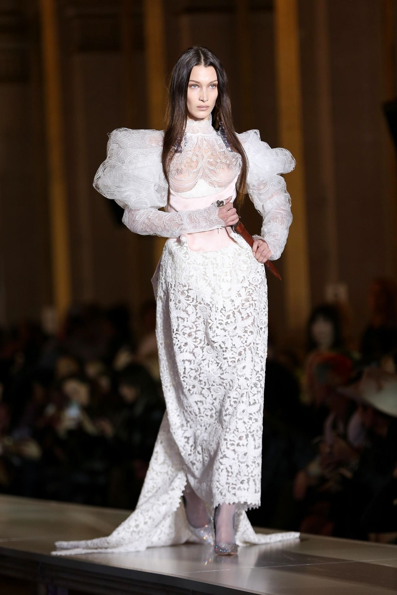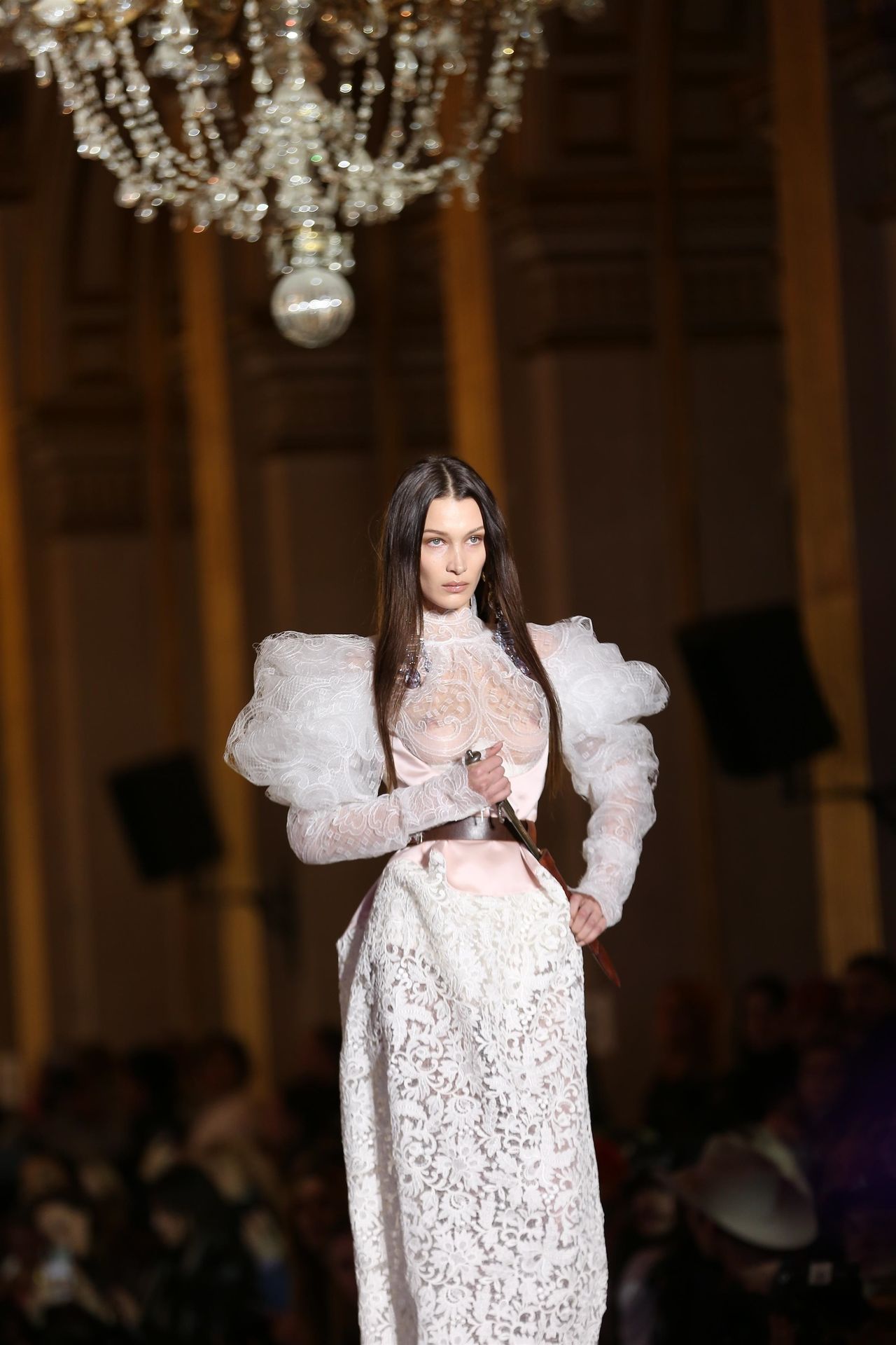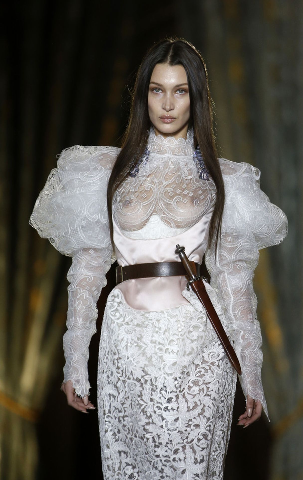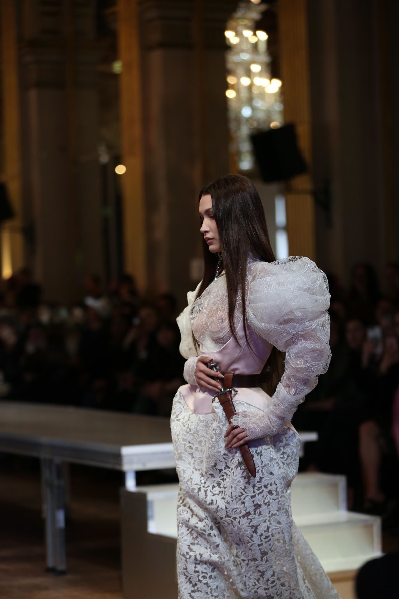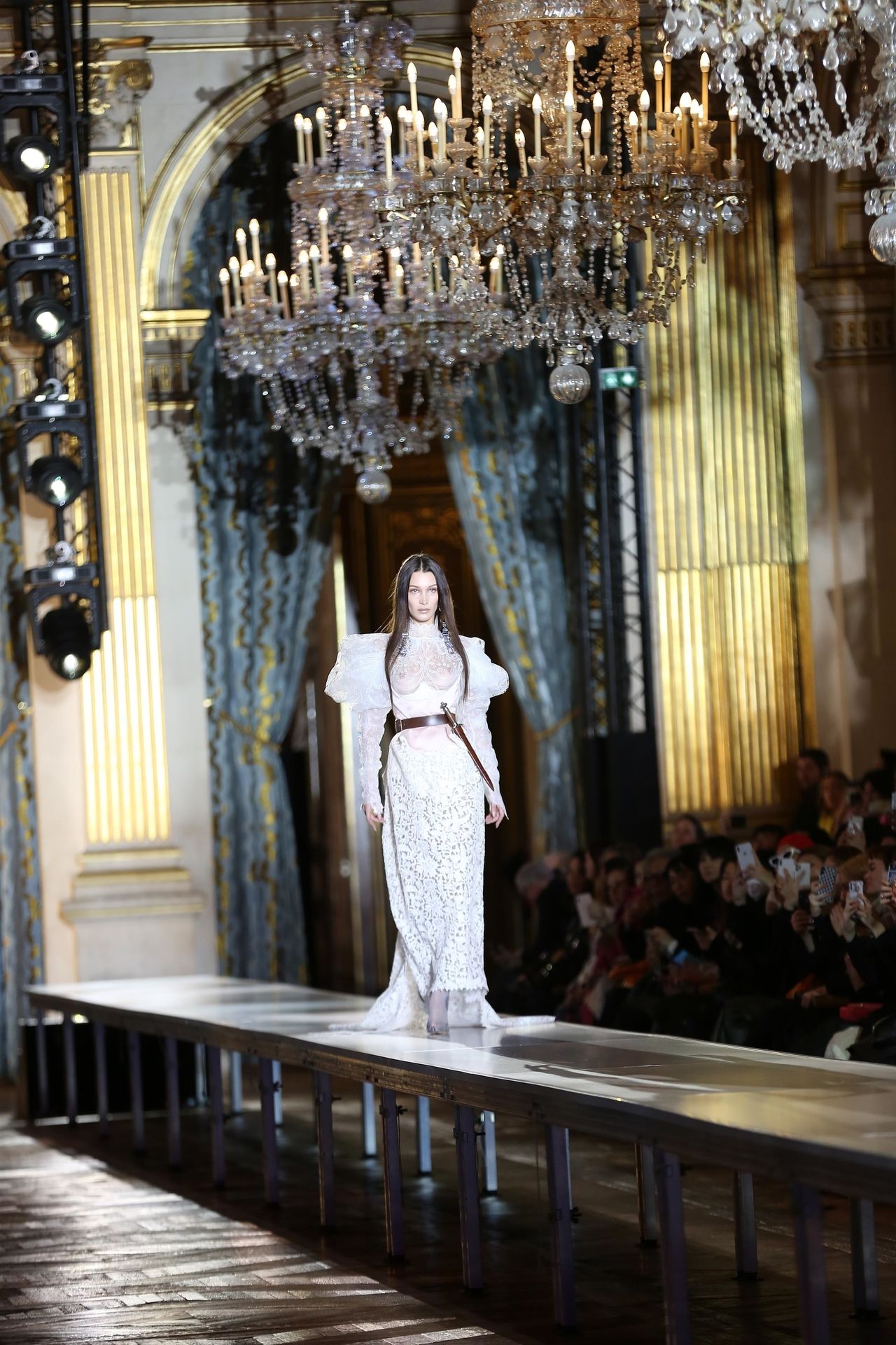 Model Bella Hadid was pictured braless walking the catwalk at the Vivienne Westwood fashion show during Paris Fashion Week, 02/29/2020. Bella will cut off your balls if you look at her tits!