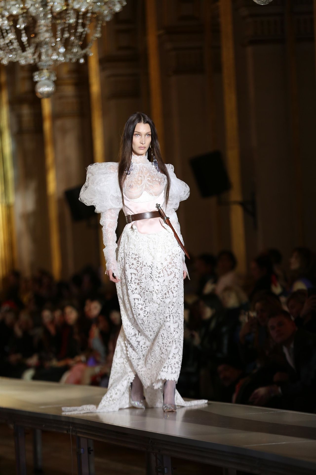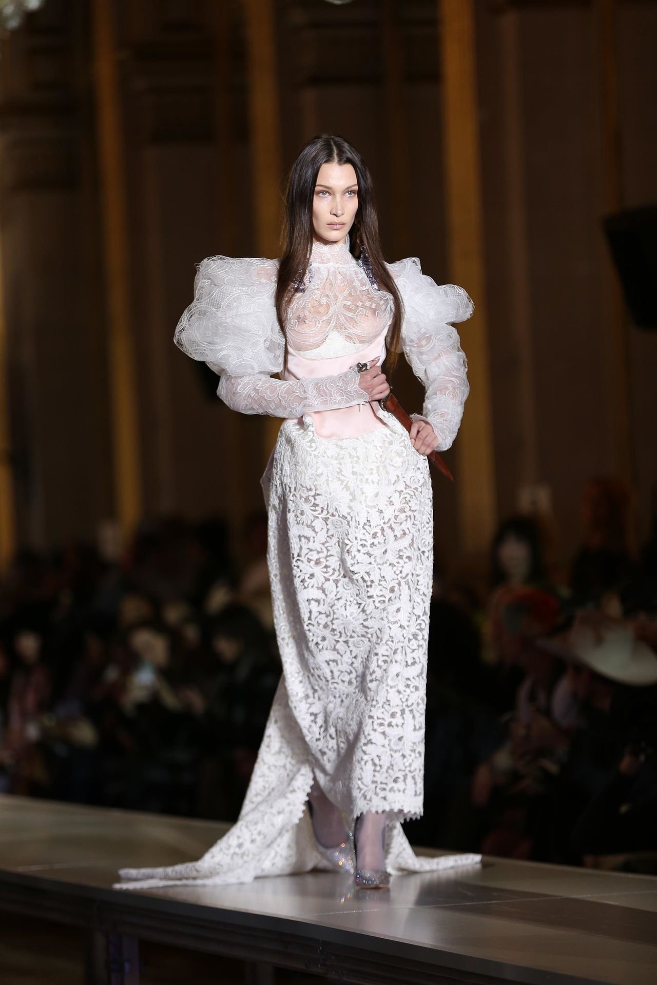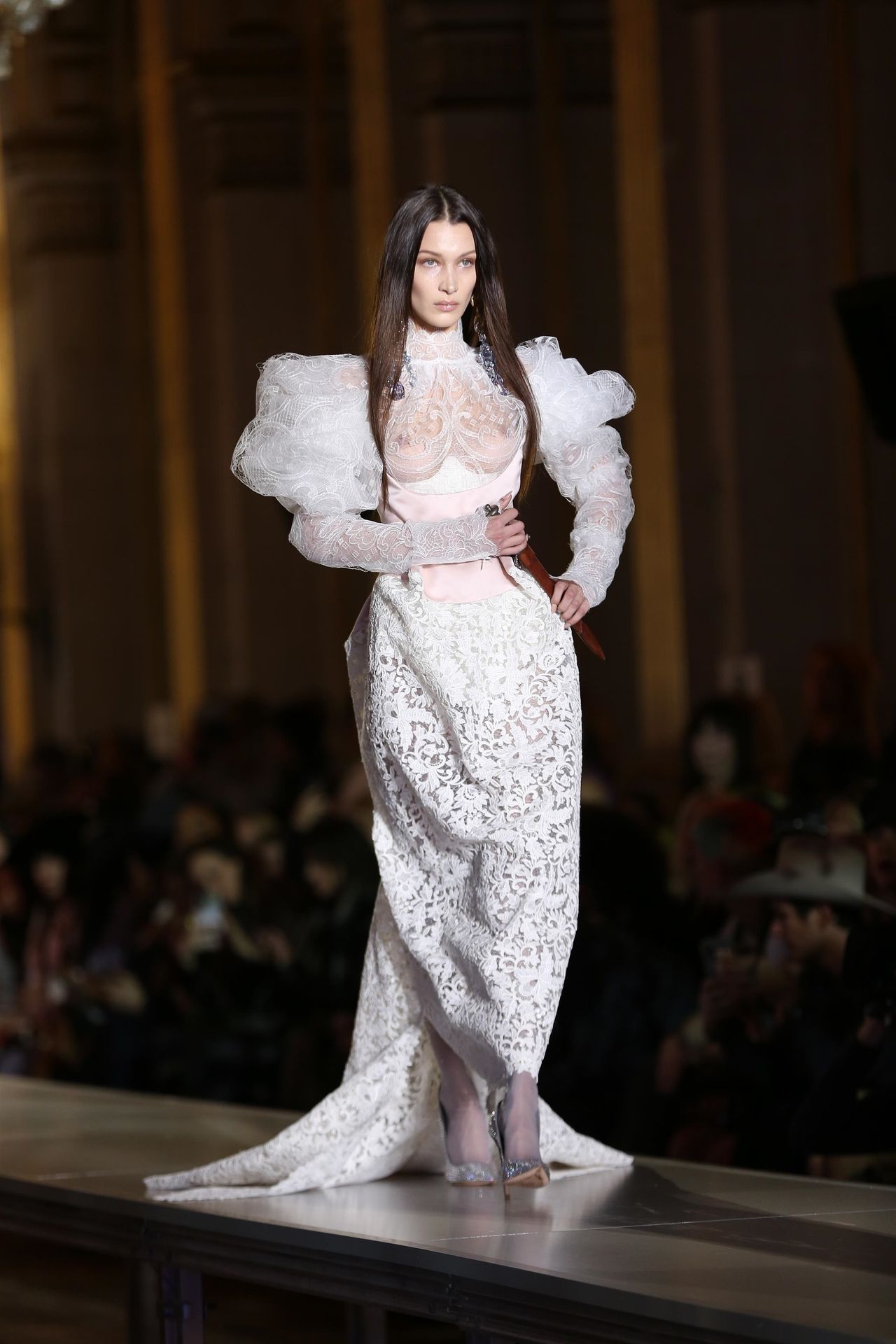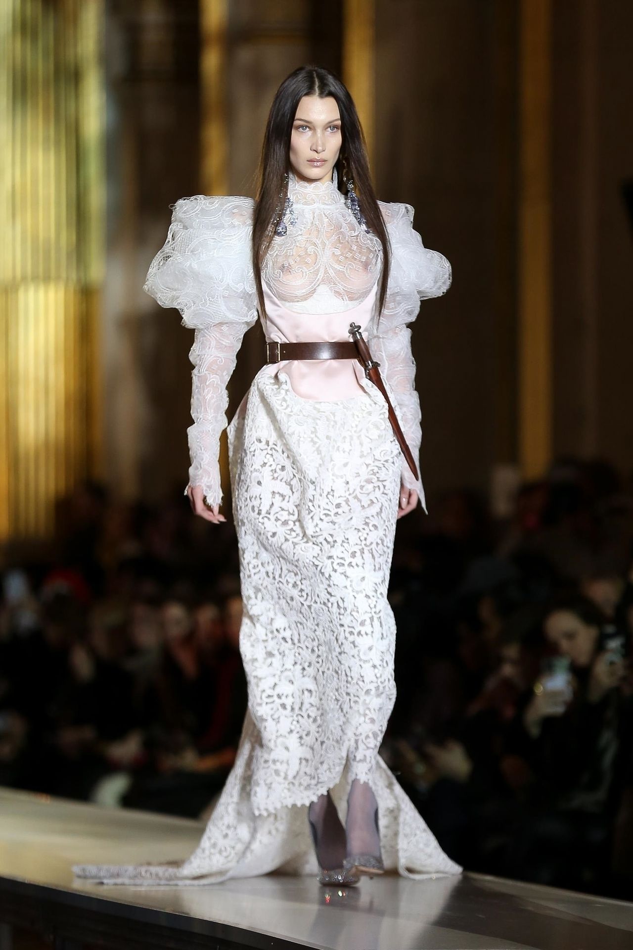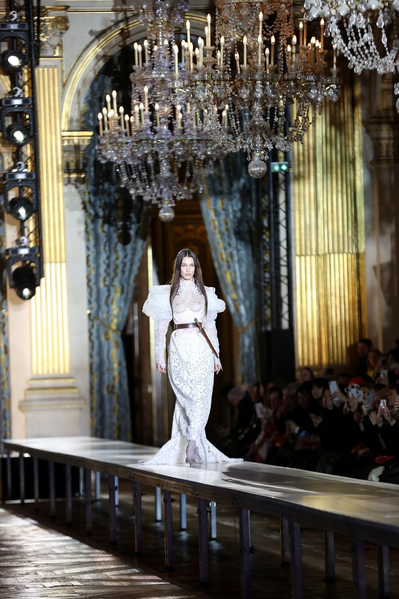 Model Bella Hadid was pictured braless walking the catwalk at the Vivienne Westwood fashion show during Paris Fashion Week, 02/29/2020. Bella will cut off your balls if you look at her tits!