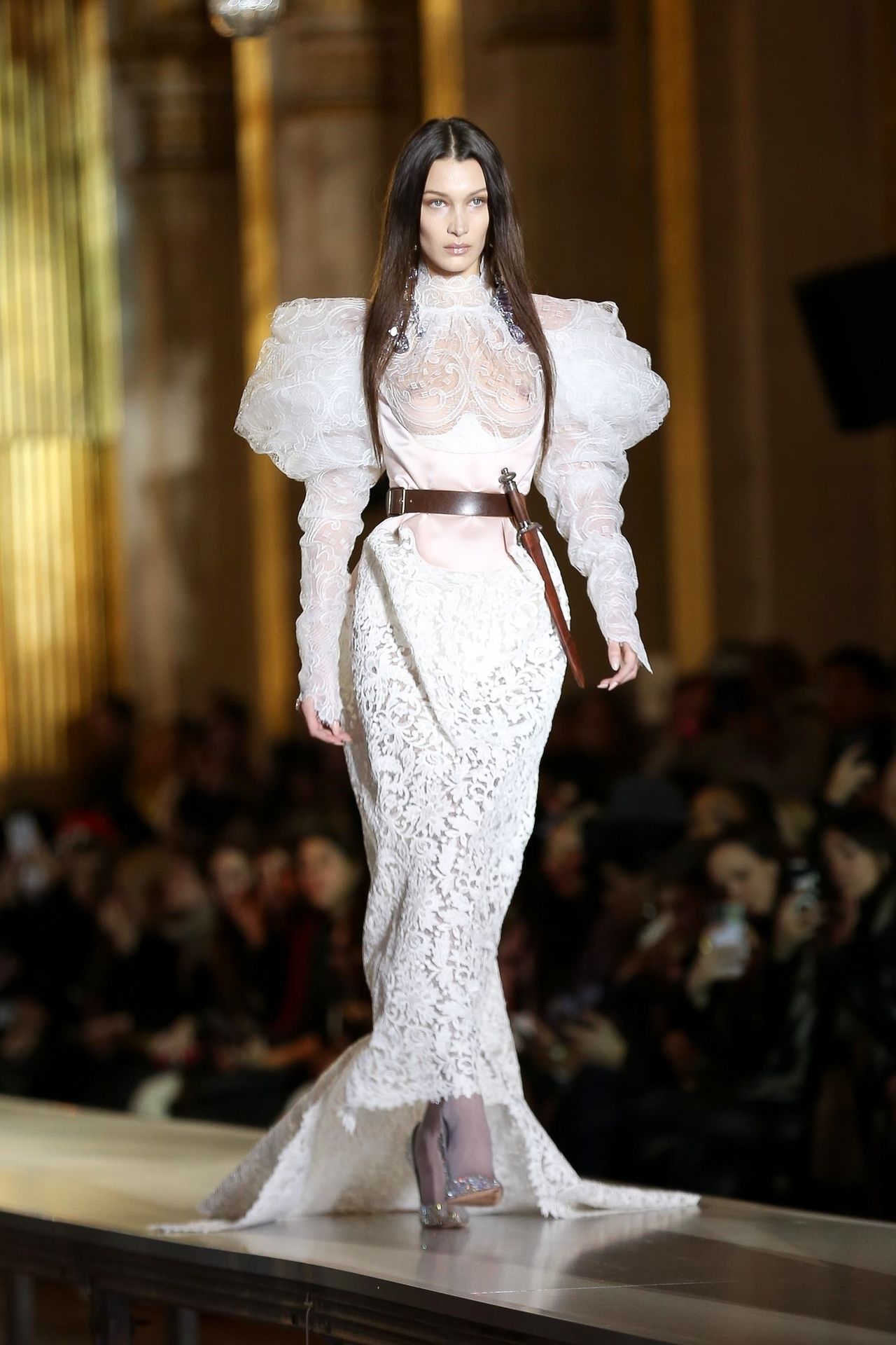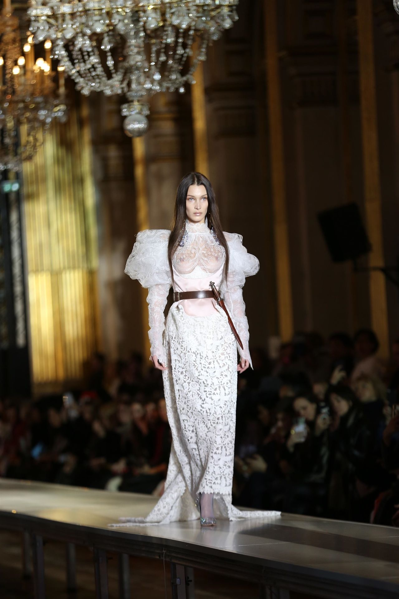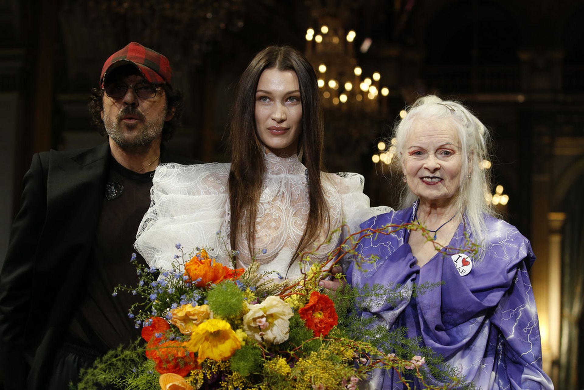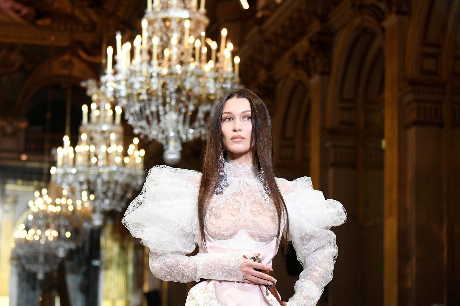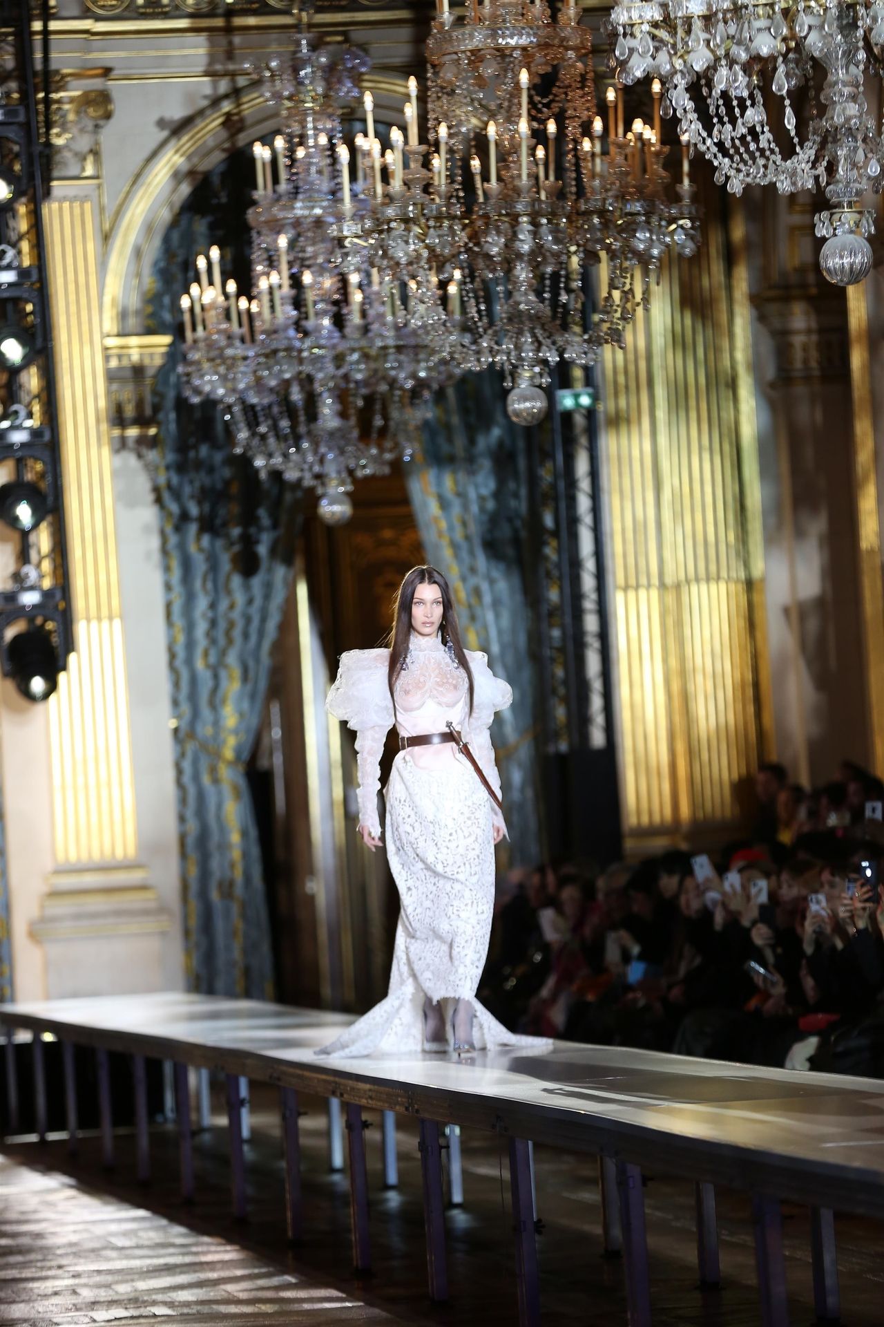 Model Bella Hadid was pictured braless walking the catwalk at the Vivienne Westwood fashion show during Paris Fashion Week, 02/29/2020. Bella will cut off your balls if you look at her tits!