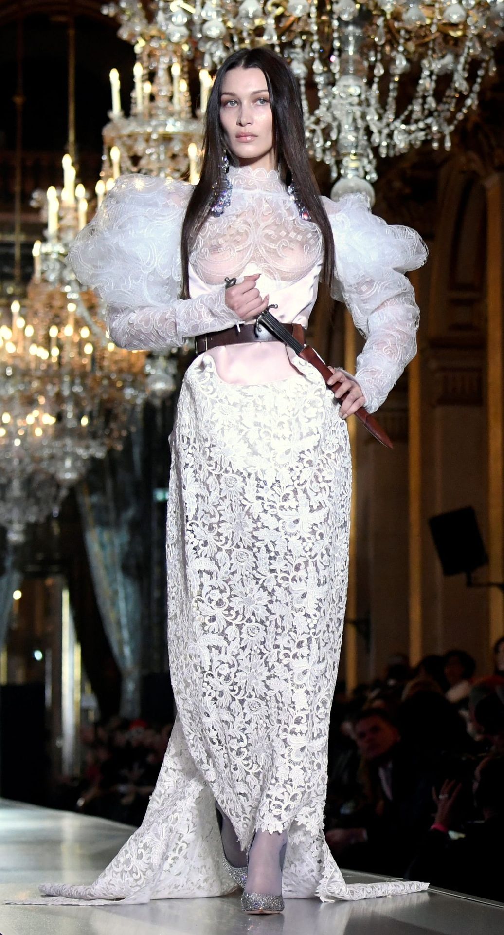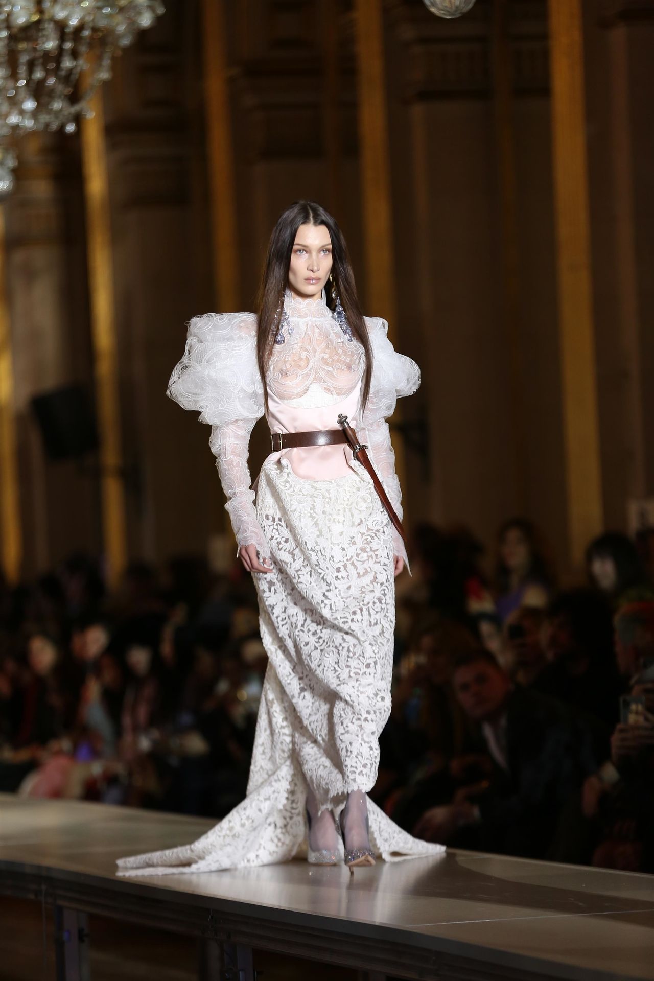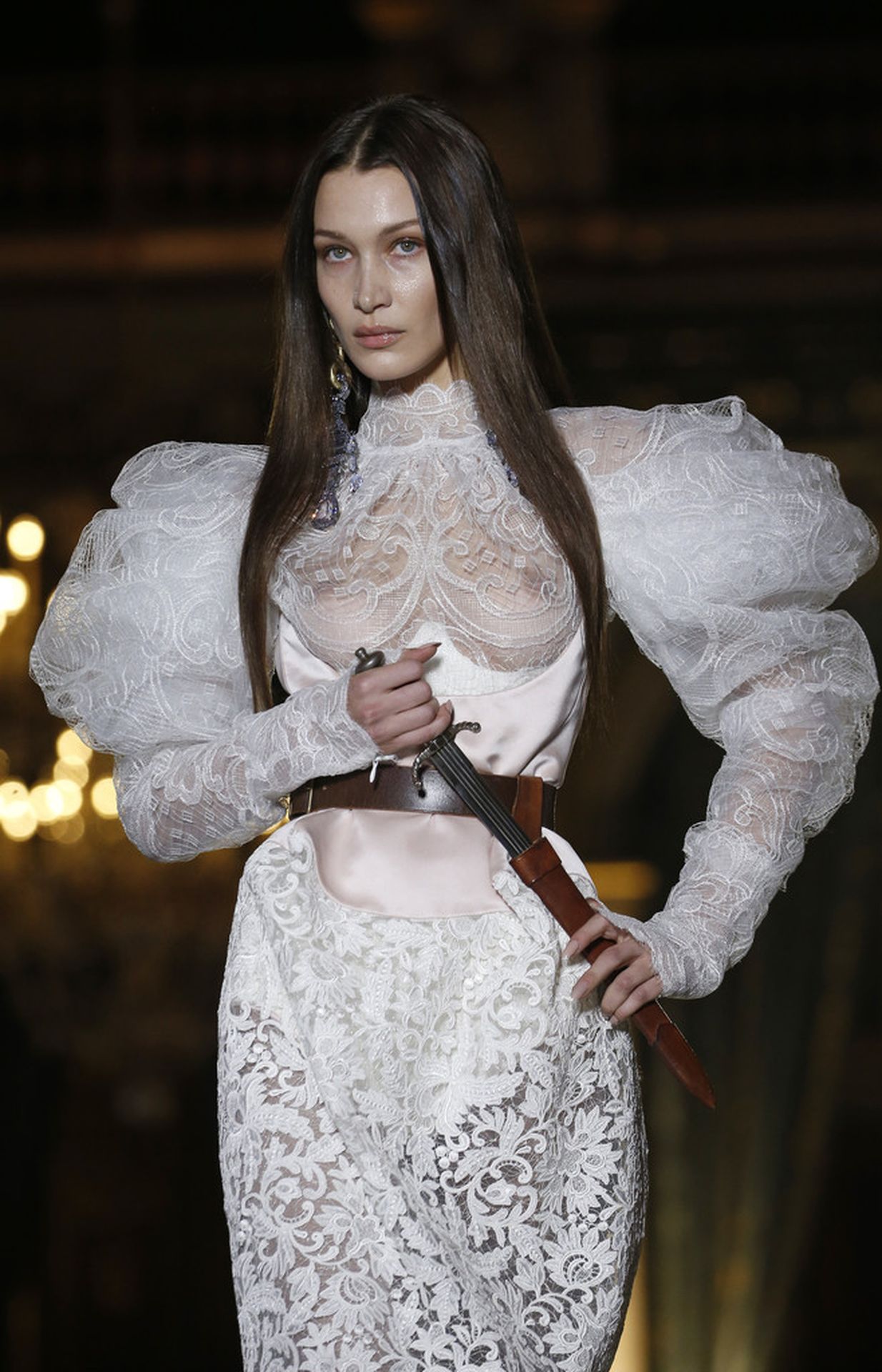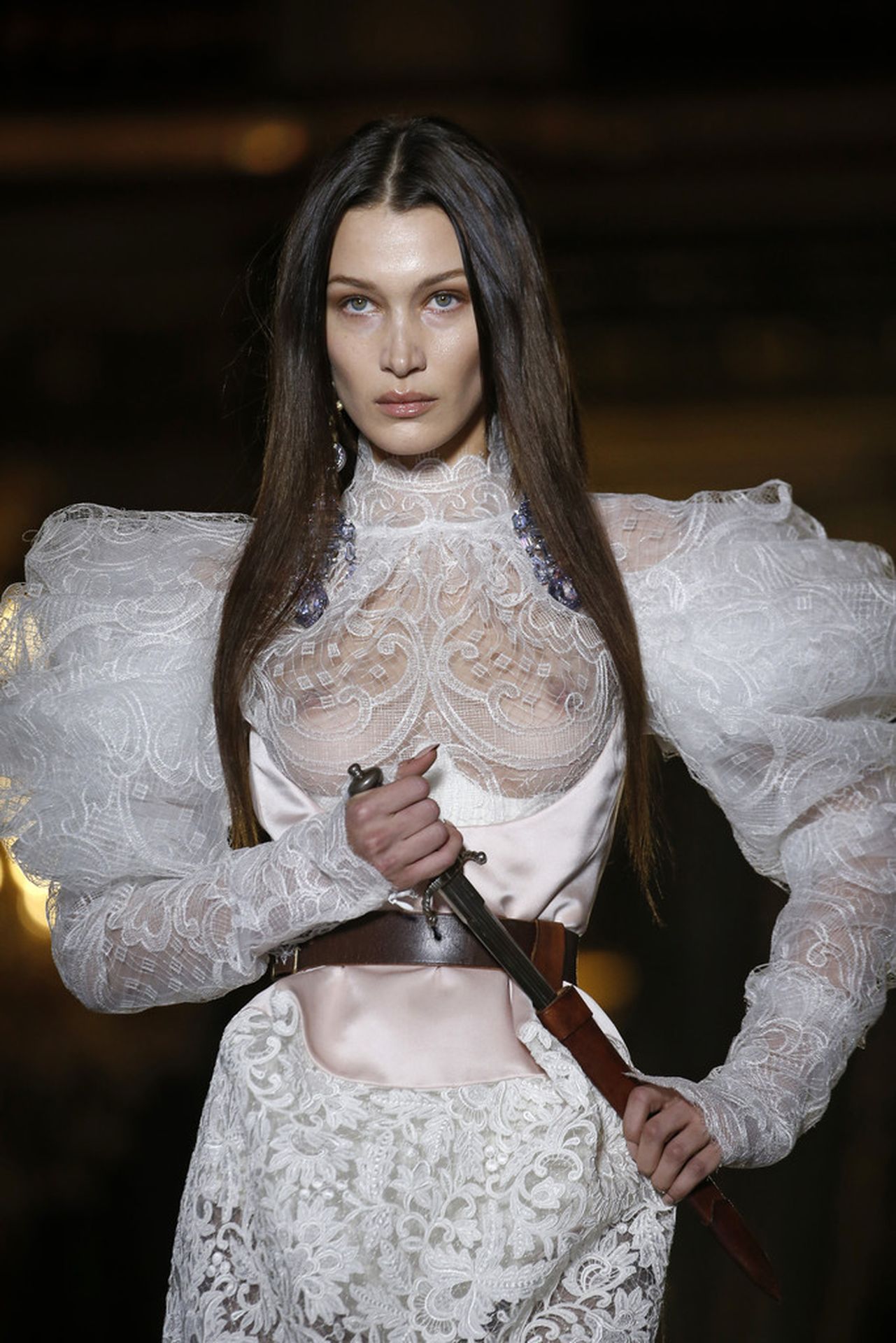 Model Bella Hadid was pictured braless walking the catwalk at the Vivienne Westwood fashion show during Paris Fashion Week, 02/29/2020. Bella will cut off your balls if you look at her tits!