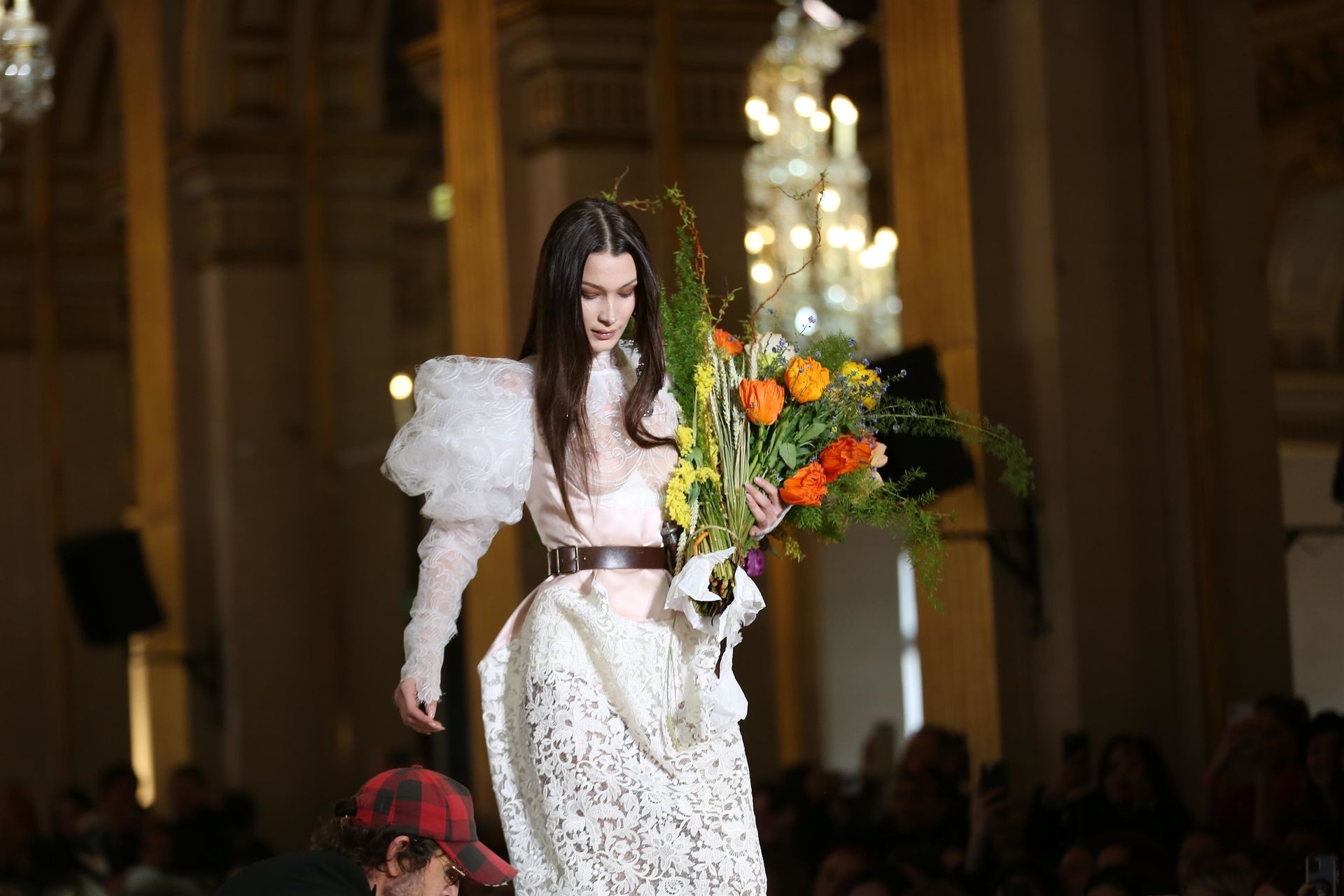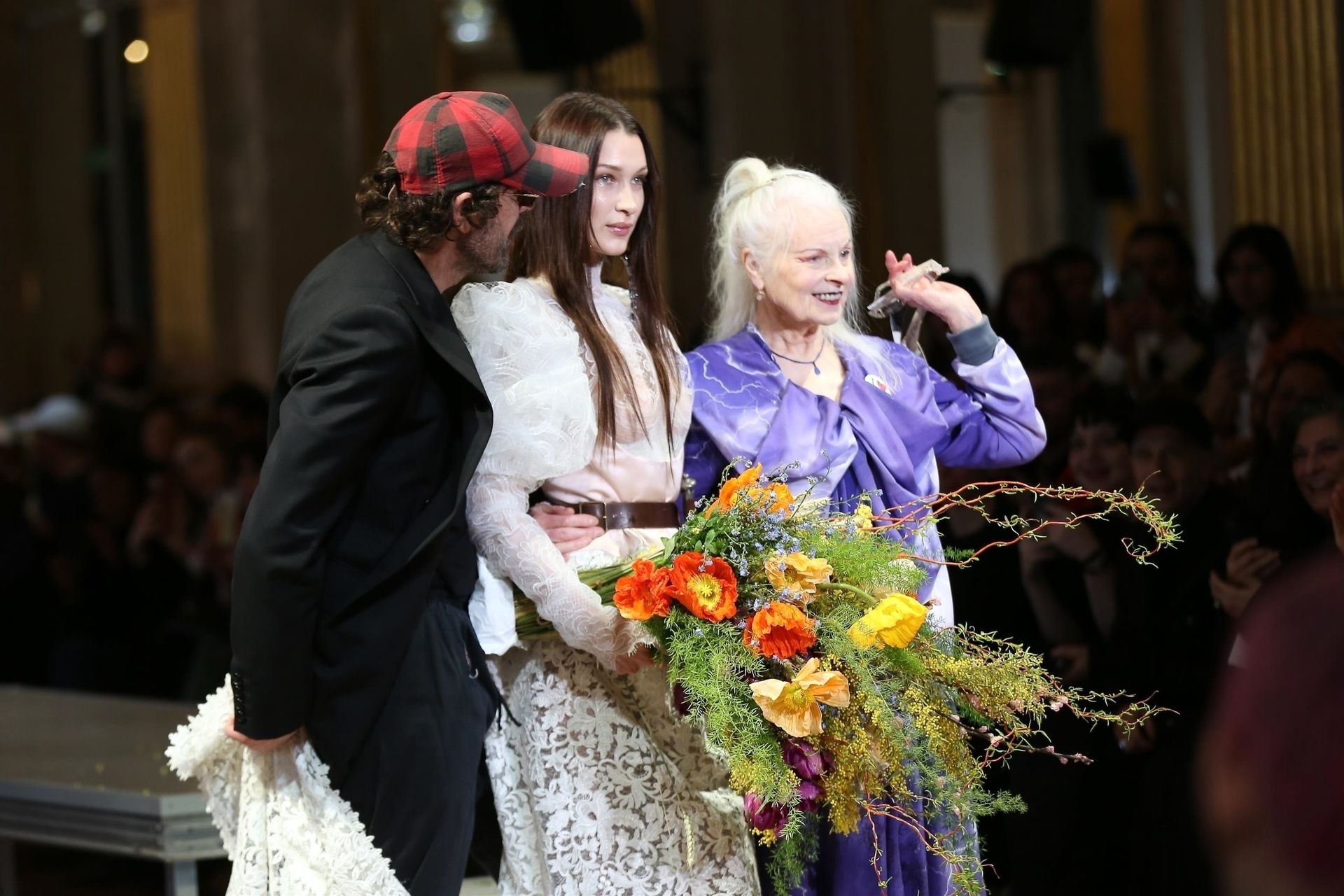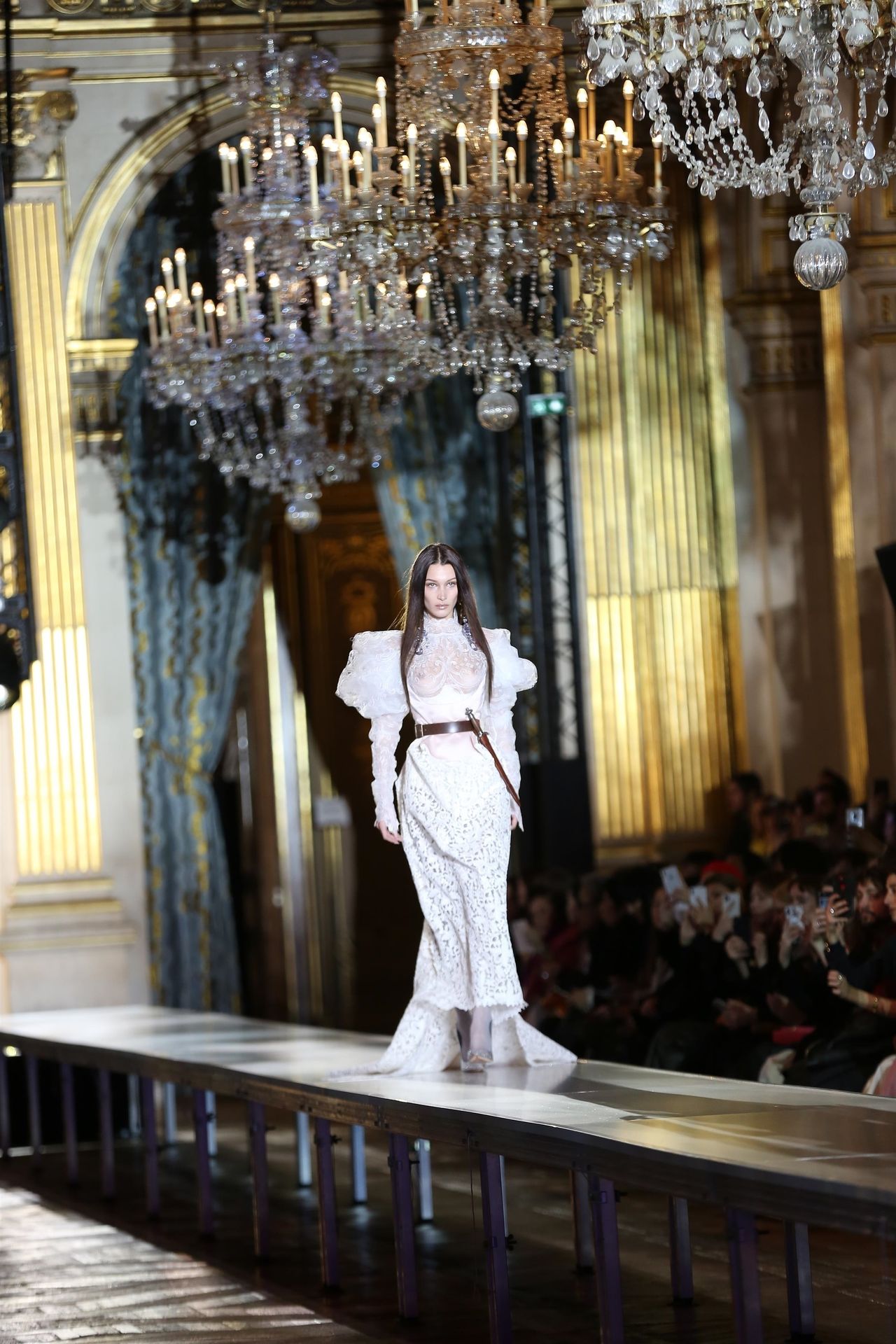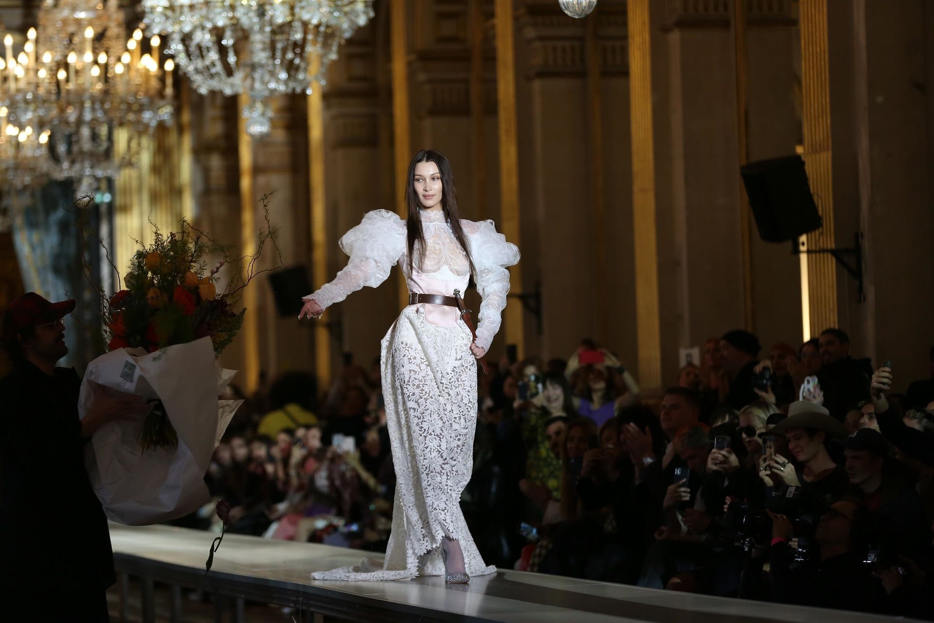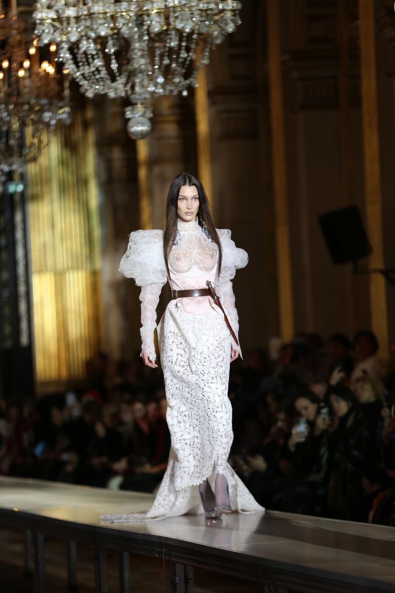 Model Bella Hadid was pictured braless walking the catwalk at the Vivienne Westwood fashion show during Paris Fashion Week, 02/29/2020. Bella will cut off your balls if you look at her tits!