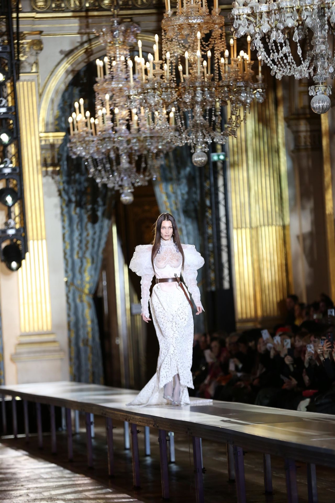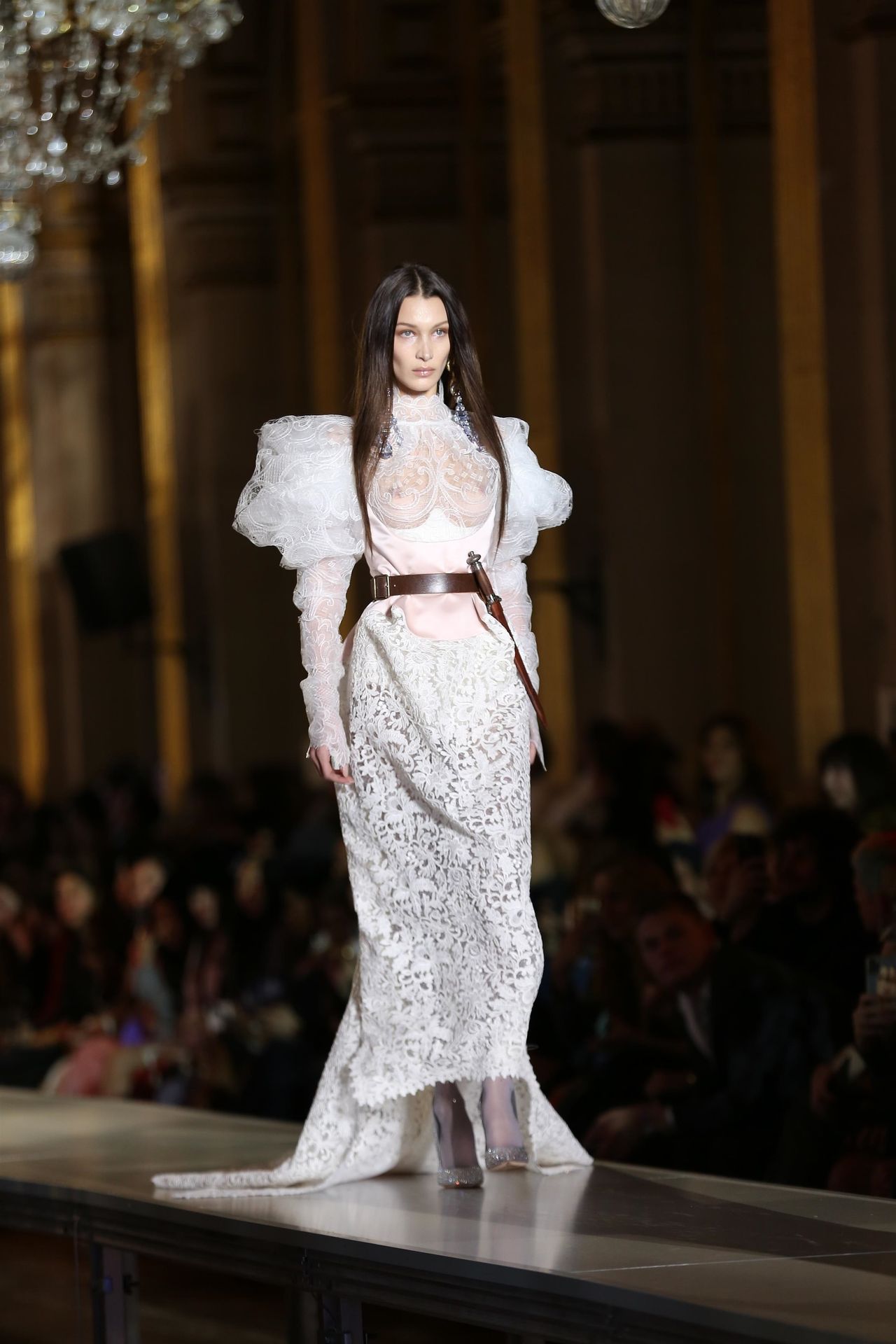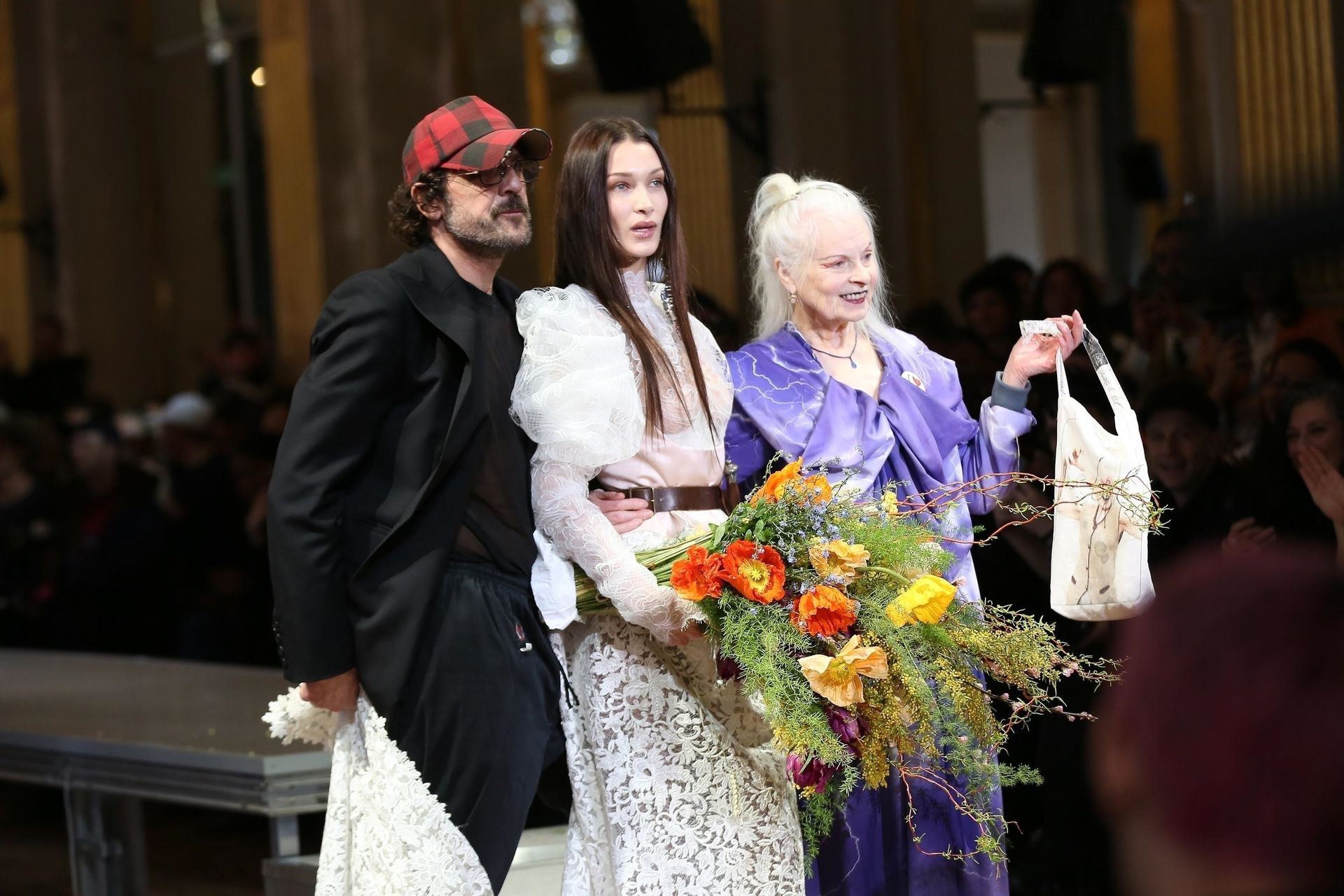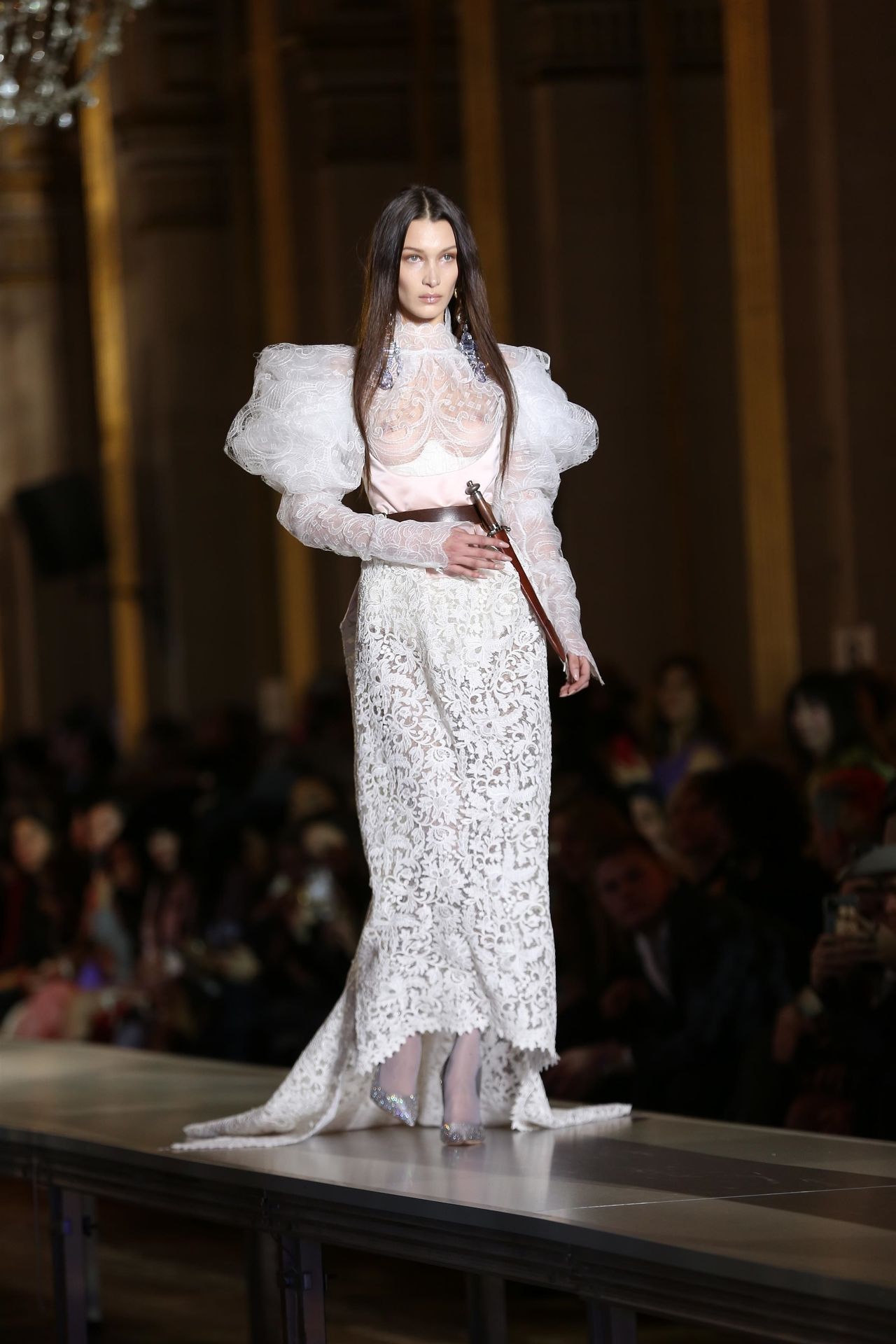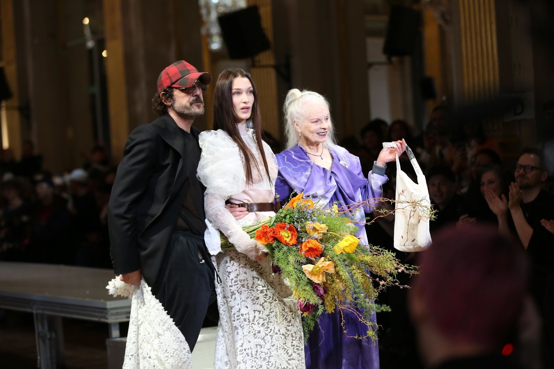 Model Bella Hadid was pictured braless walking the catwalk at the Vivienne Westwood fashion show during Paris Fashion Week, 02/29/2020. Bella will cut off your balls if you look at her tits!