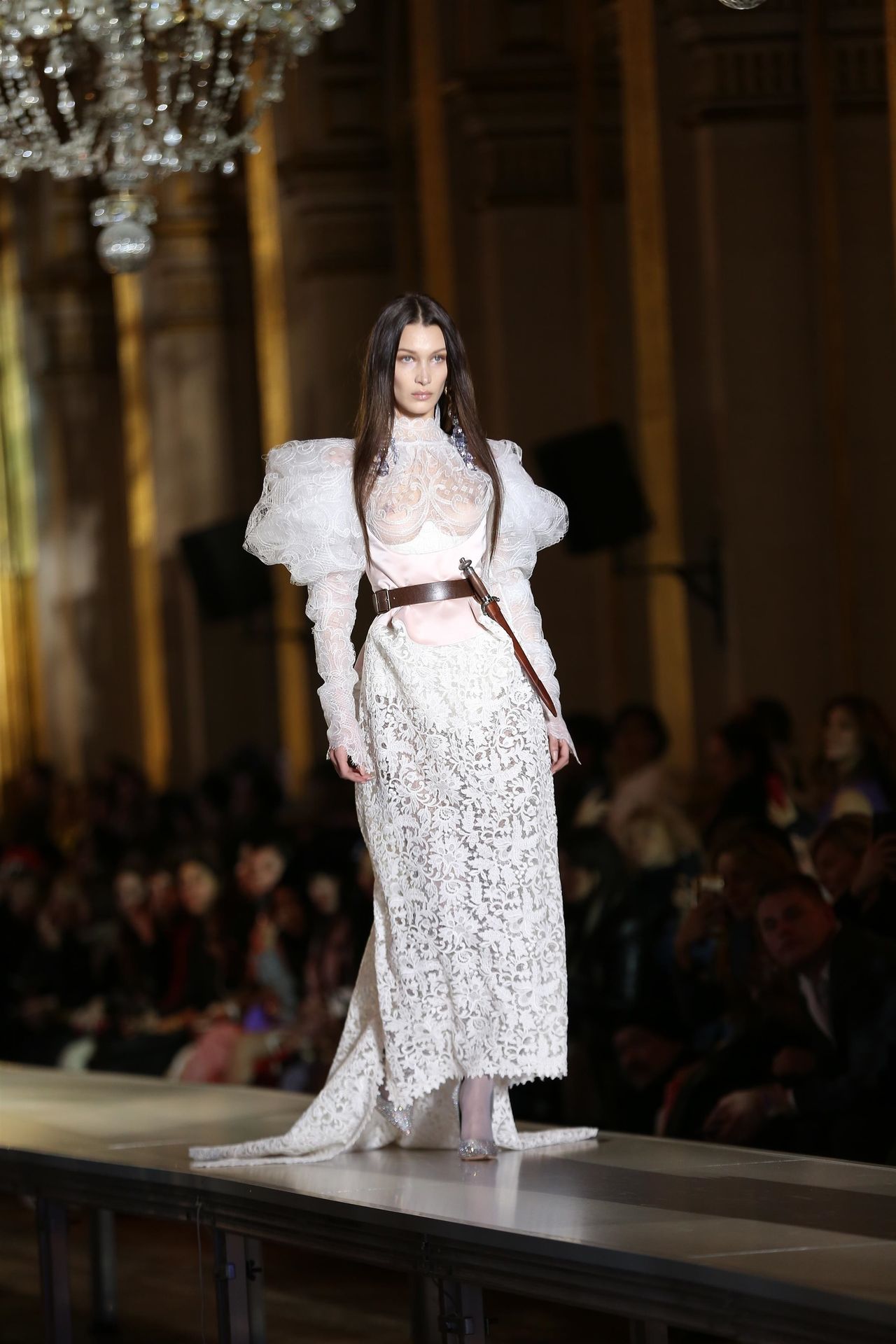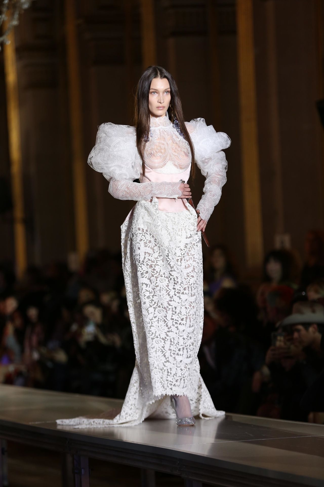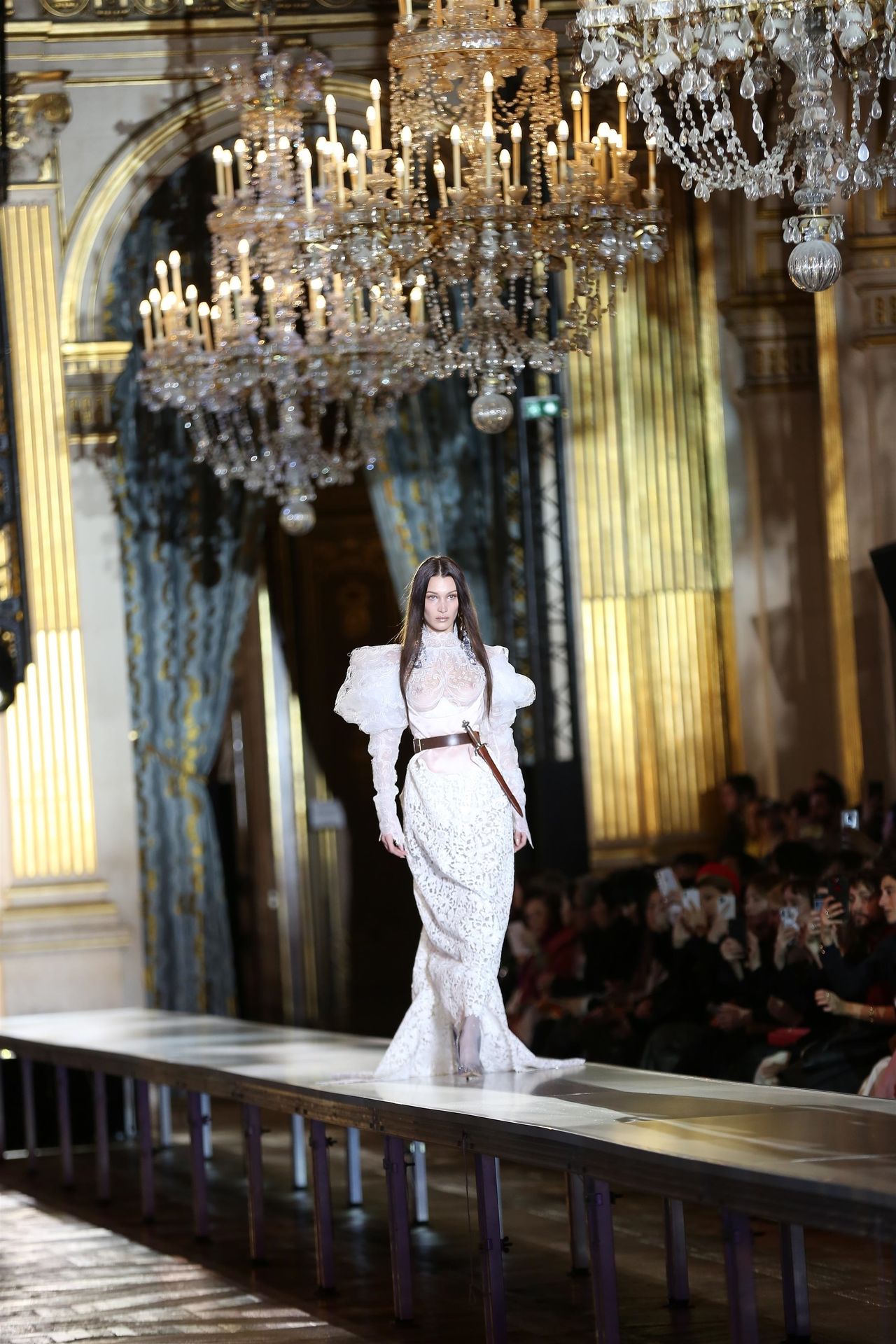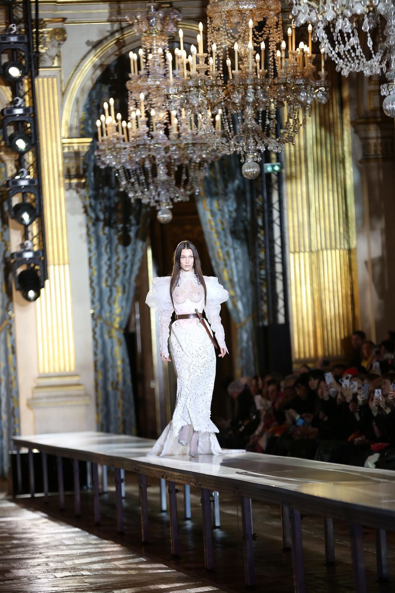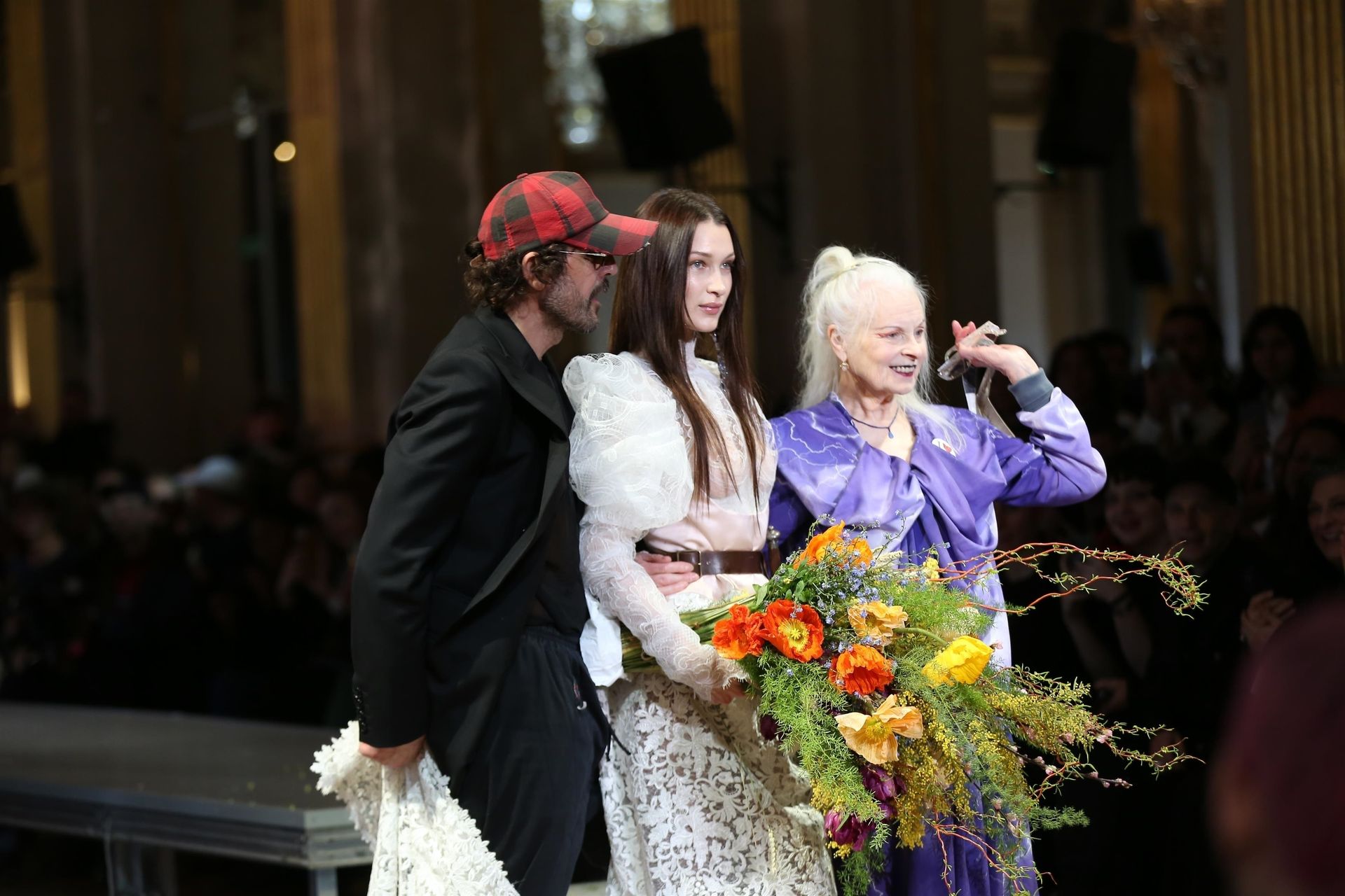 Model Bella Hadid was pictured braless walking the catwalk at the Vivienne Westwood fashion show during Paris Fashion Week, 02/29/2020. Bella will cut off your balls if you look at her tits!