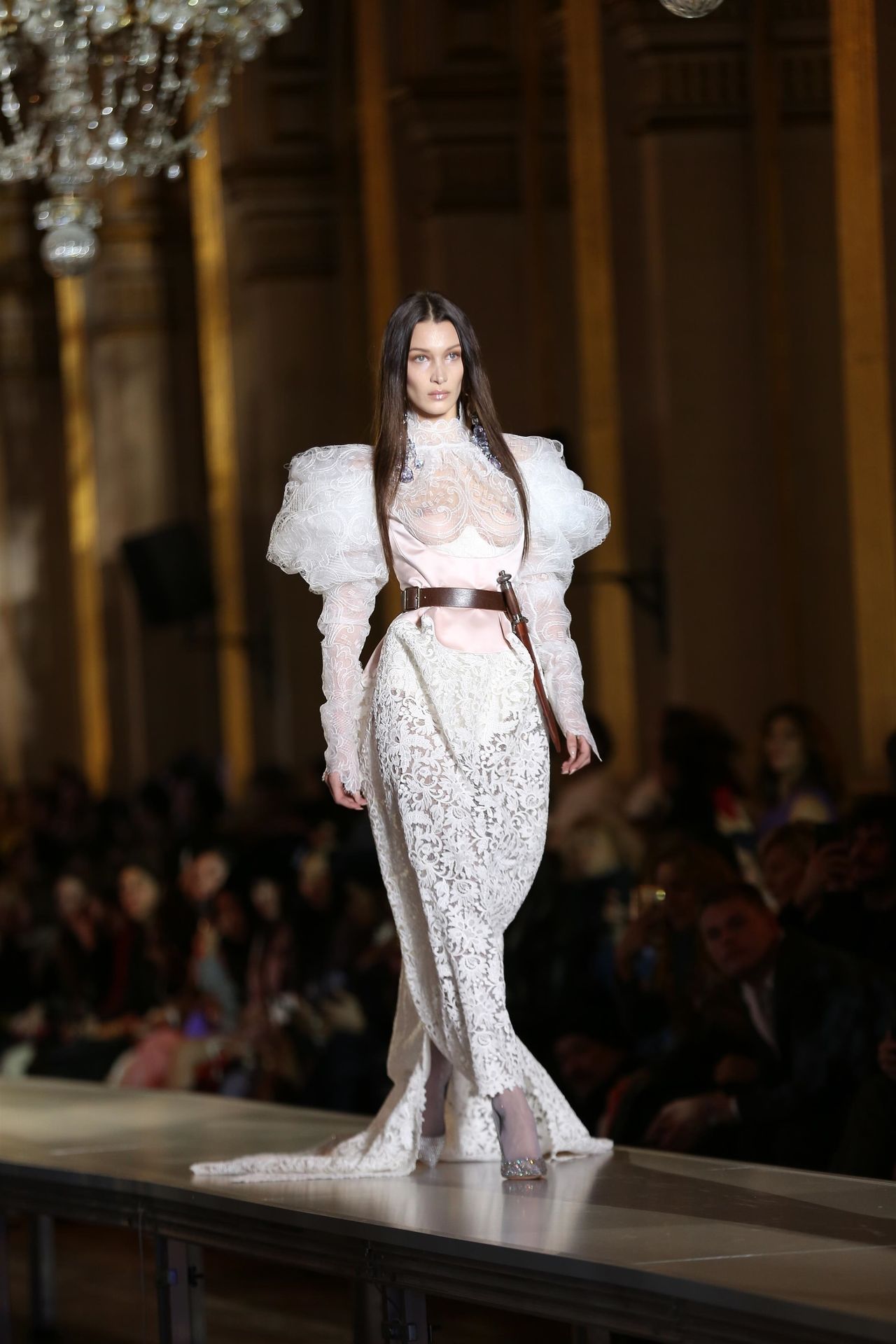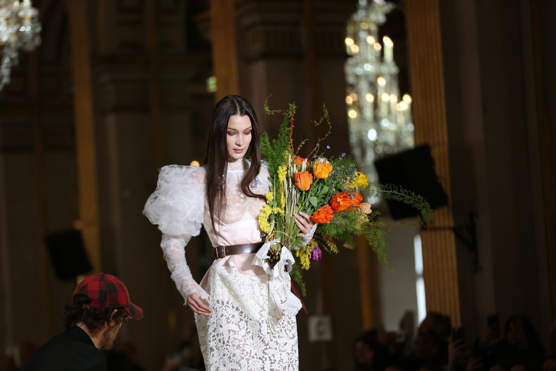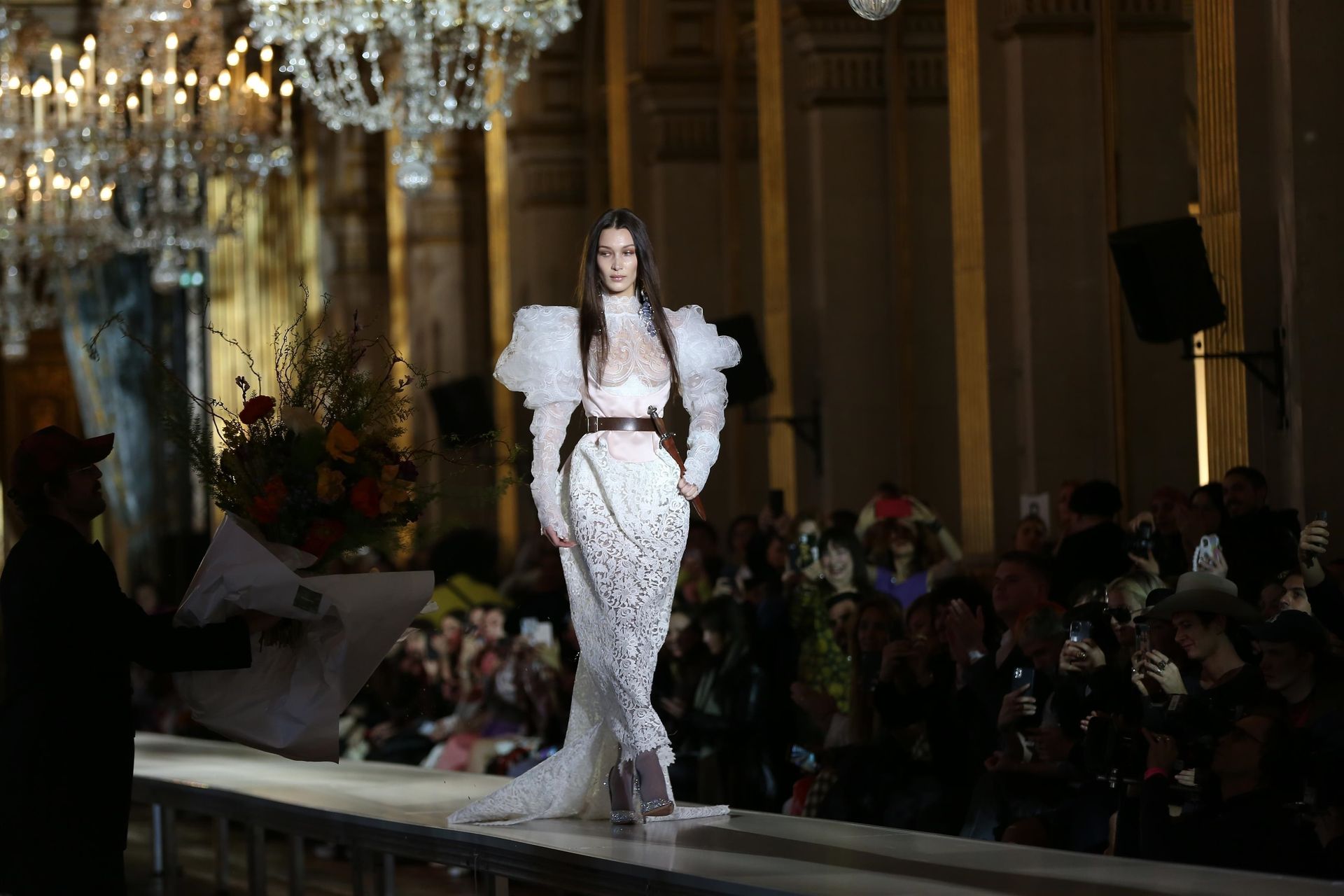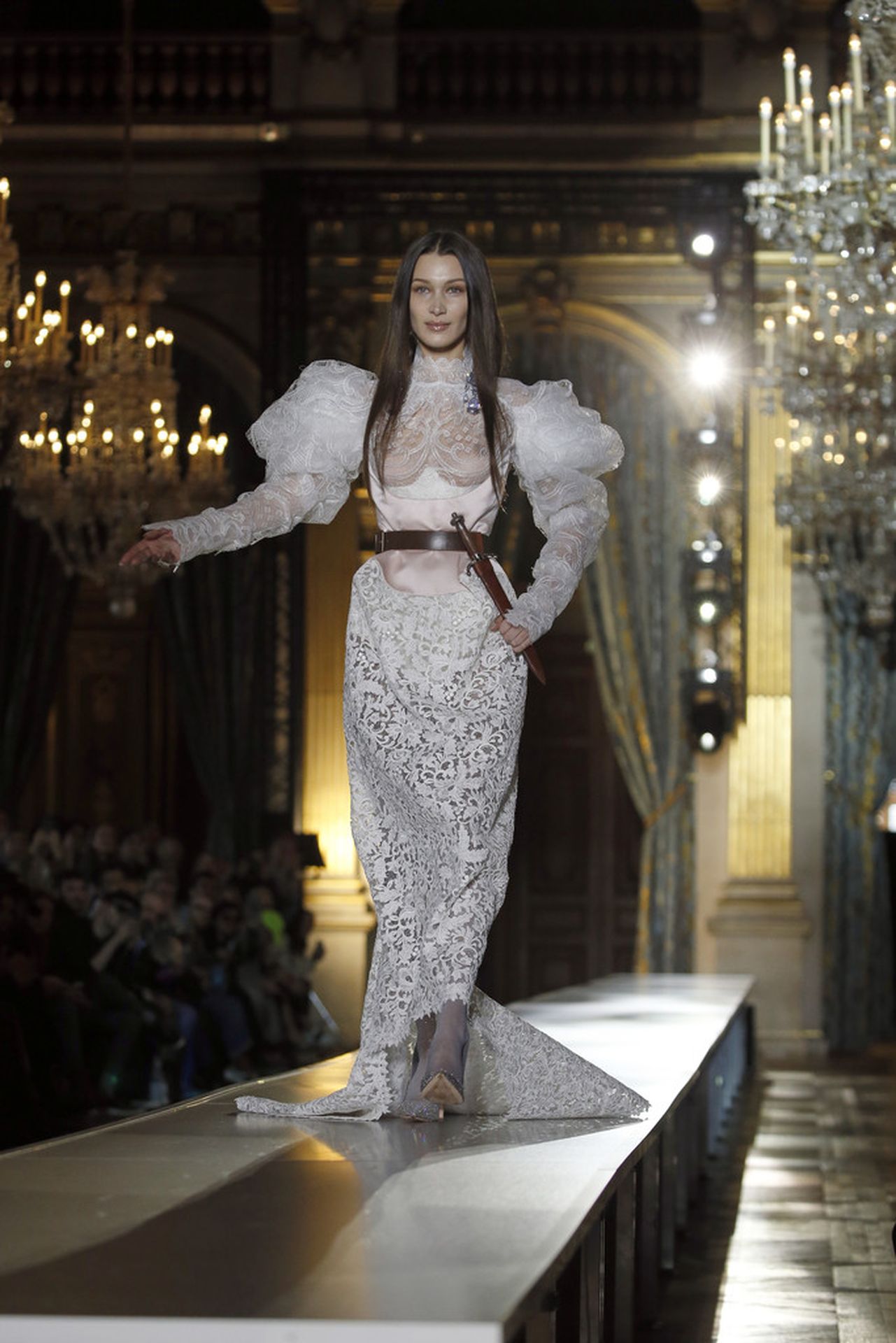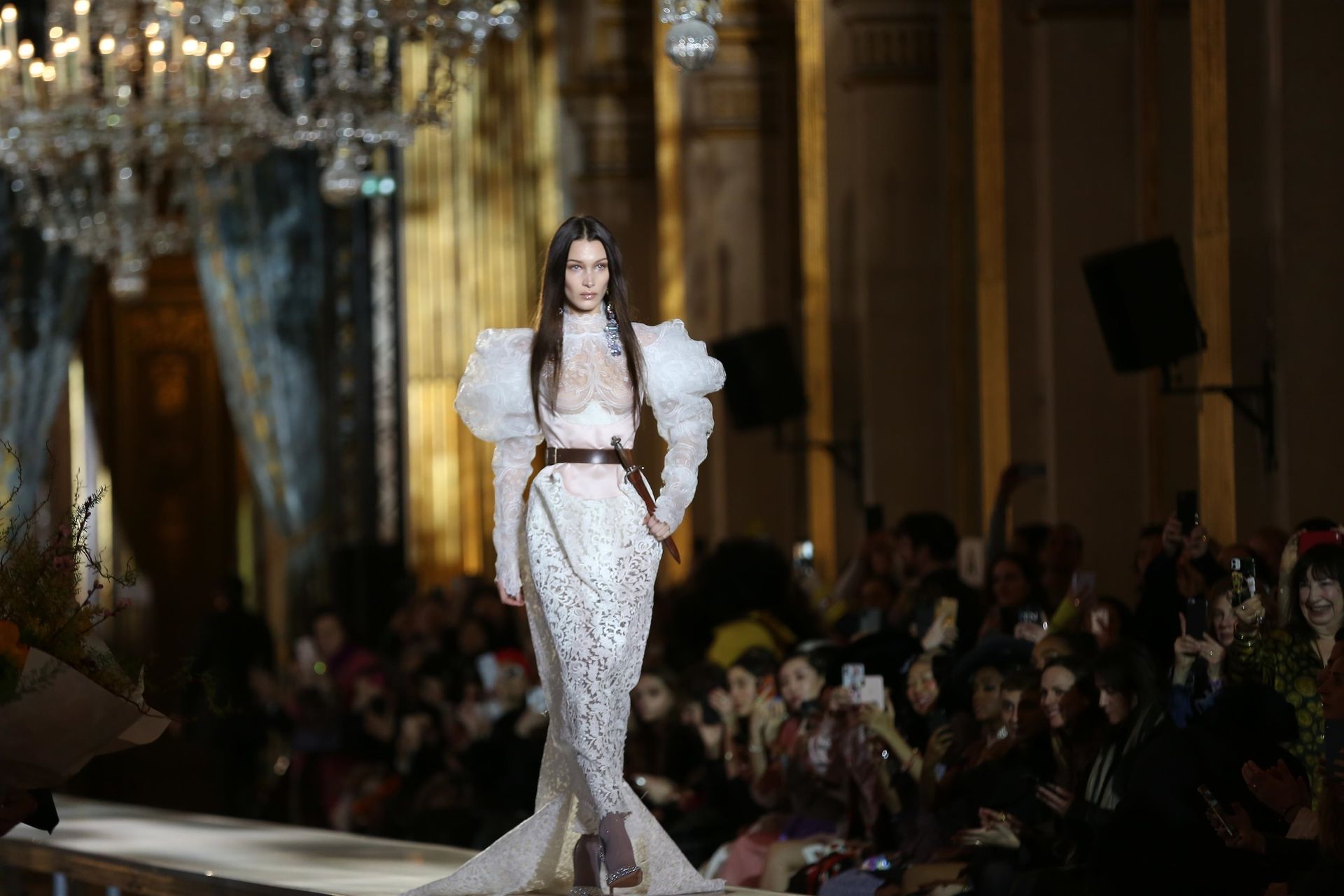 Model Bella Hadid was pictured braless walking the catwalk at the Vivienne Westwood fashion show during Paris Fashion Week, 02/29/2020. Bella will cut off your balls if you look at her tits!