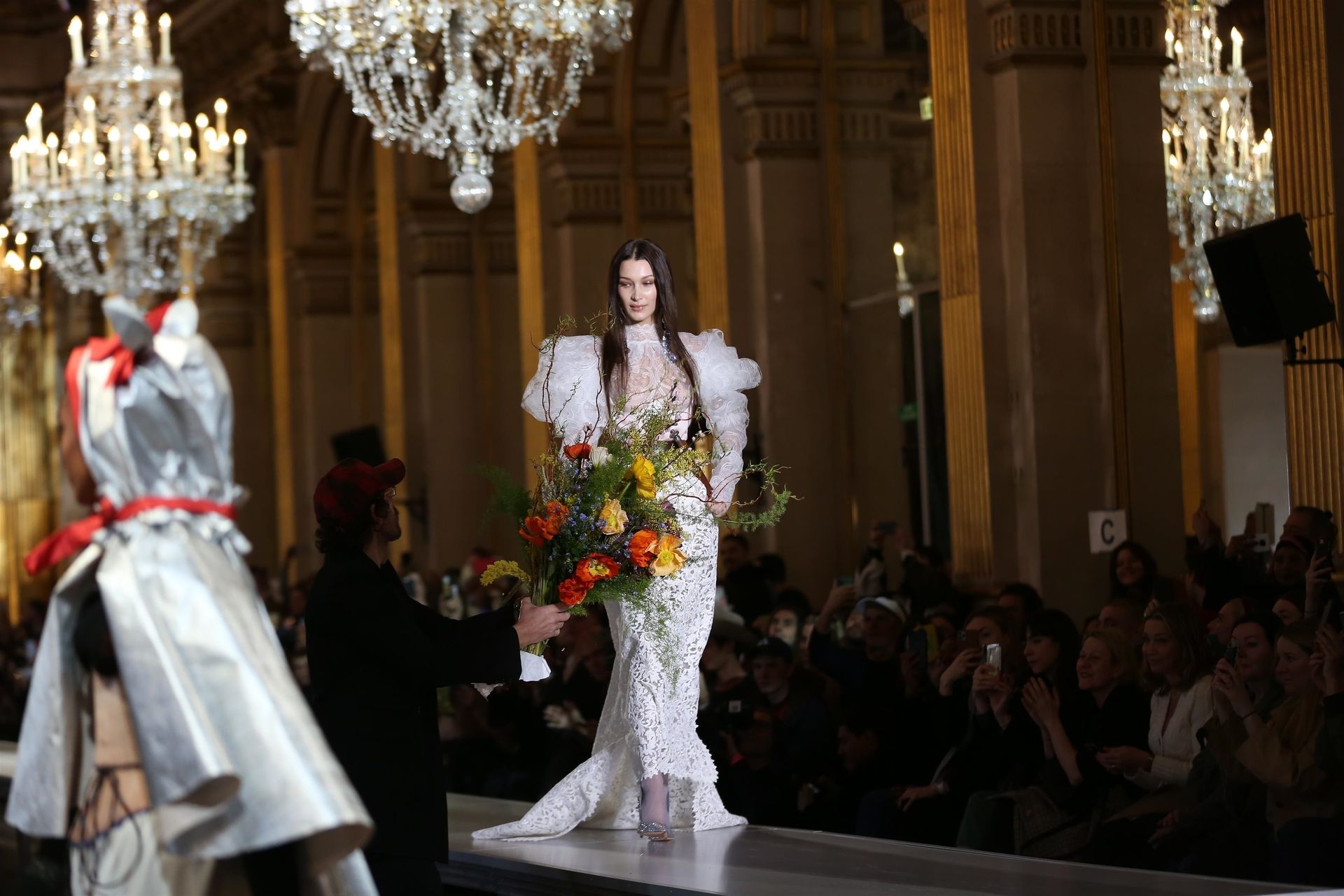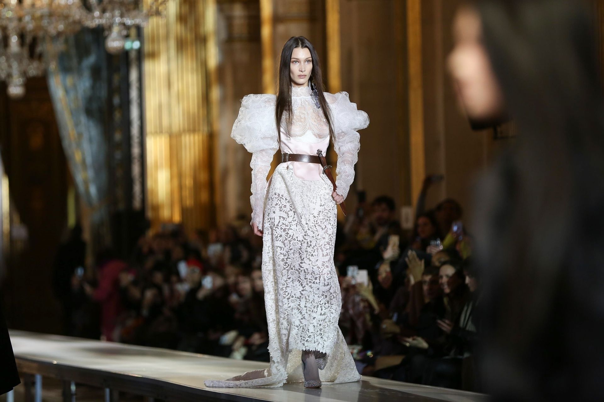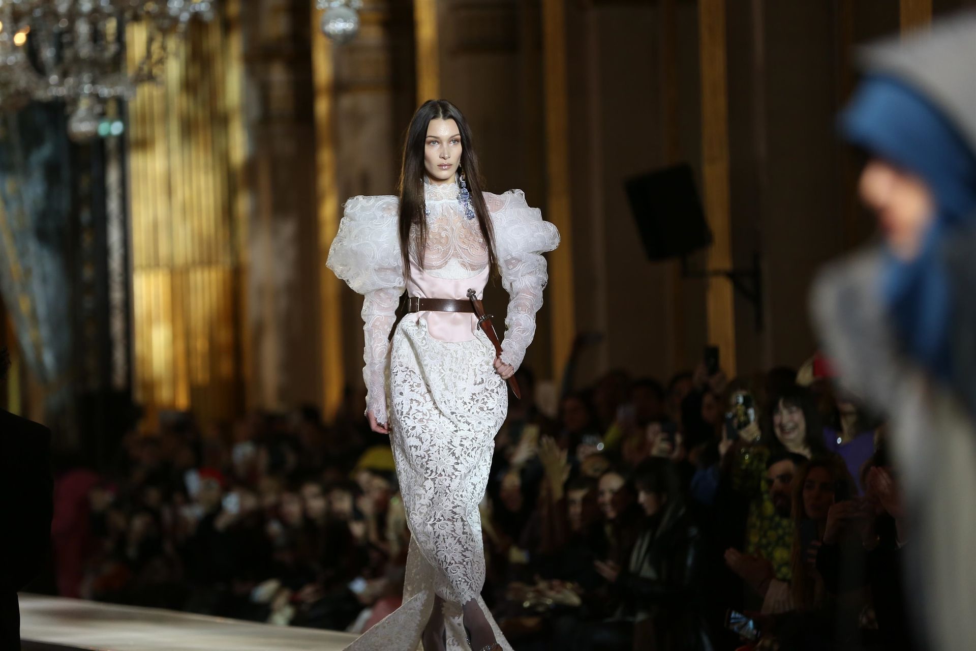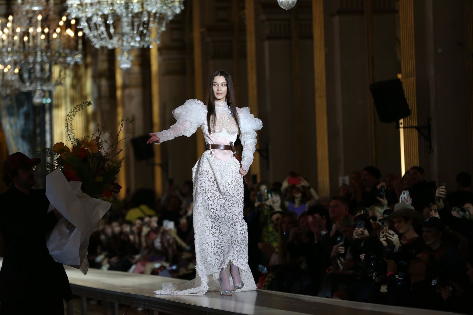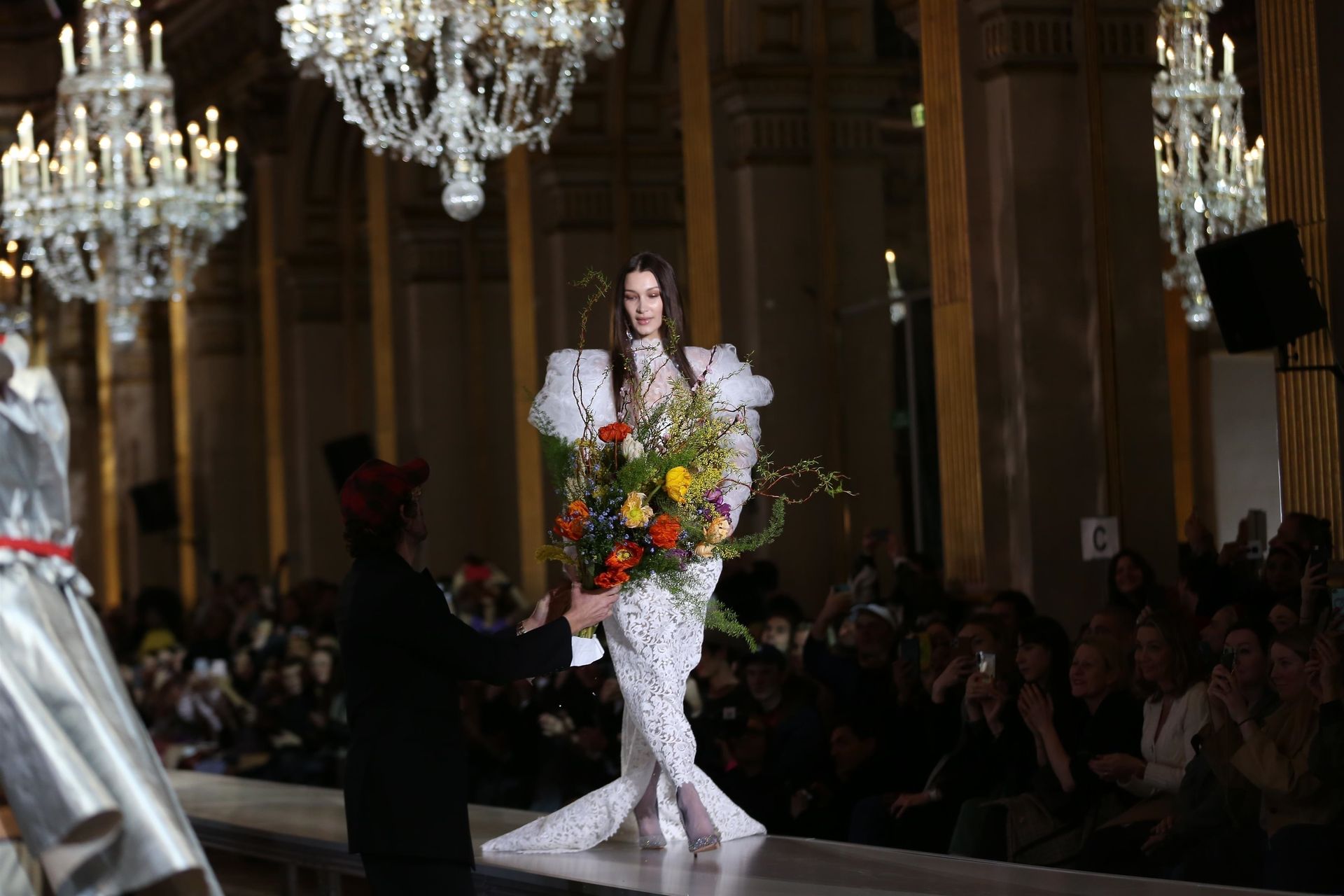 Model Bella Hadid was pictured braless walking the catwalk at the Vivienne Westwood fashion show during Paris Fashion Week, 02/29/2020. Bella will cut off your balls if you look at her tits!