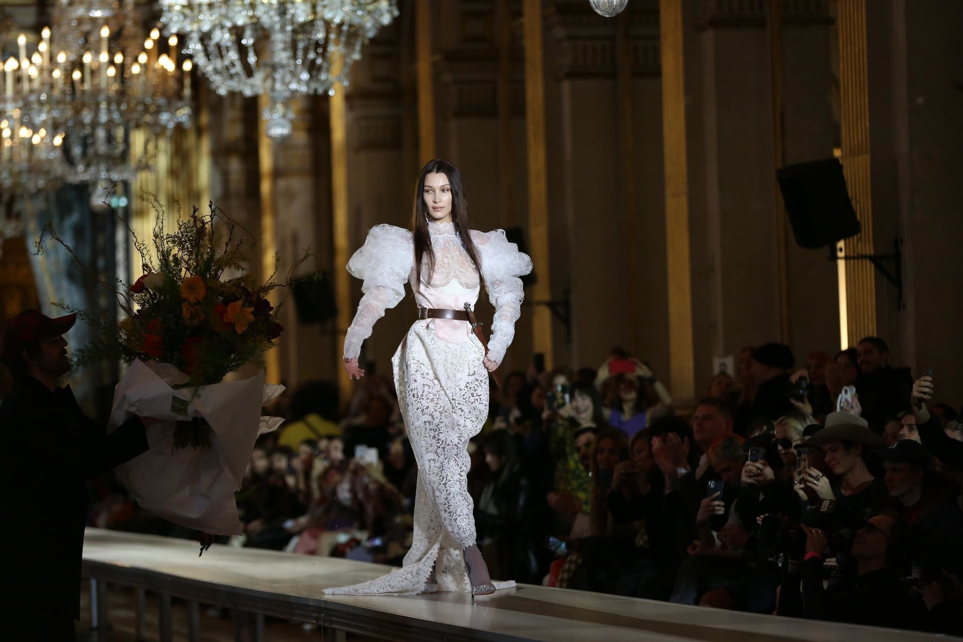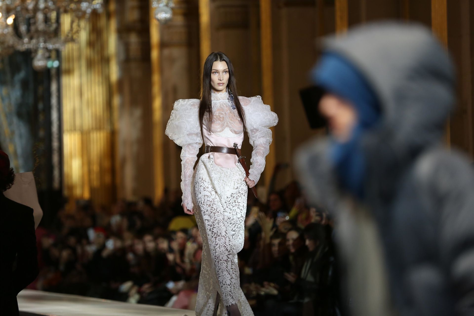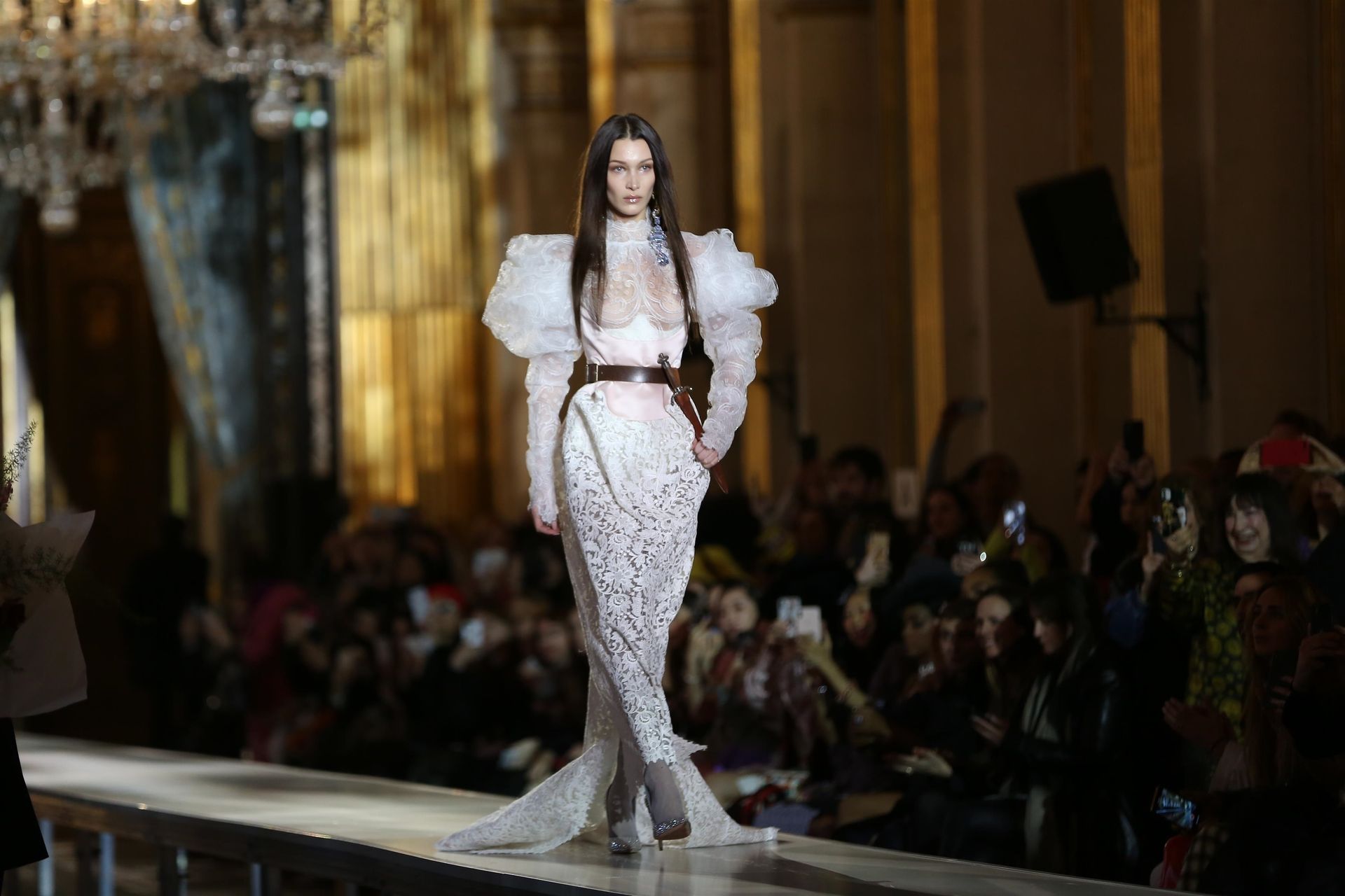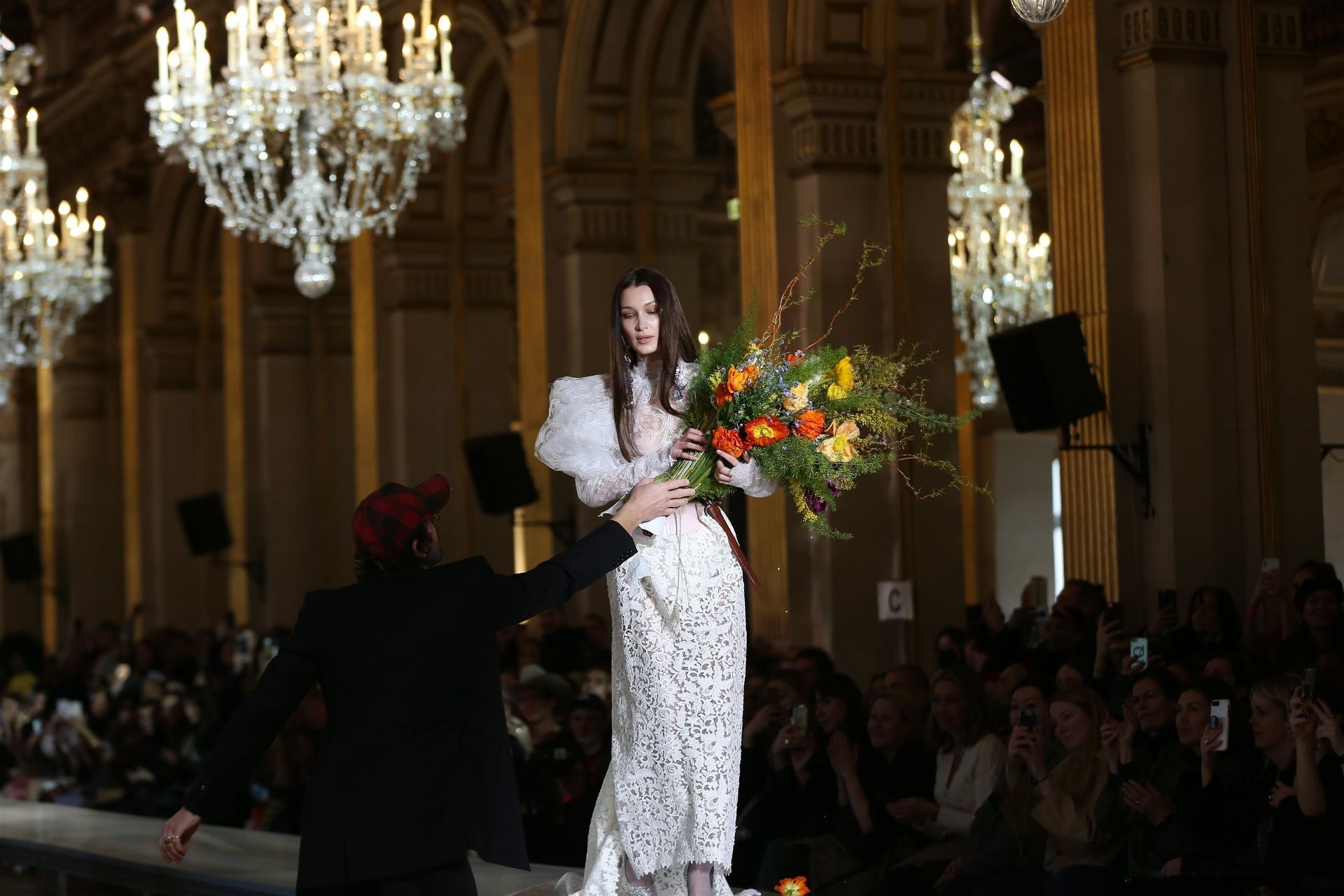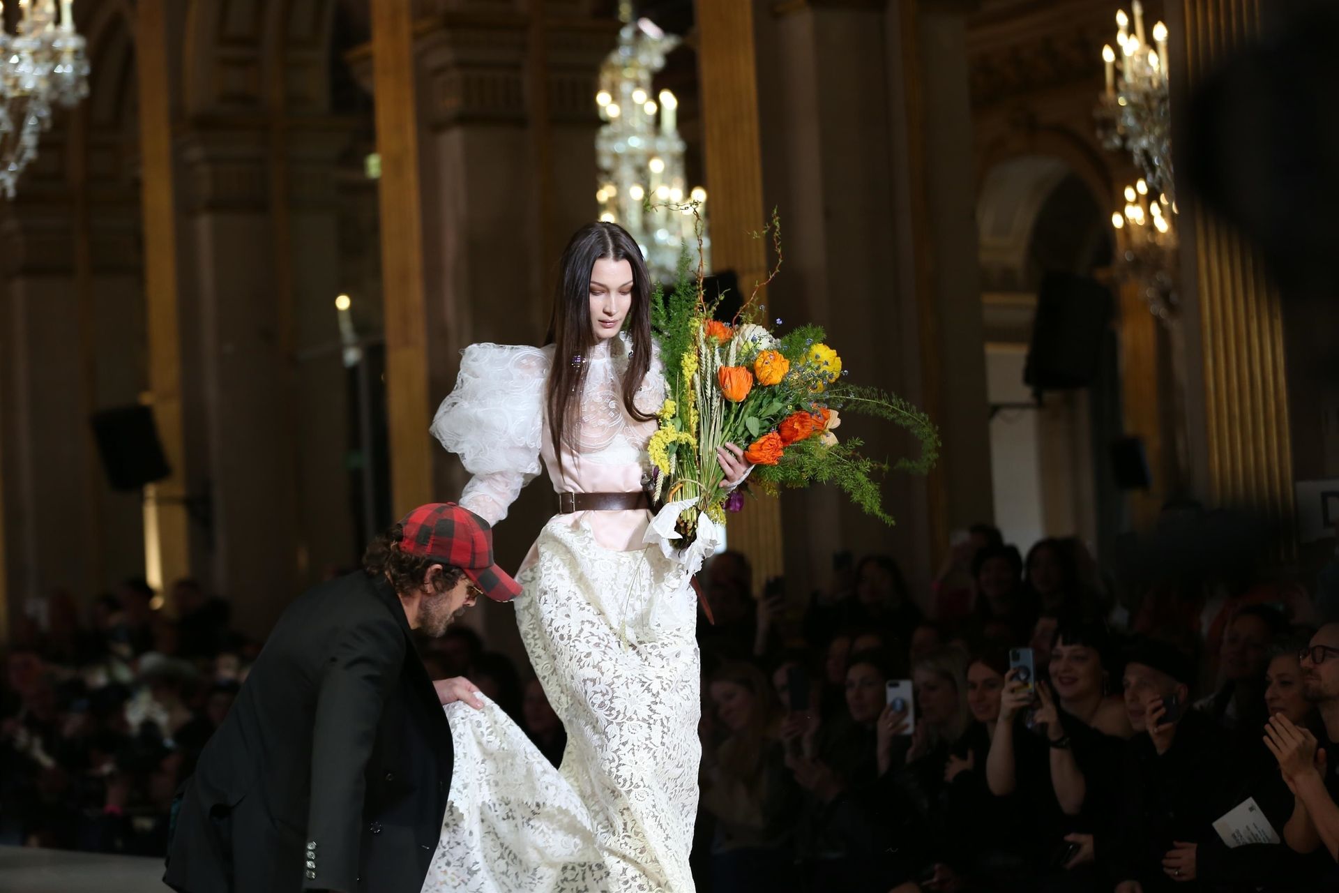 Model Bella Hadid was pictured braless walking the catwalk at the Vivienne Westwood fashion show during Paris Fashion Week, 02/29/2020. Bella will cut off your balls if you look at her tits!