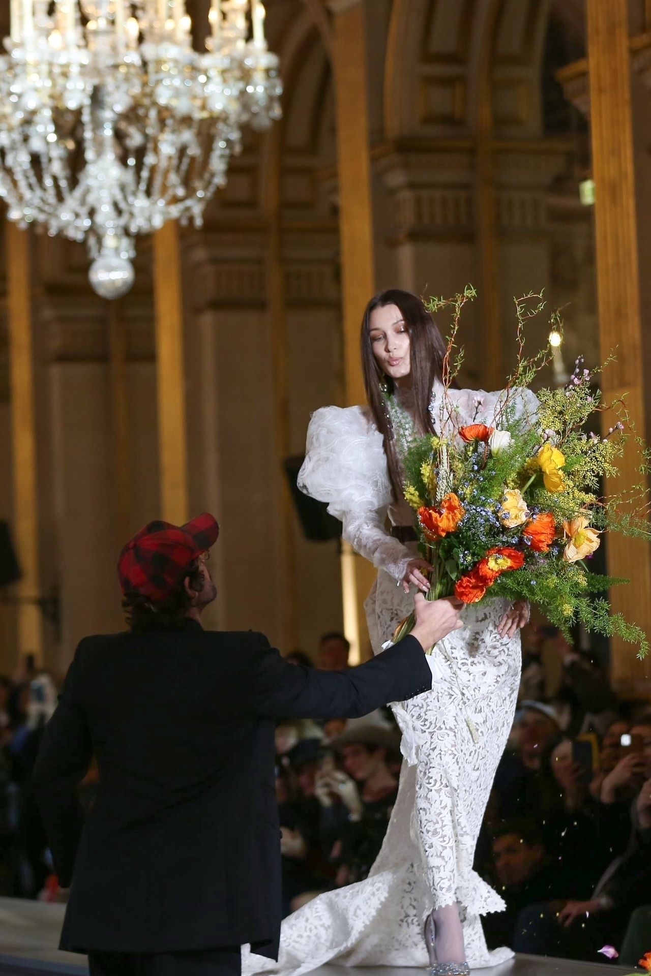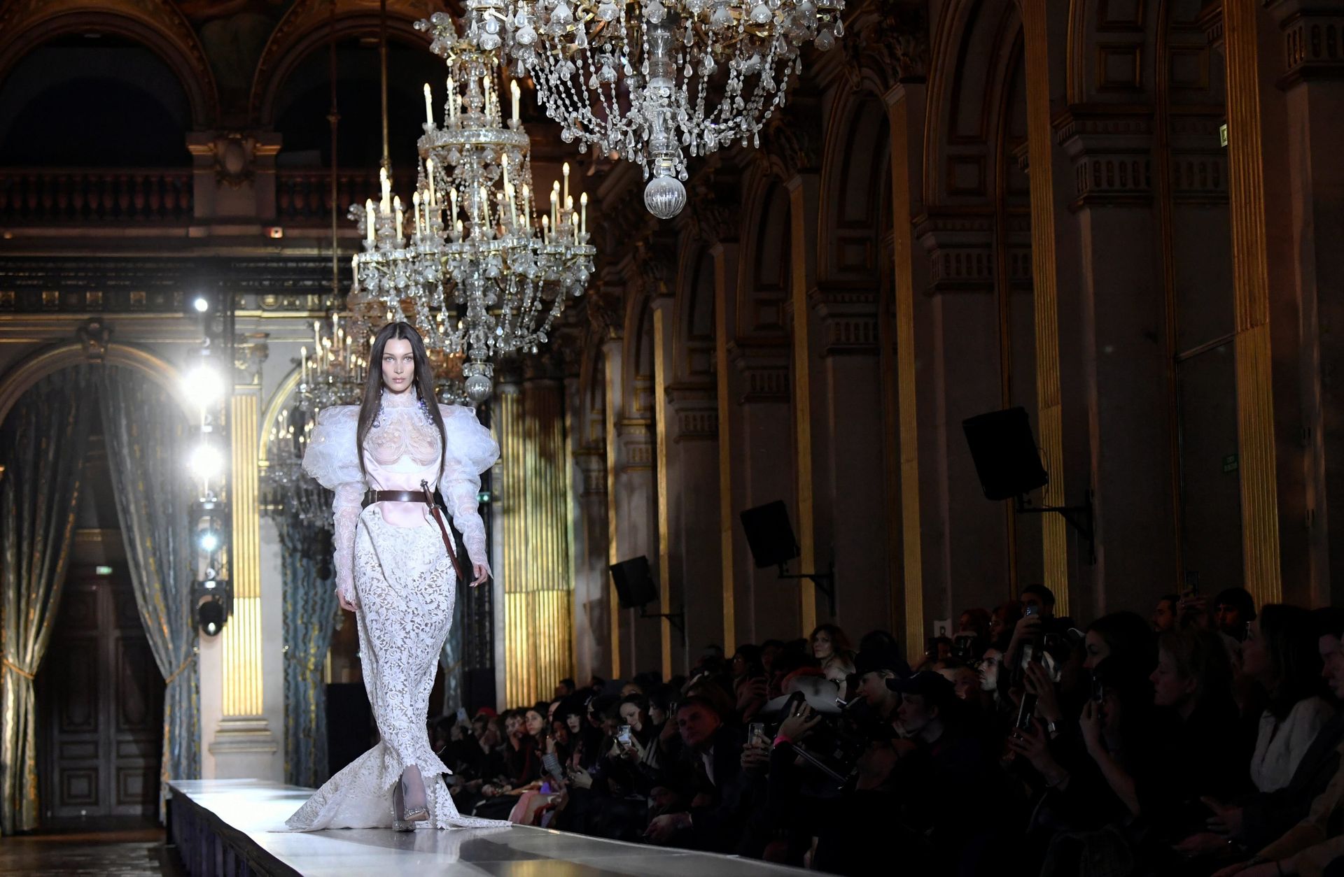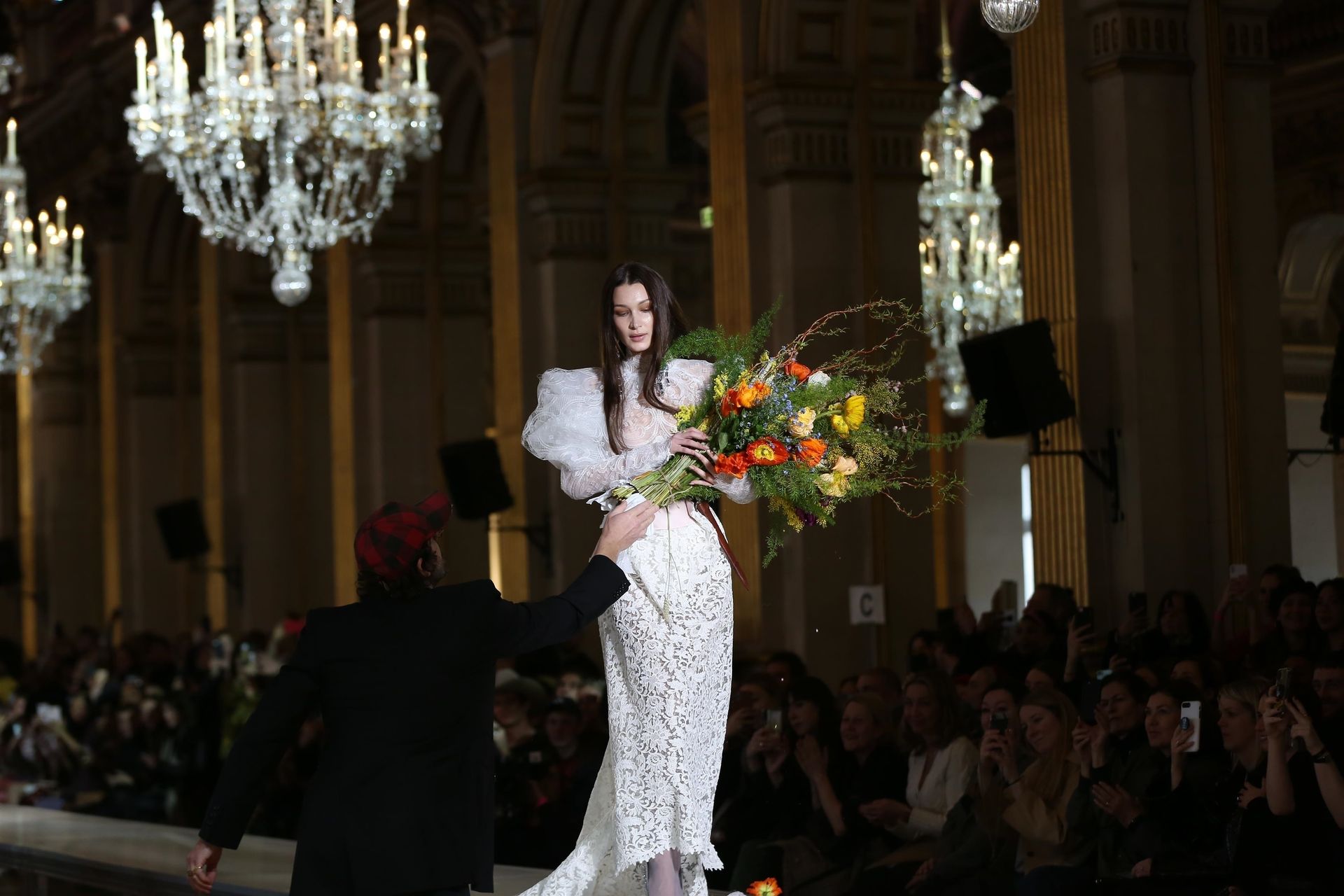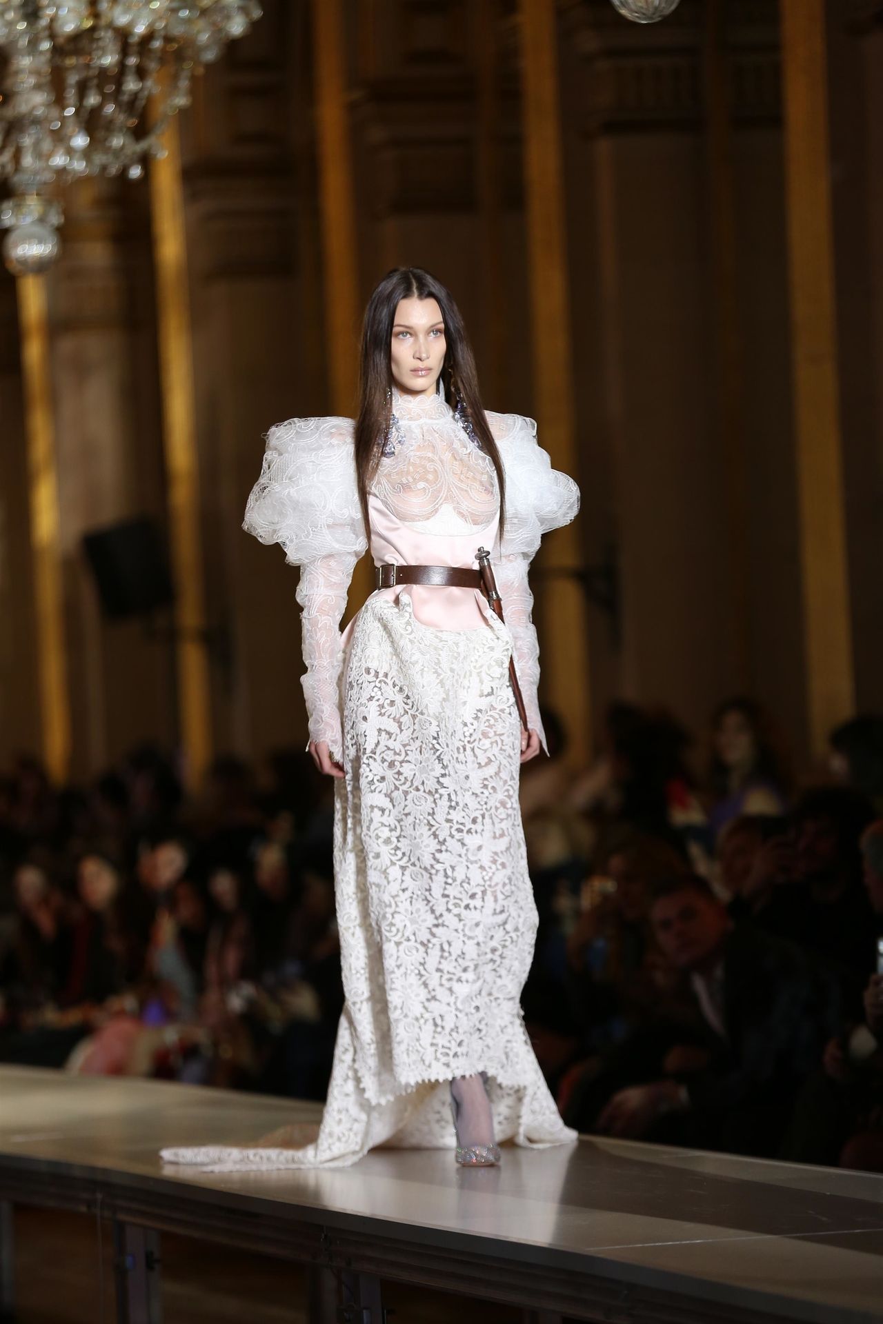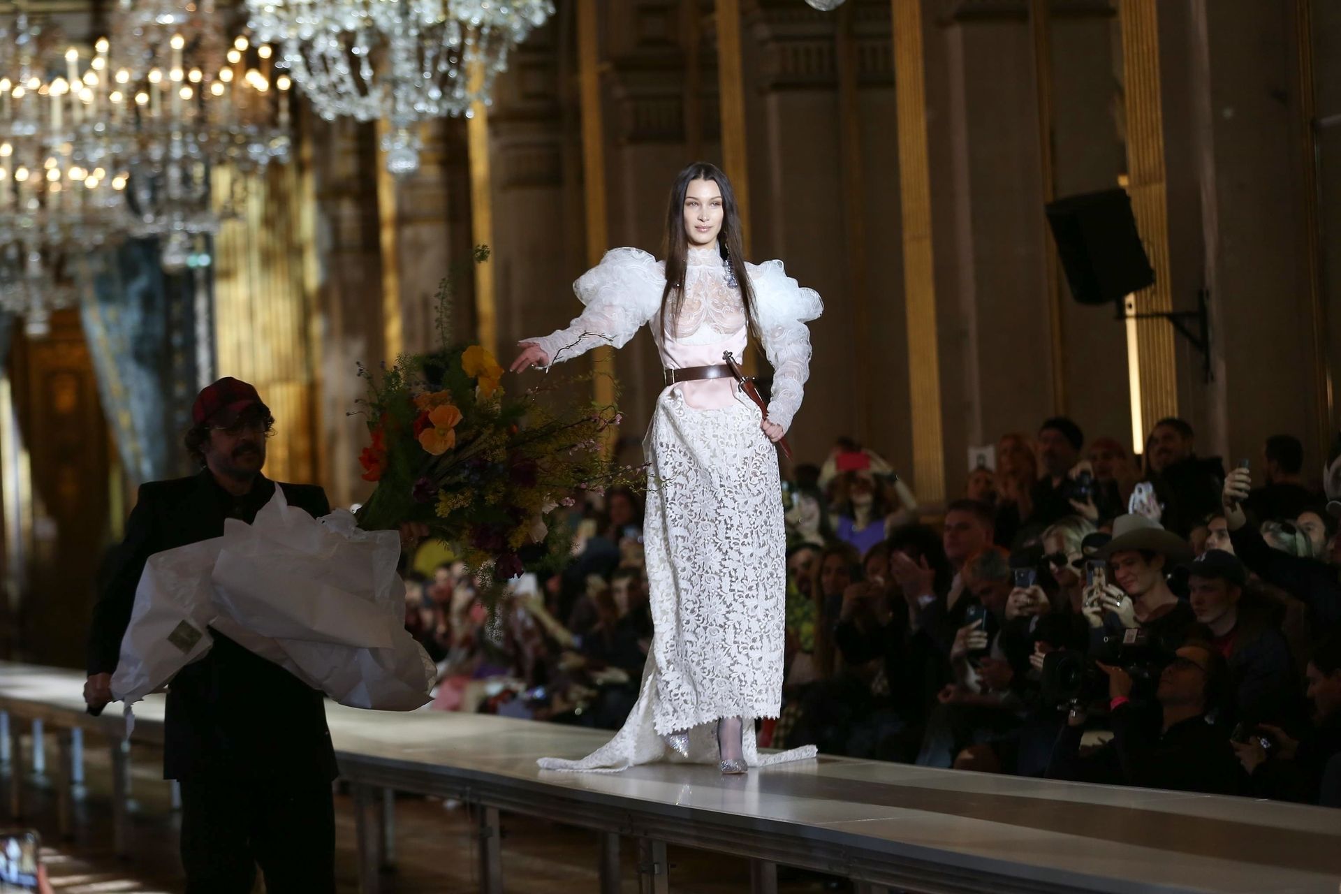 Model Bella Hadid was pictured braless walking the catwalk at the Vivienne Westwood fashion show during Paris Fashion Week, 02/29/2020. Bella will cut off your balls if you look at her tits!