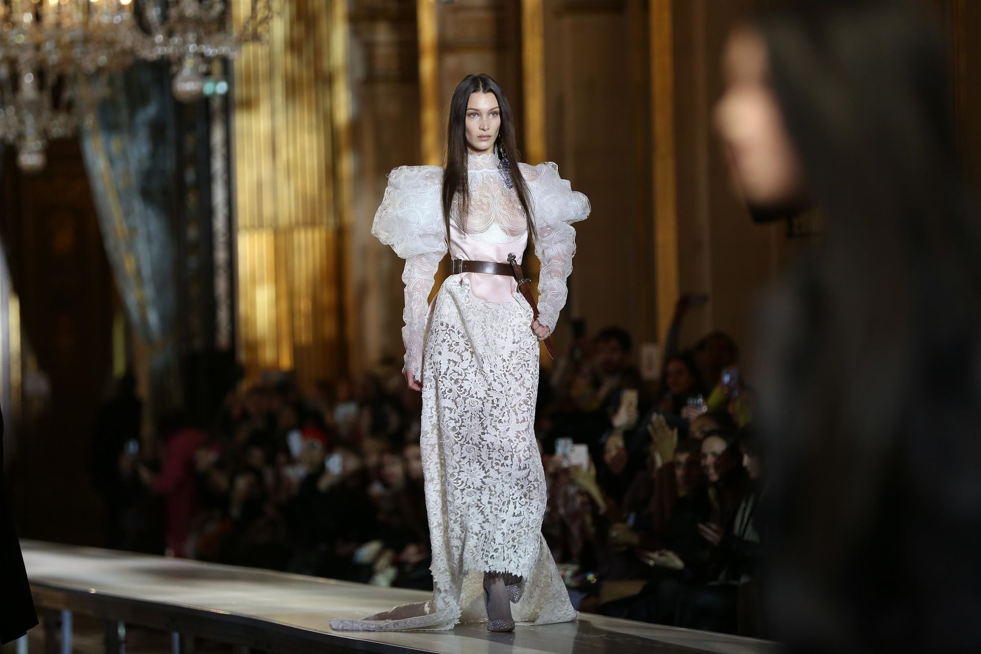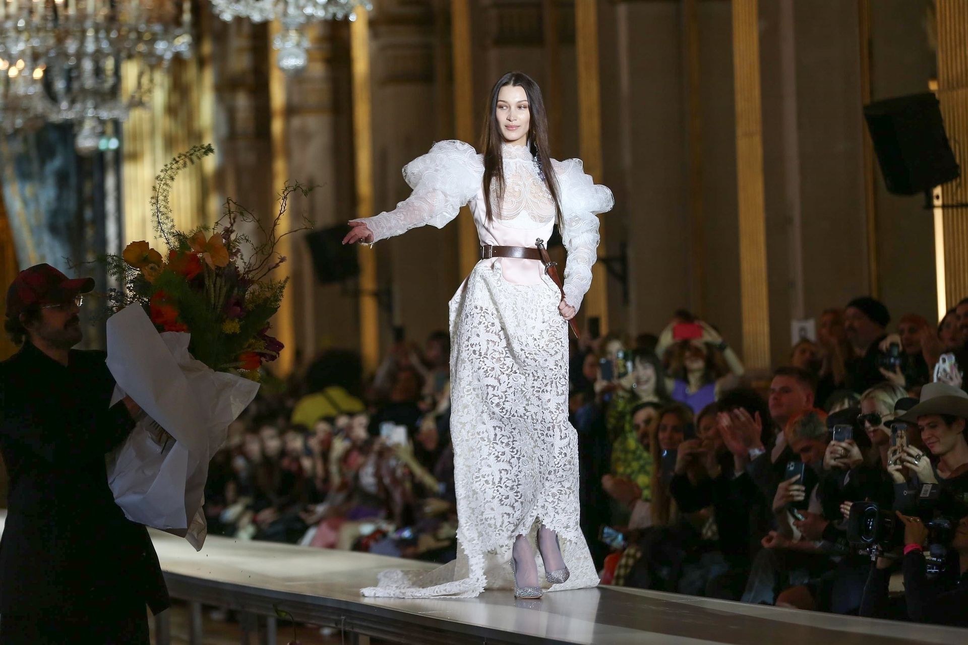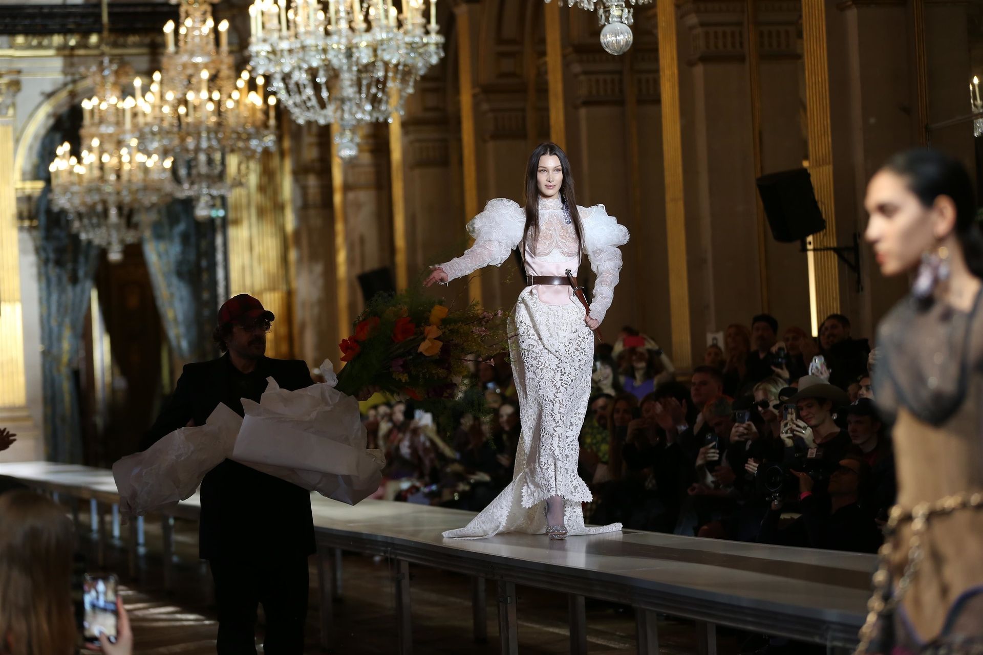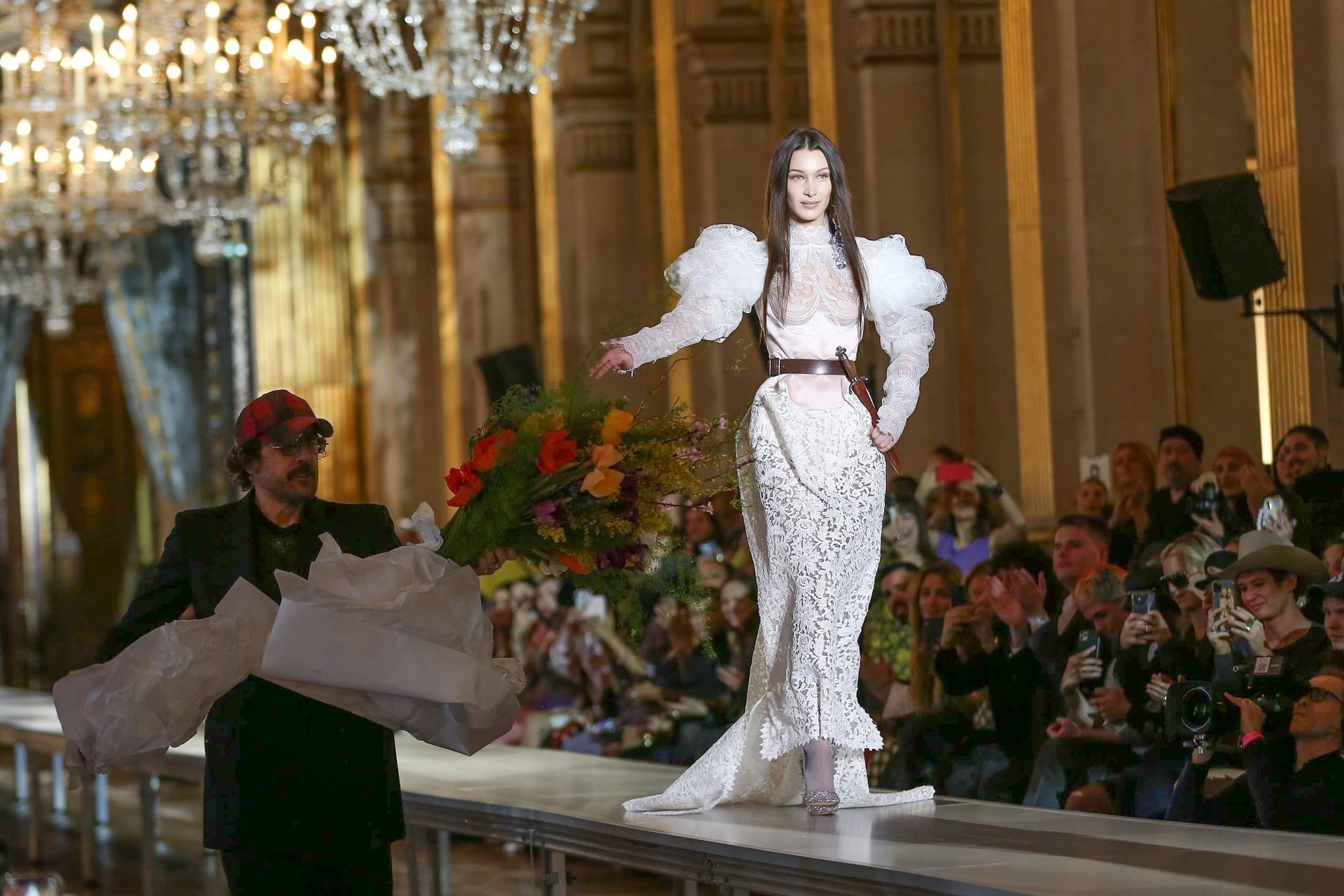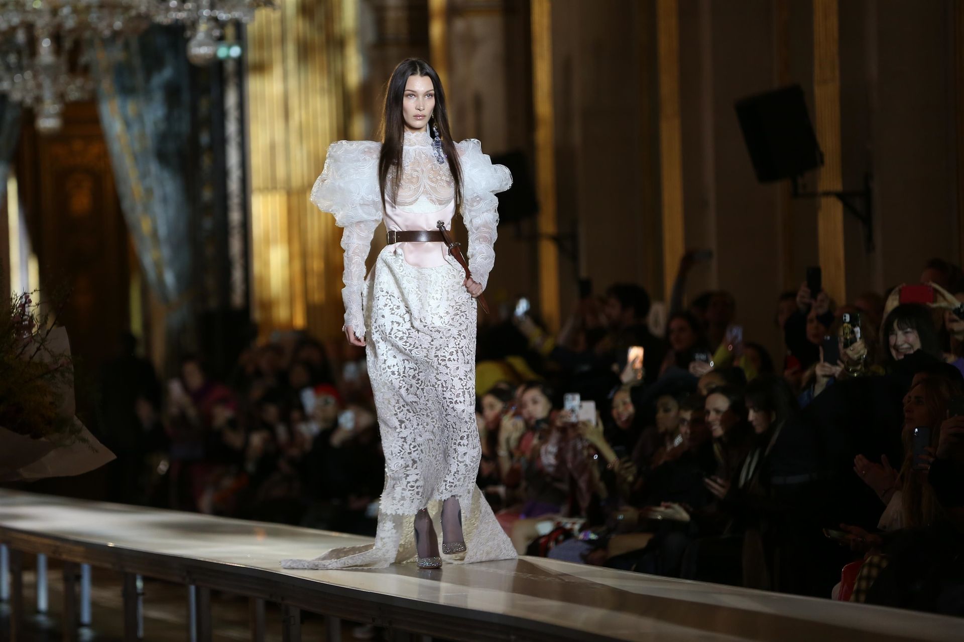 Model Bella Hadid was pictured braless walking the catwalk at the Vivienne Westwood fashion show during Paris Fashion Week, 02/29/2020. Bella will cut off your balls if you look at her tits!