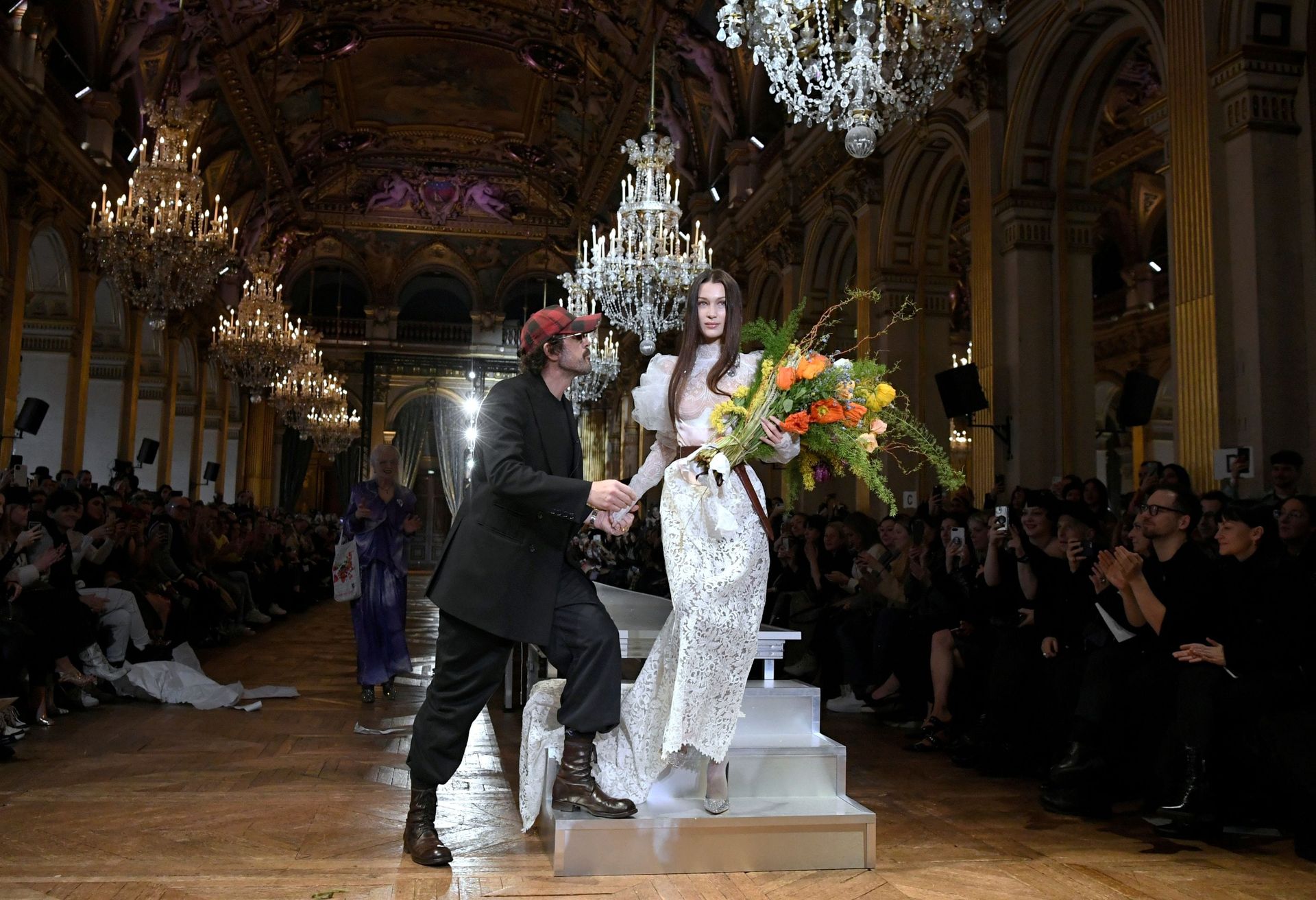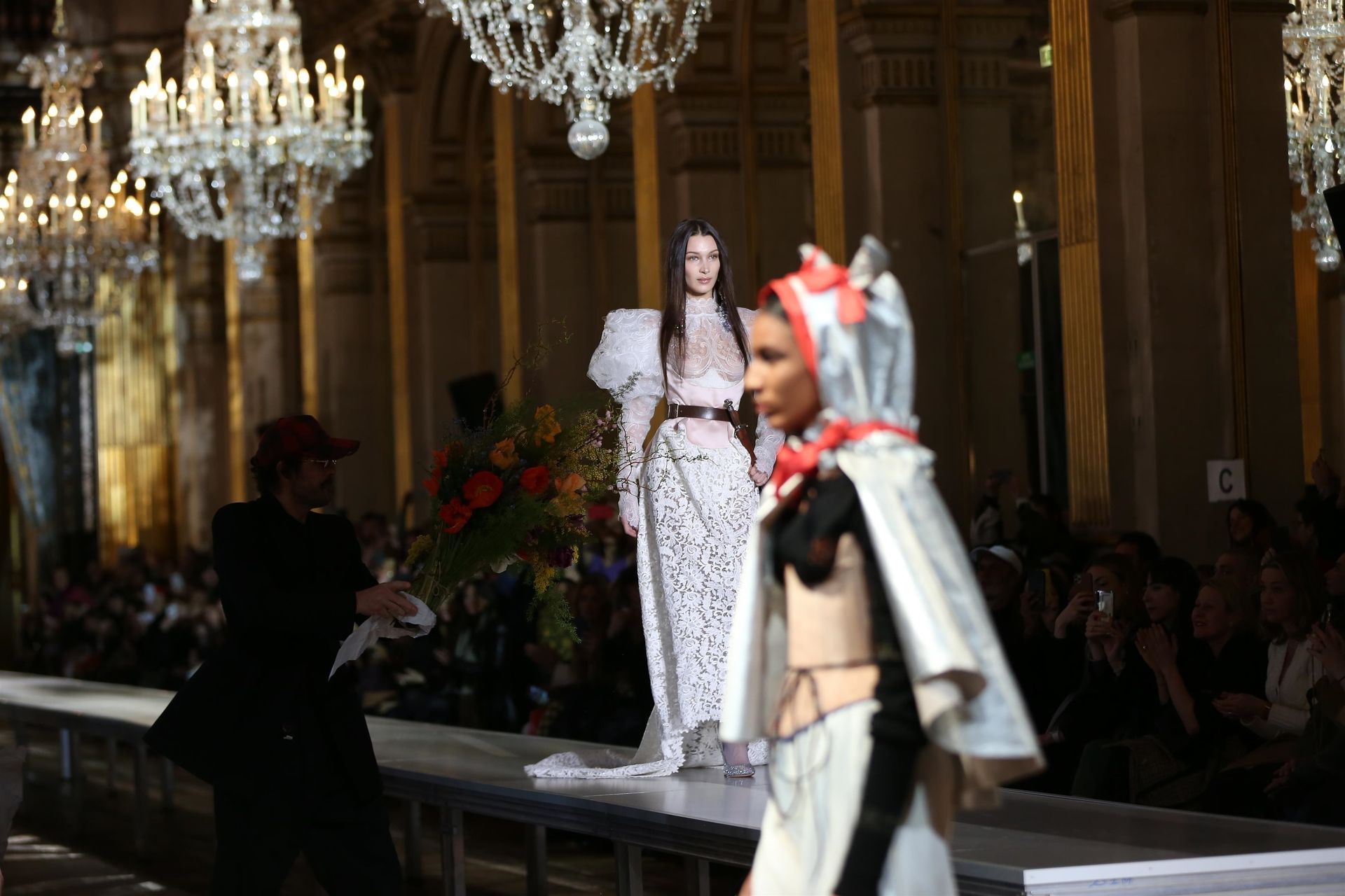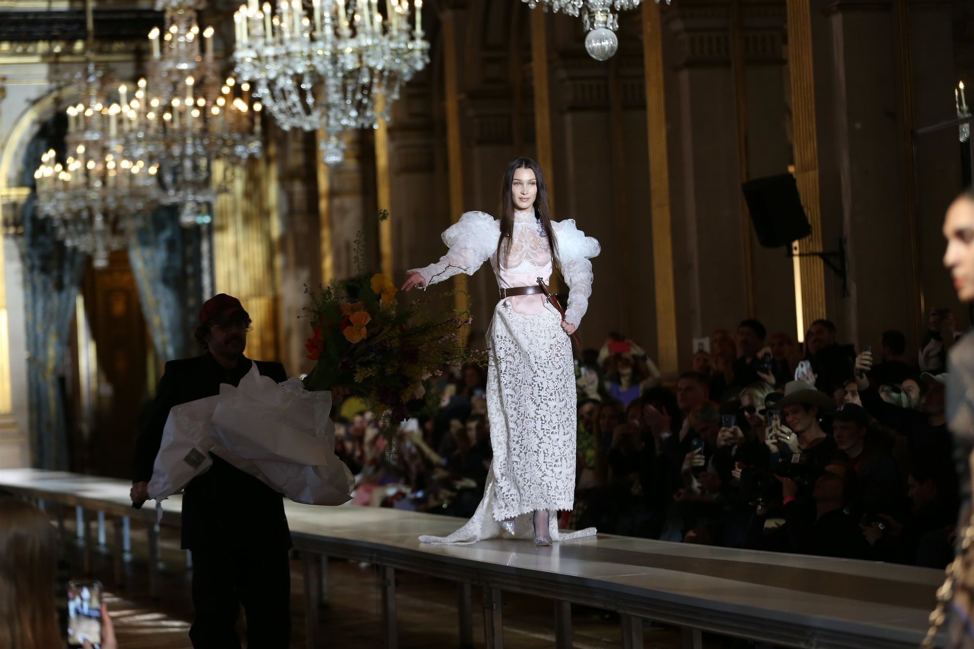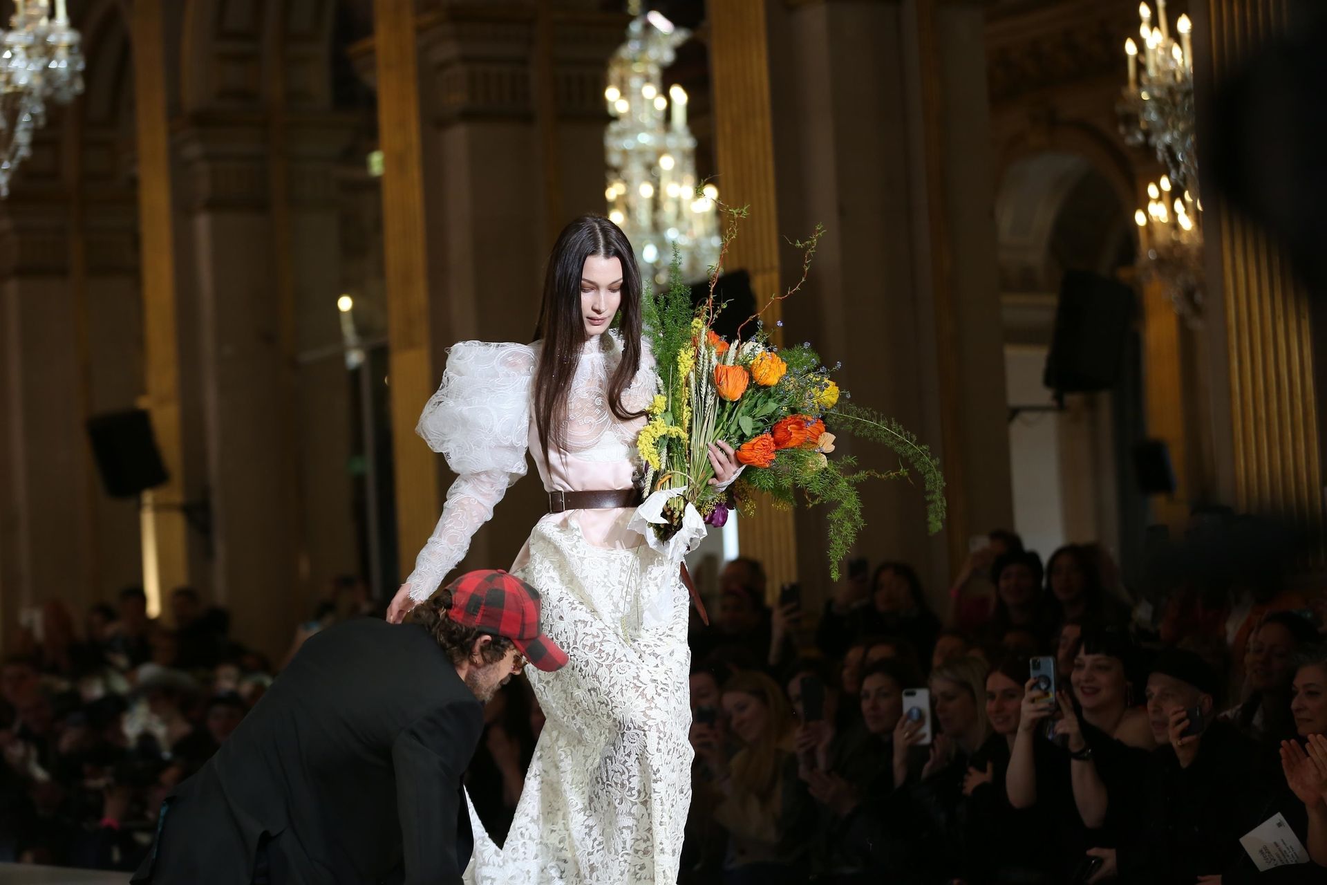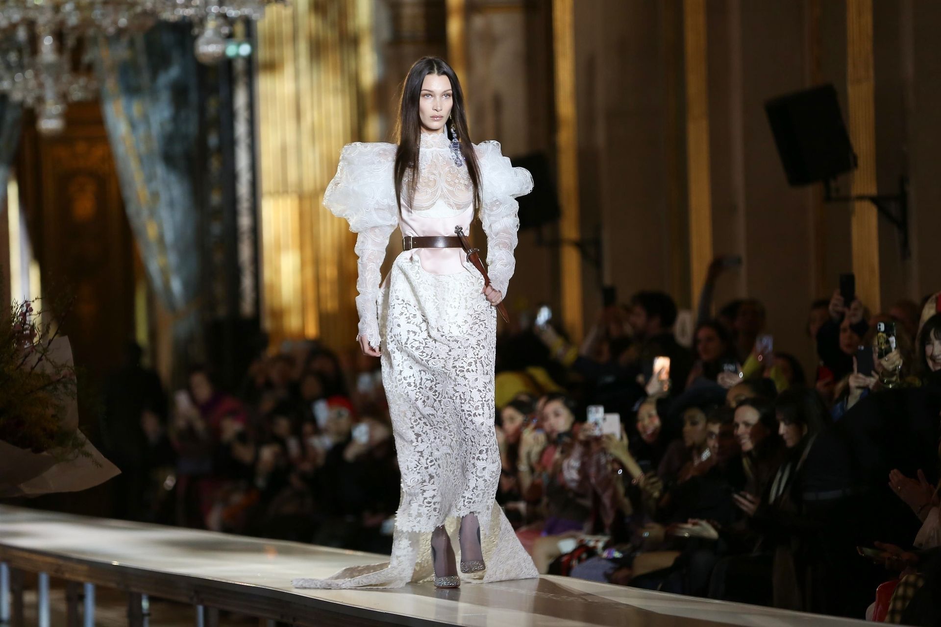 Model Bella Hadid was pictured braless walking the catwalk at the Vivienne Westwood fashion show during Paris Fashion Week, 02/29/2020. Bella will cut off your balls if you look at her tits!