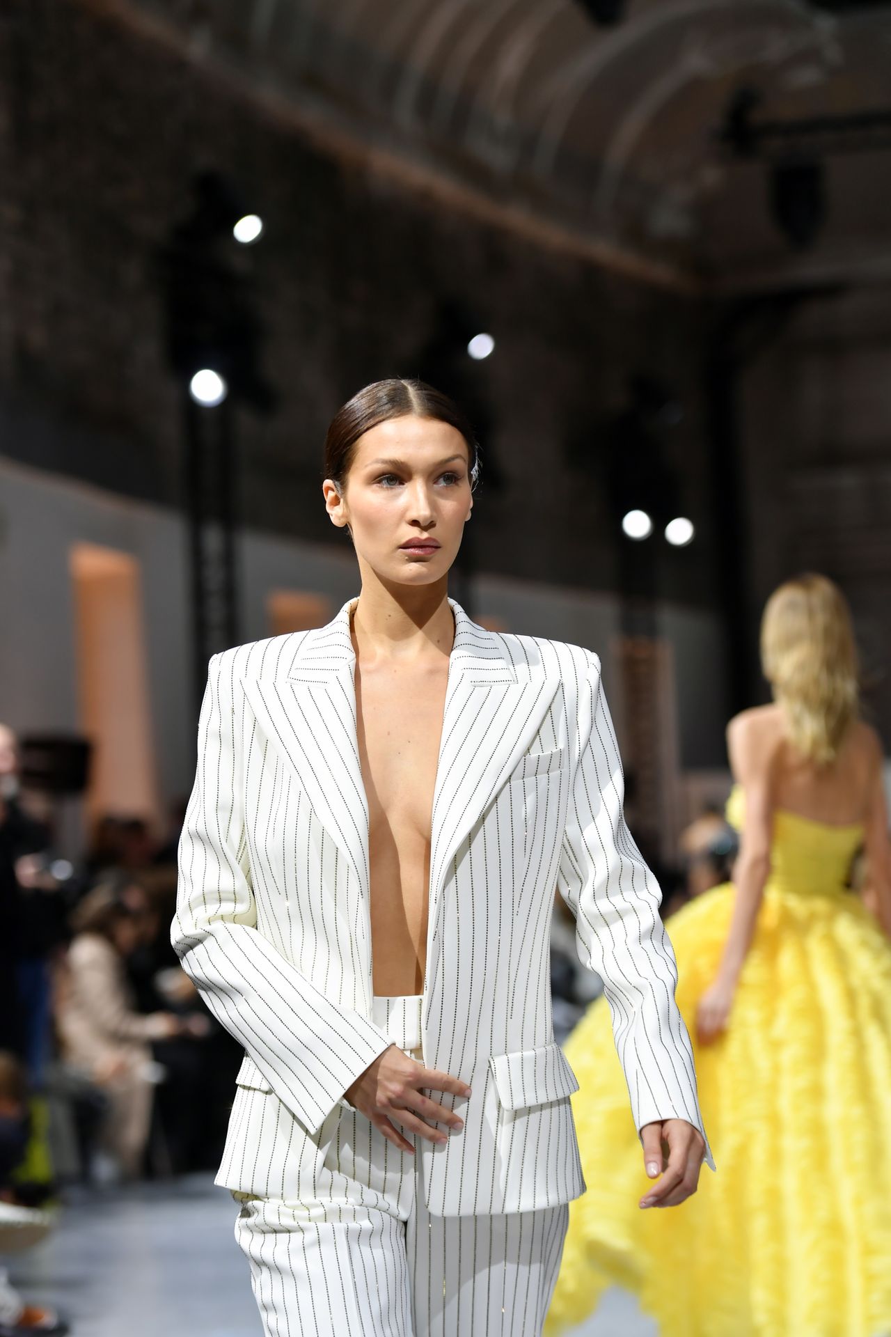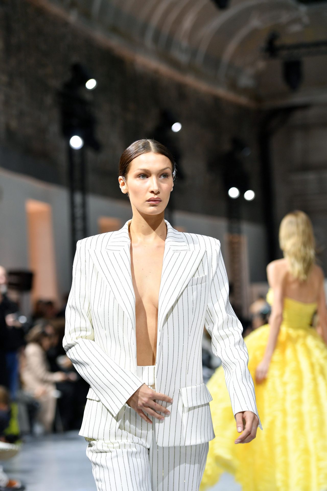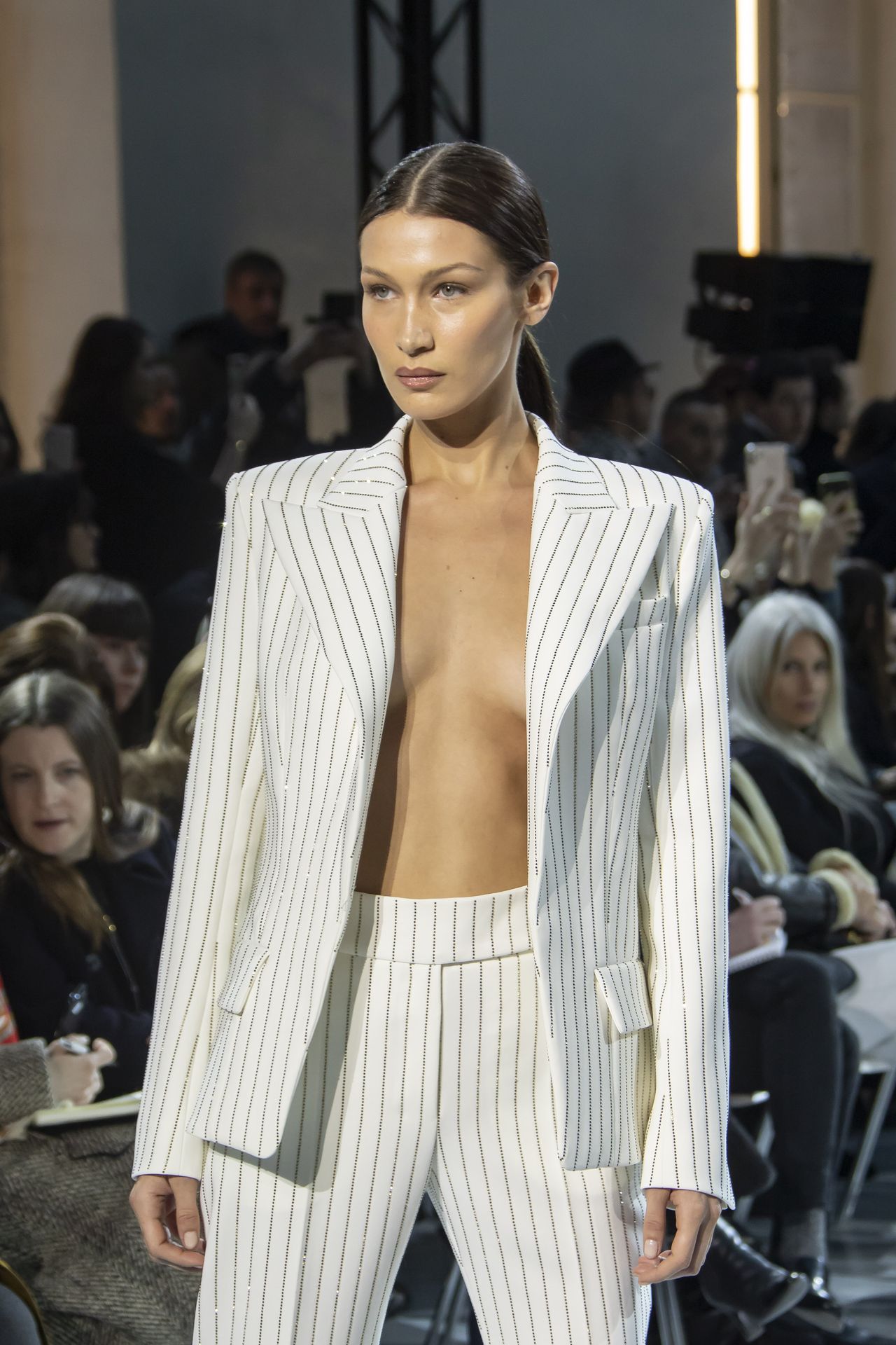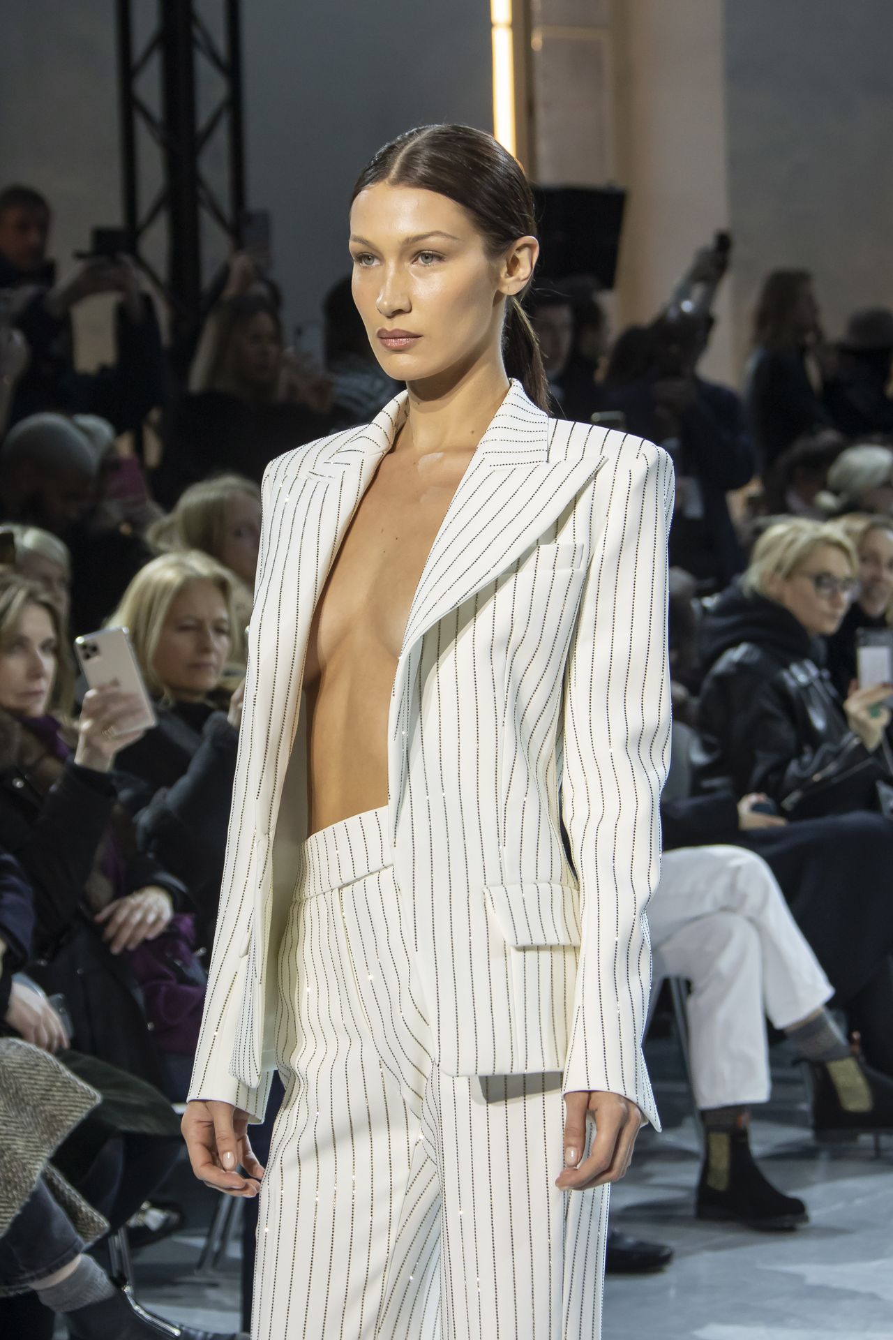 Braless model Bella Hadid walks the runway during the Alexandre Vauthier Haute Couture Spring/Summer 2020 show as part of Paris Fashion Week on January 21, 2020 in Paris, France.