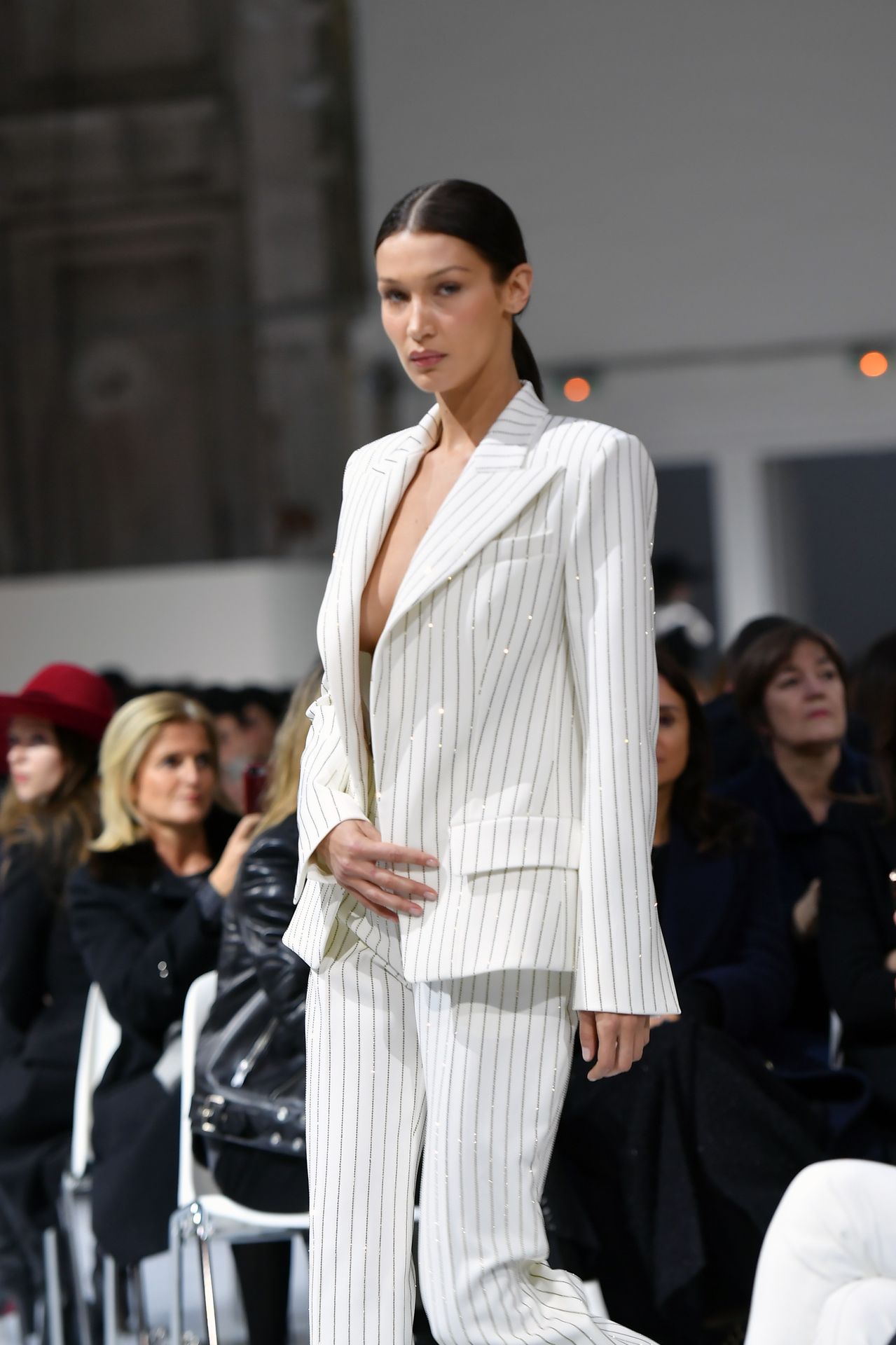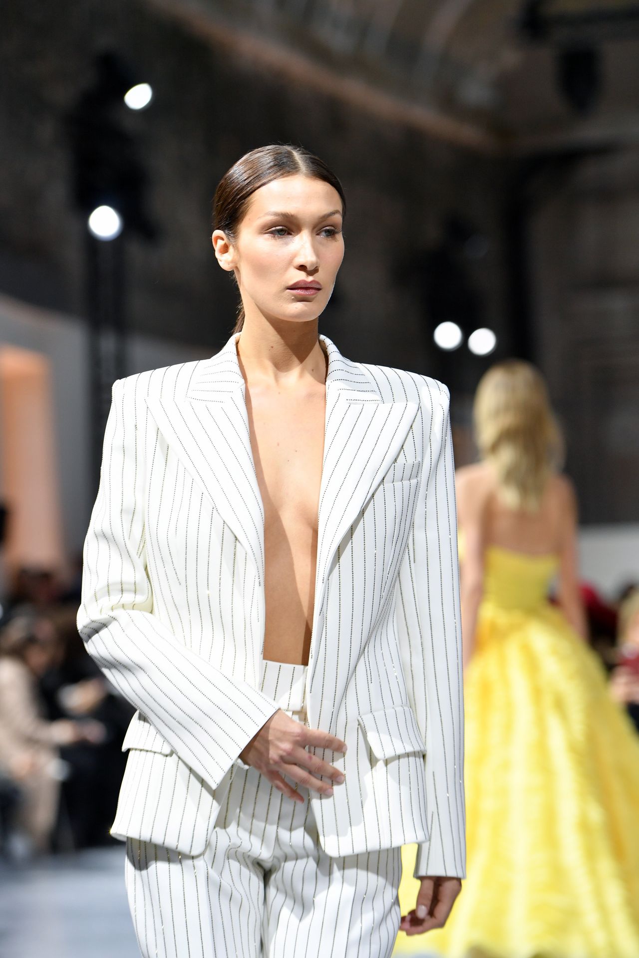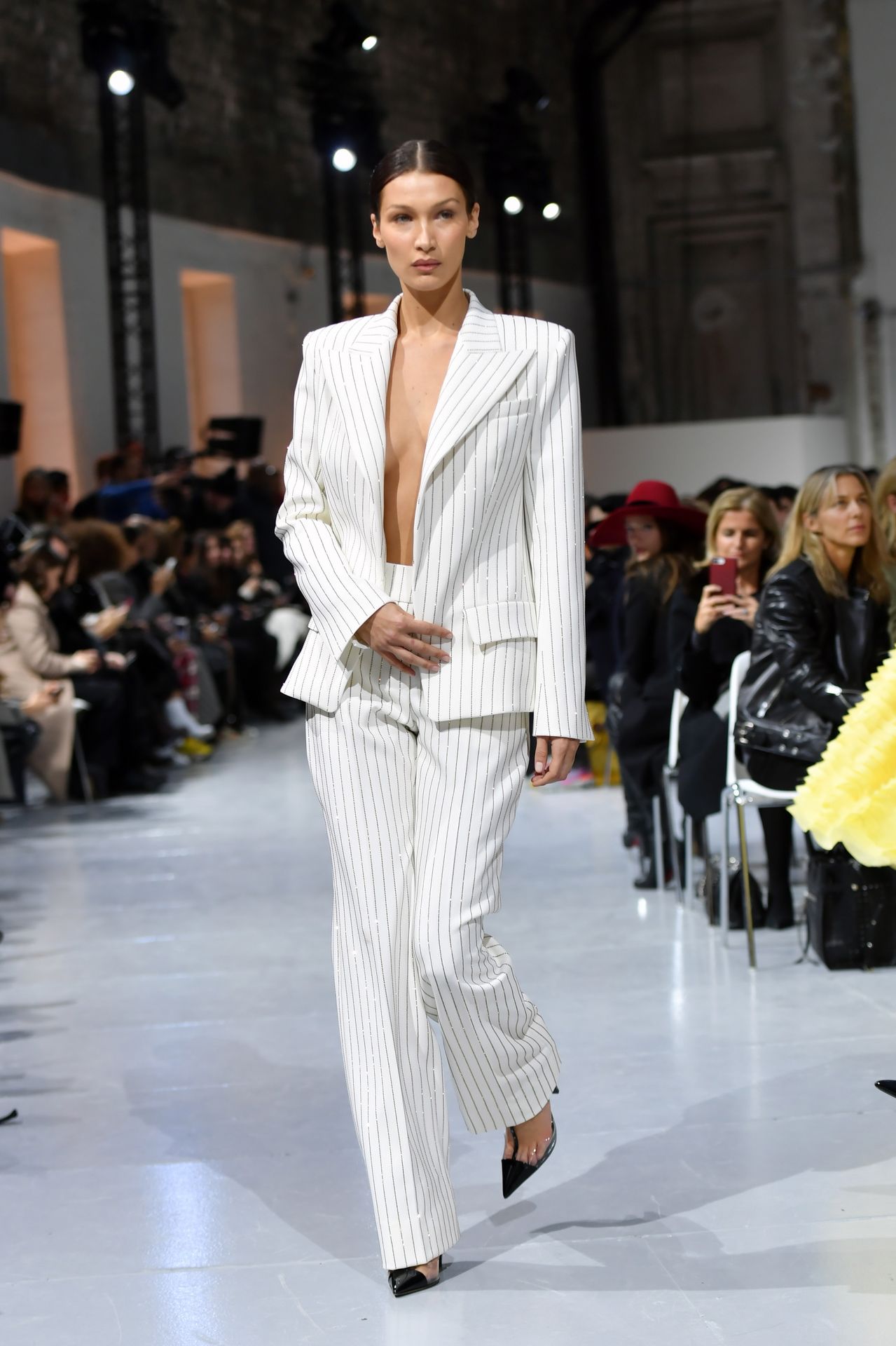 Braless model Bella Hadid walks the runway during the Alexandre Vauthier Haute Couture Spring/Summer 2020 show as part of Paris Fashion Week on January 21, 2020 in Paris, France.