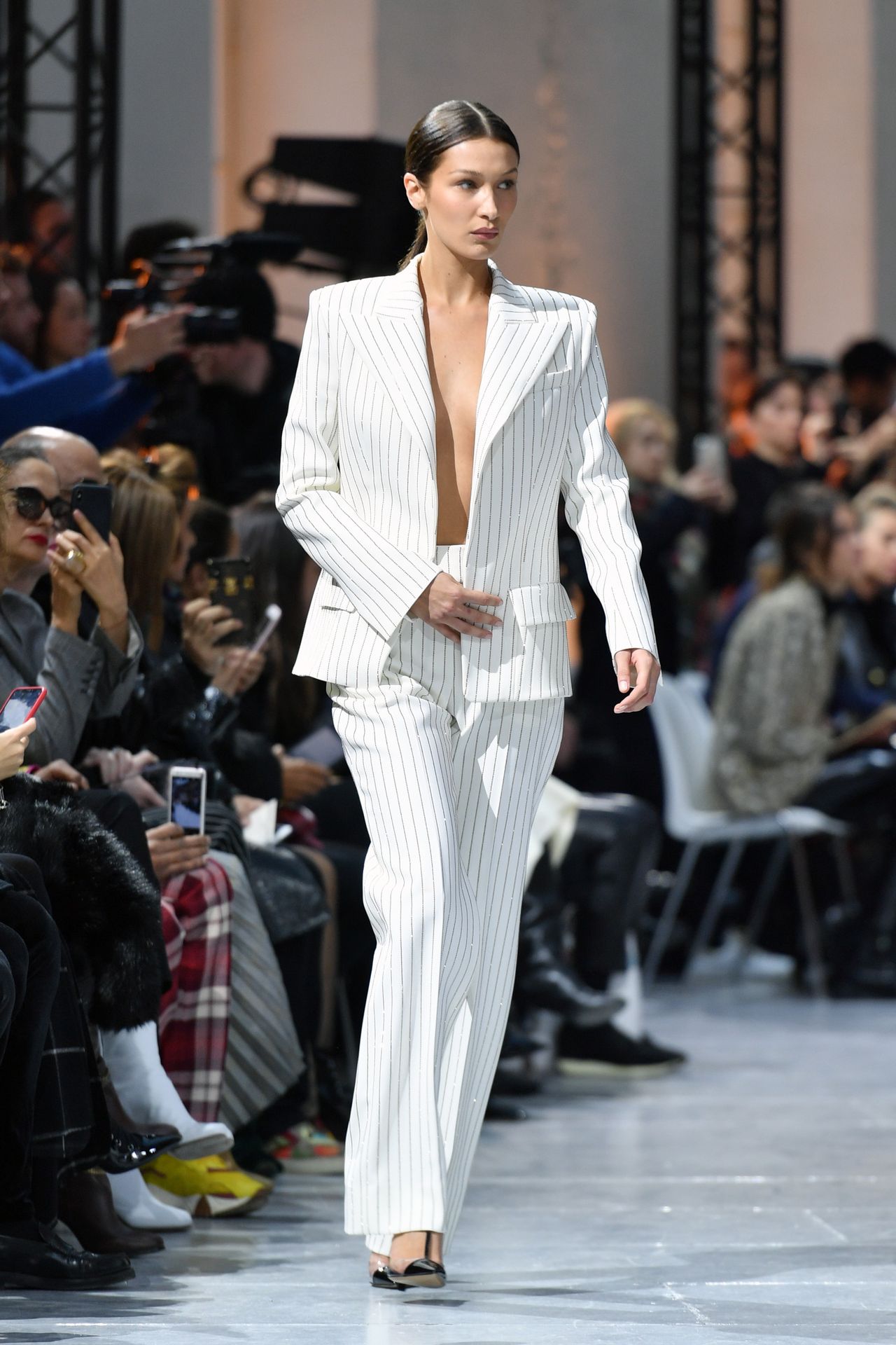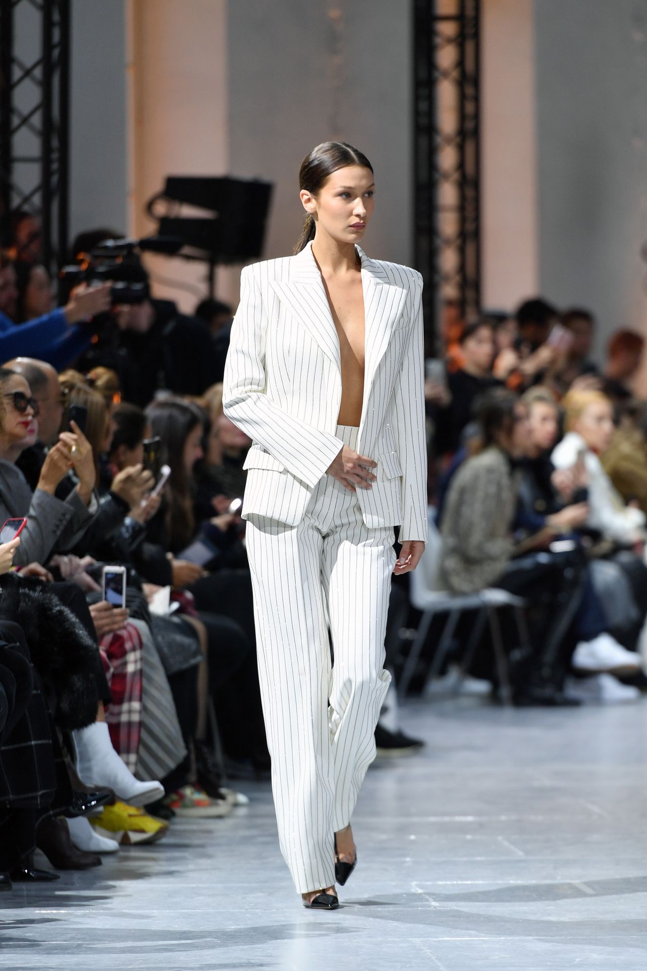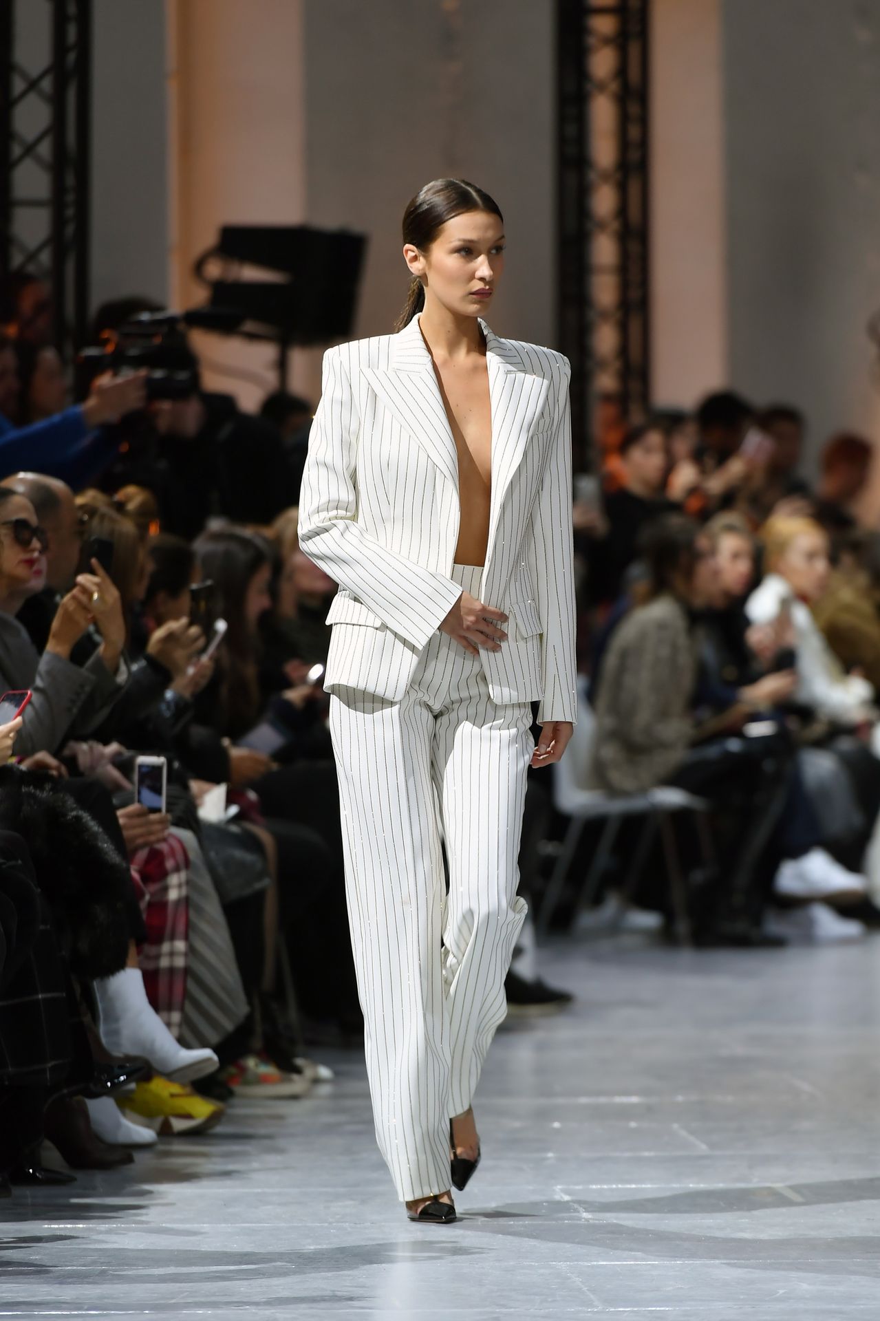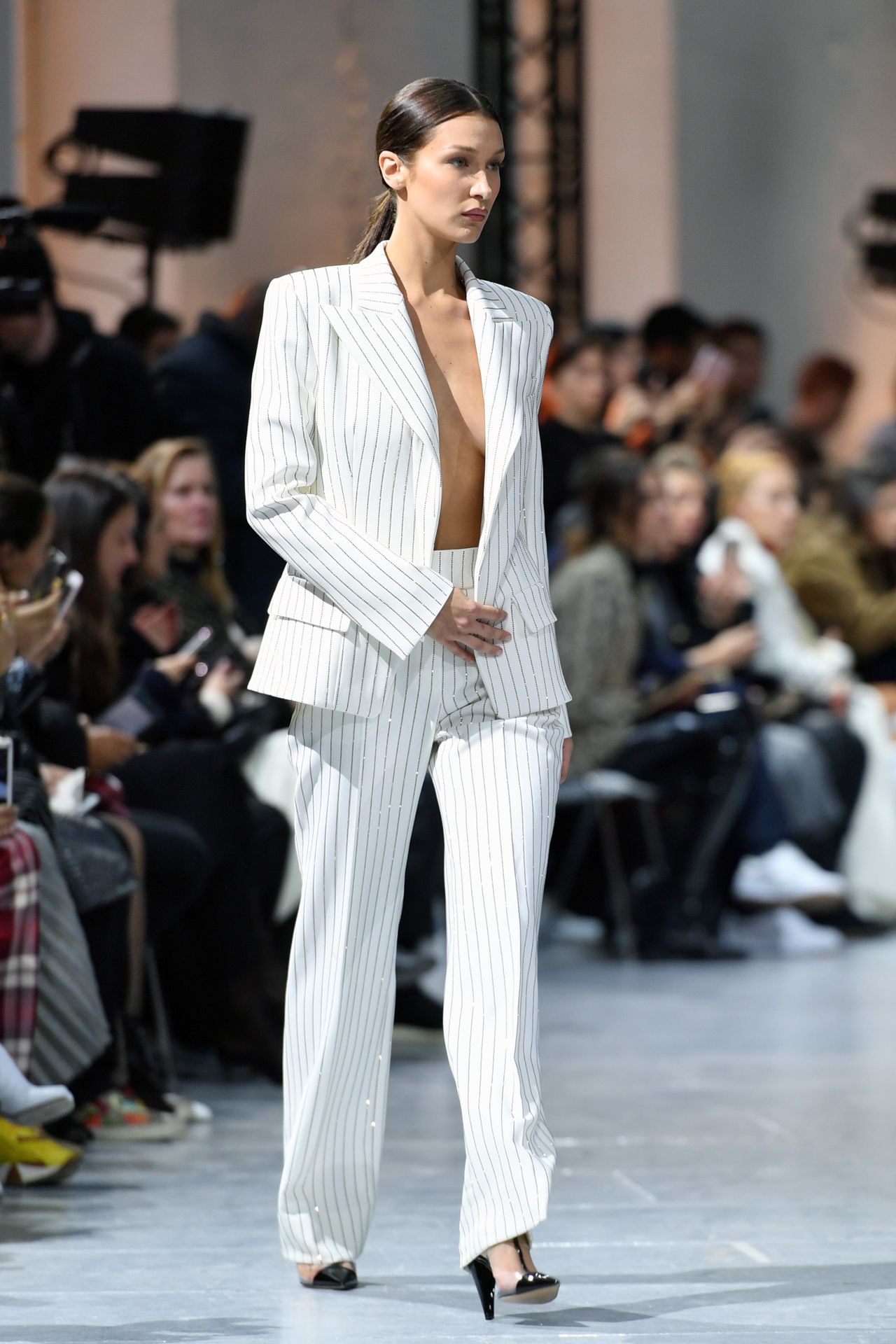 Braless model Bella Hadid walks the runway during the Alexandre Vauthier Haute Couture Spring/Summer 2020 show as part of Paris Fashion Week on January 21, 2020 in Paris, France.