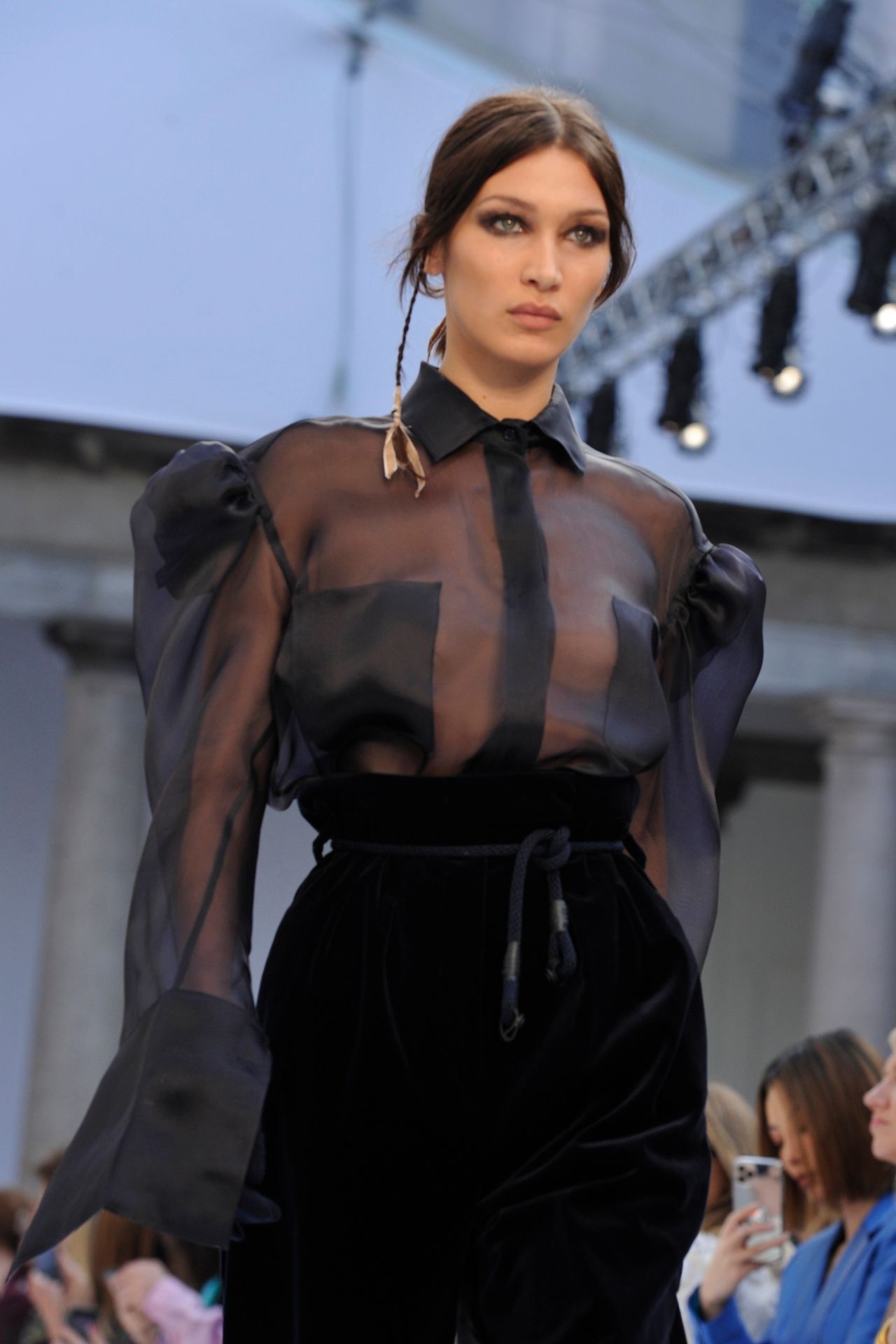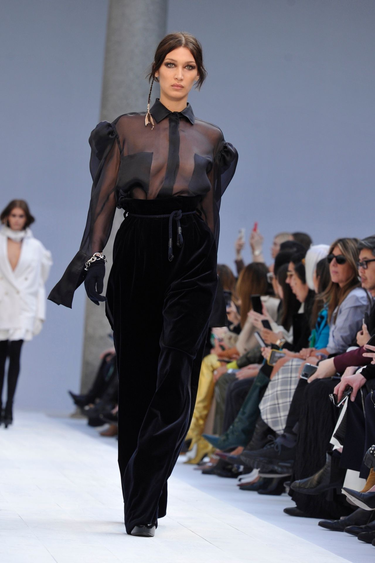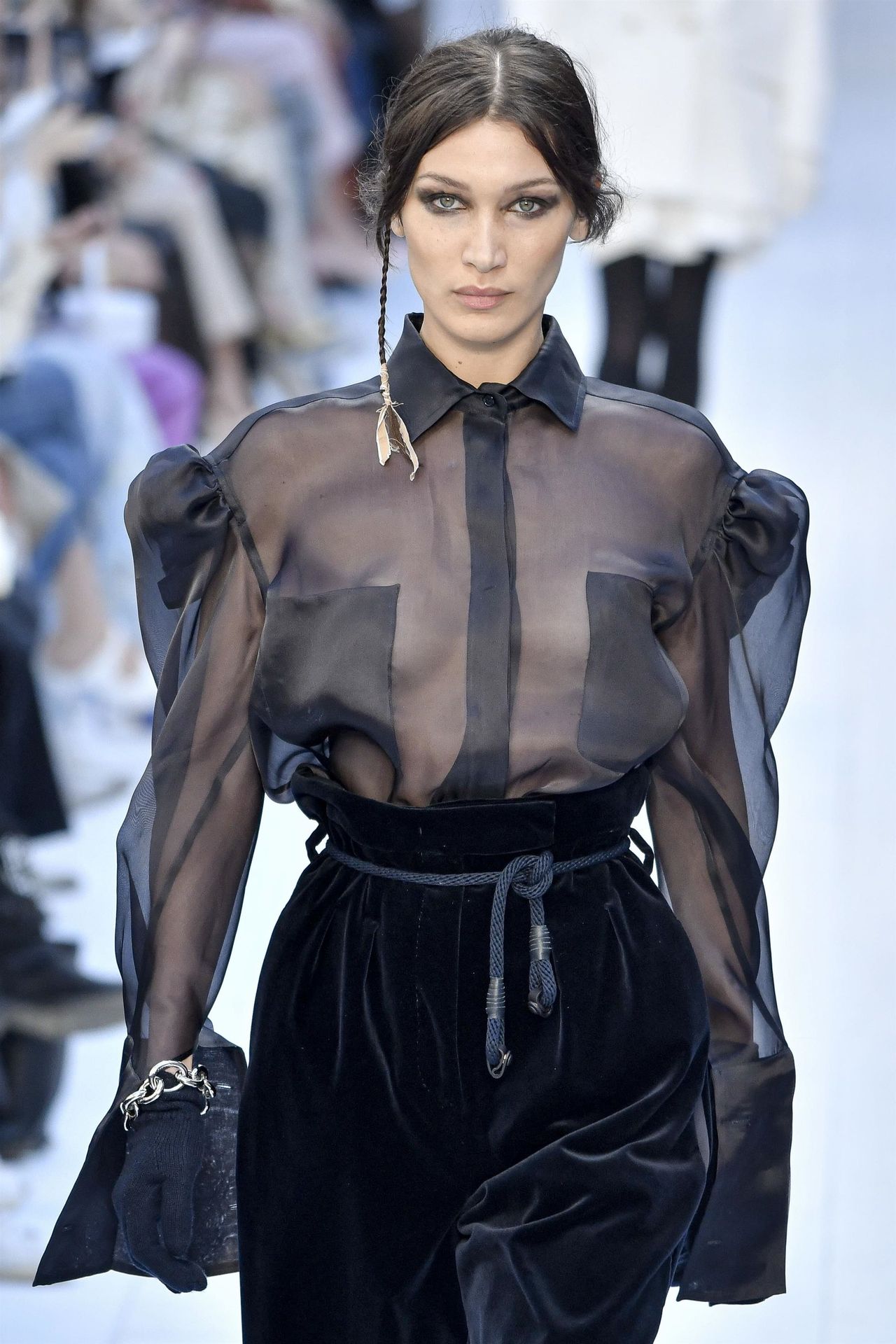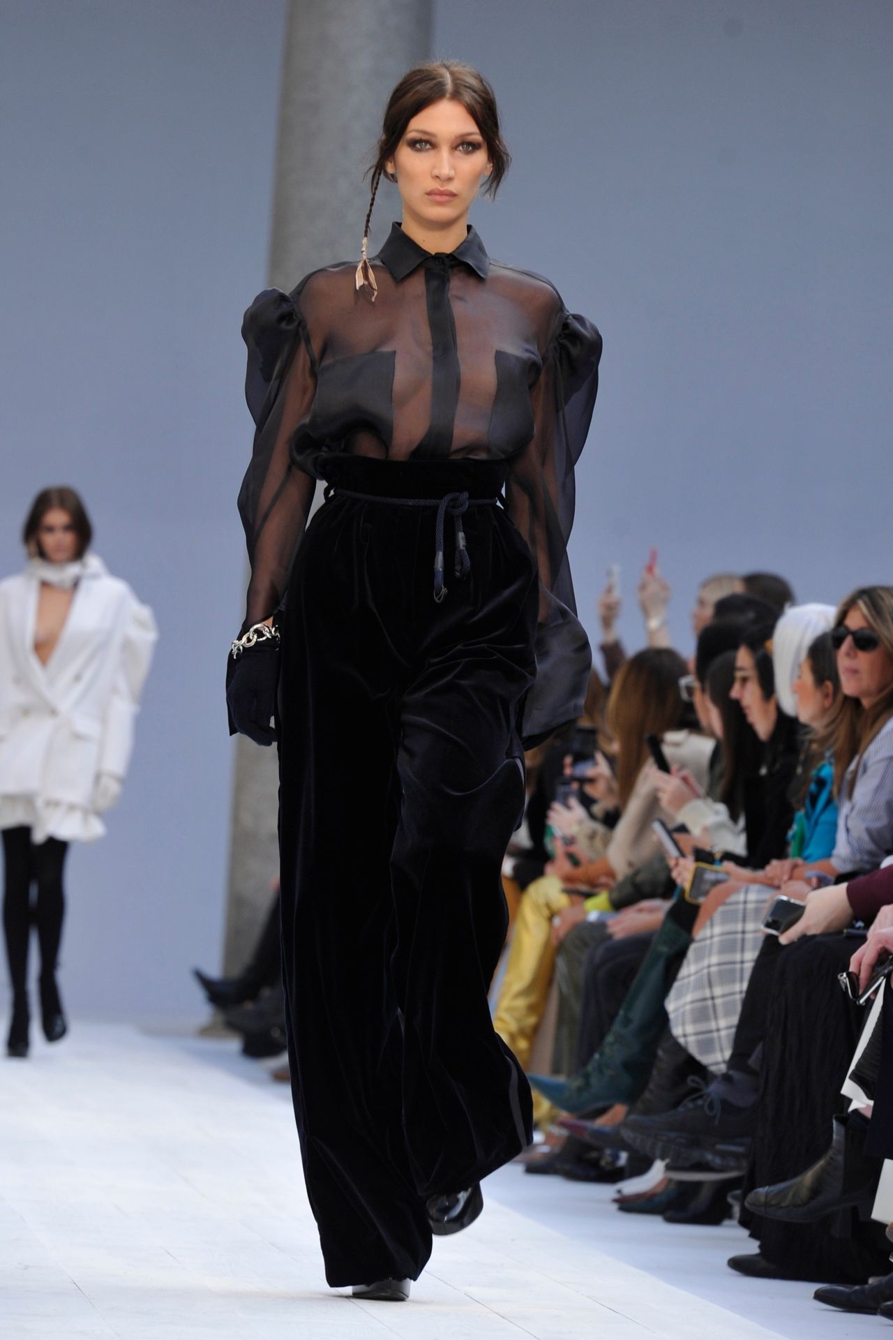 Model Bella Hadid walks the runway braless during the Max Mara fashion show as part of Milan Fashion Week Fall/Winter in Milan, Italy, 02/20/2020.